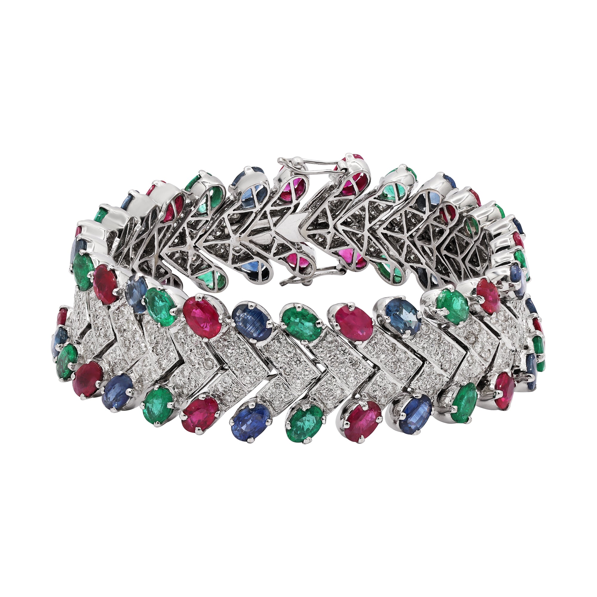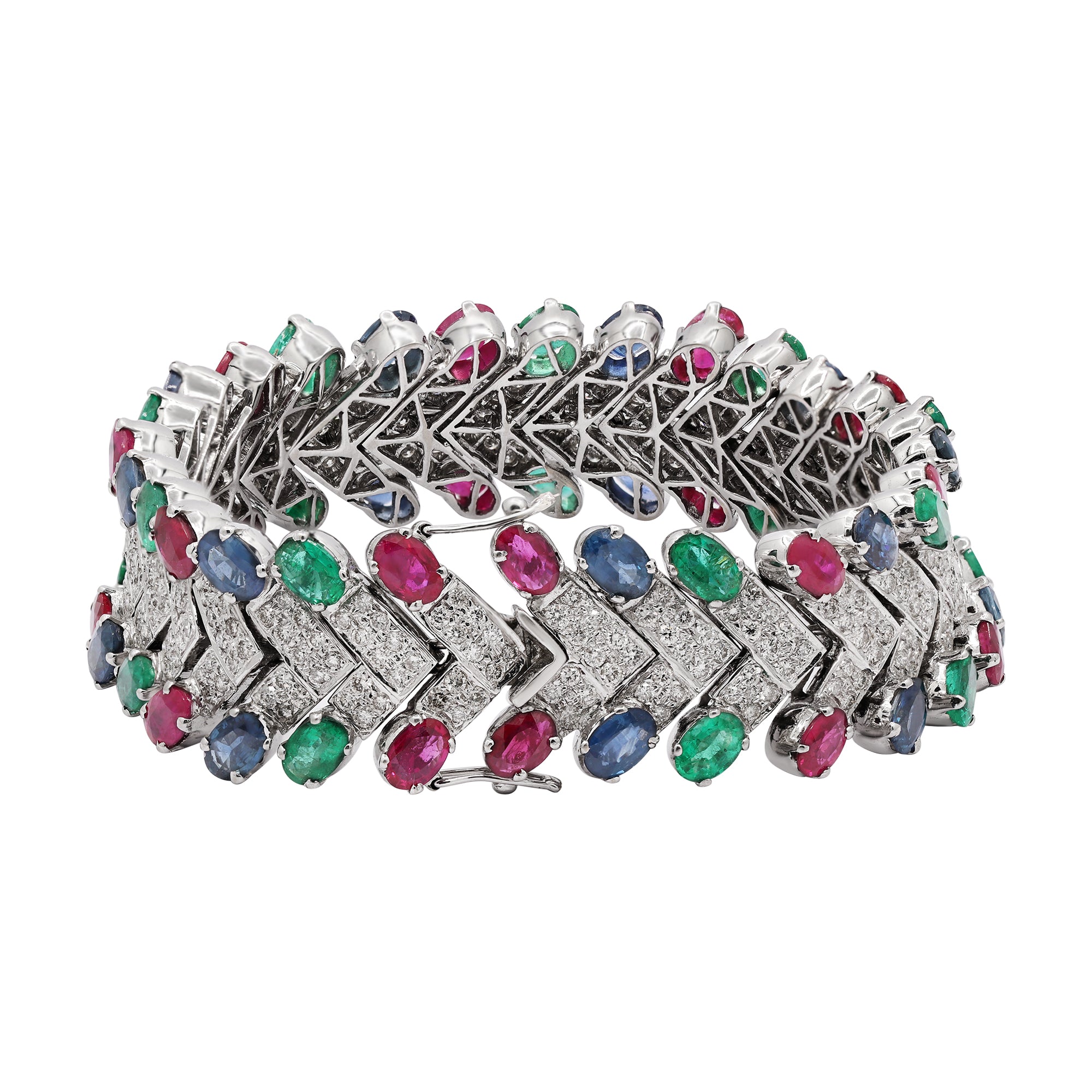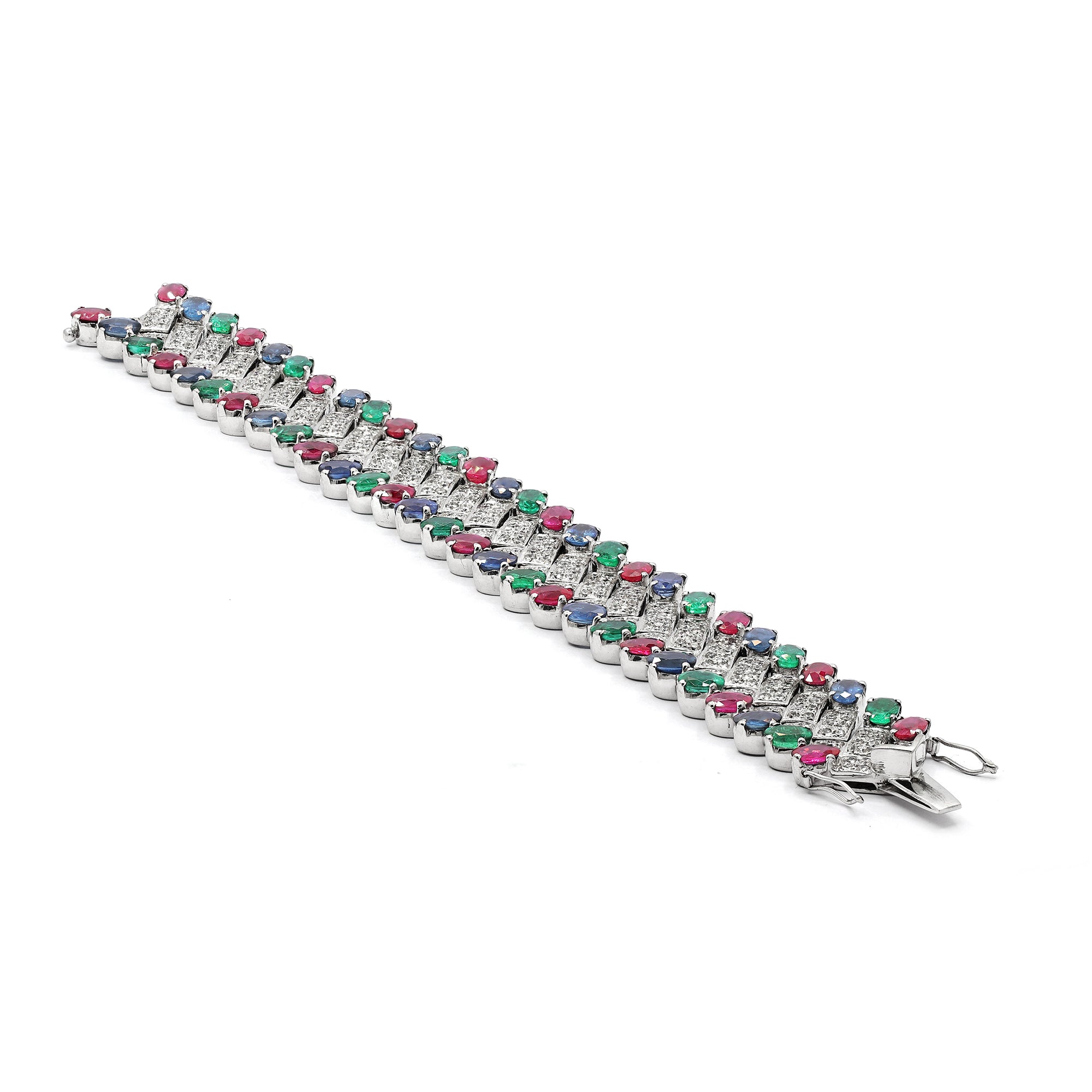 Emerald, Sapphire & Diamond 18k White Gold Bracelet