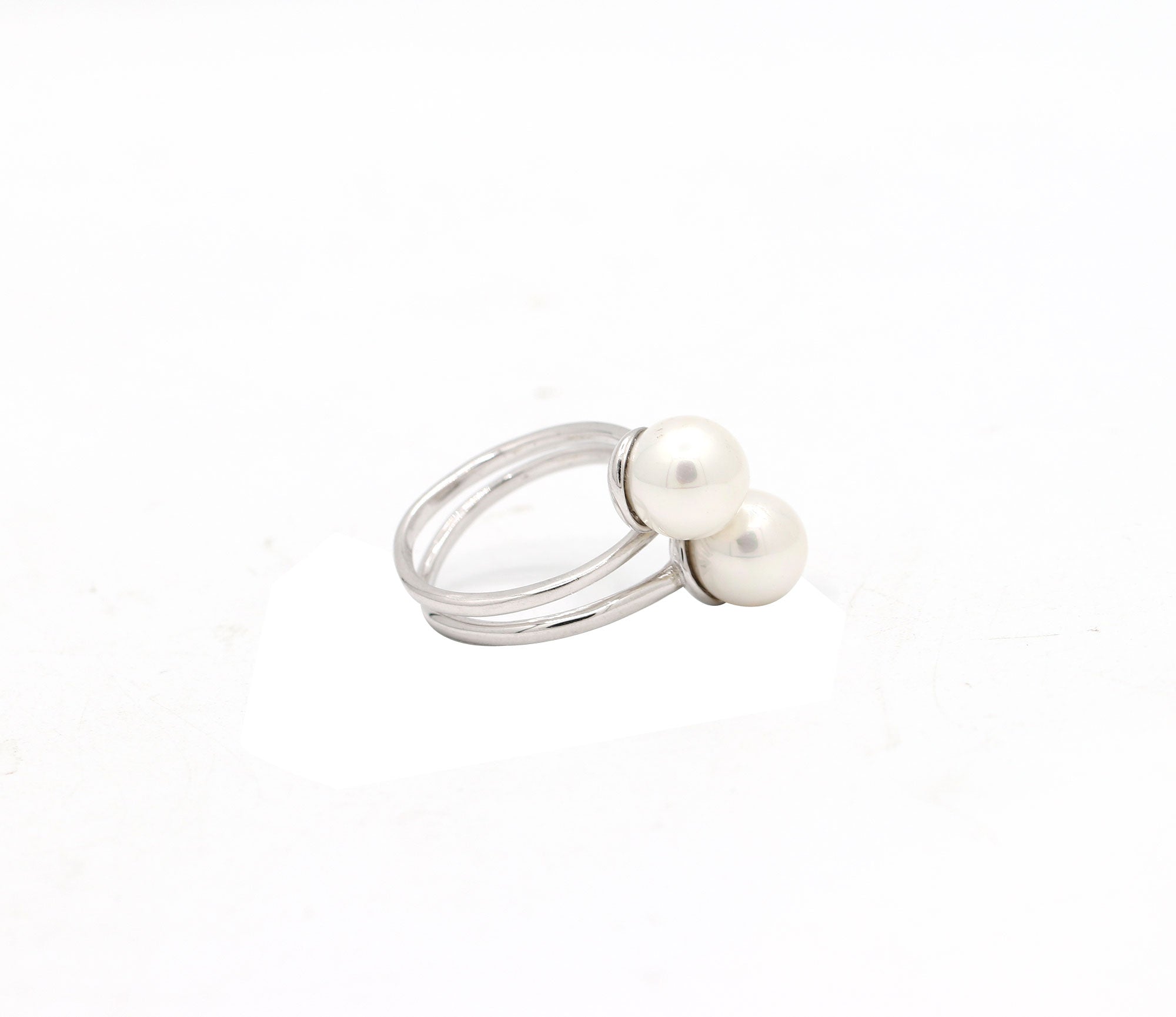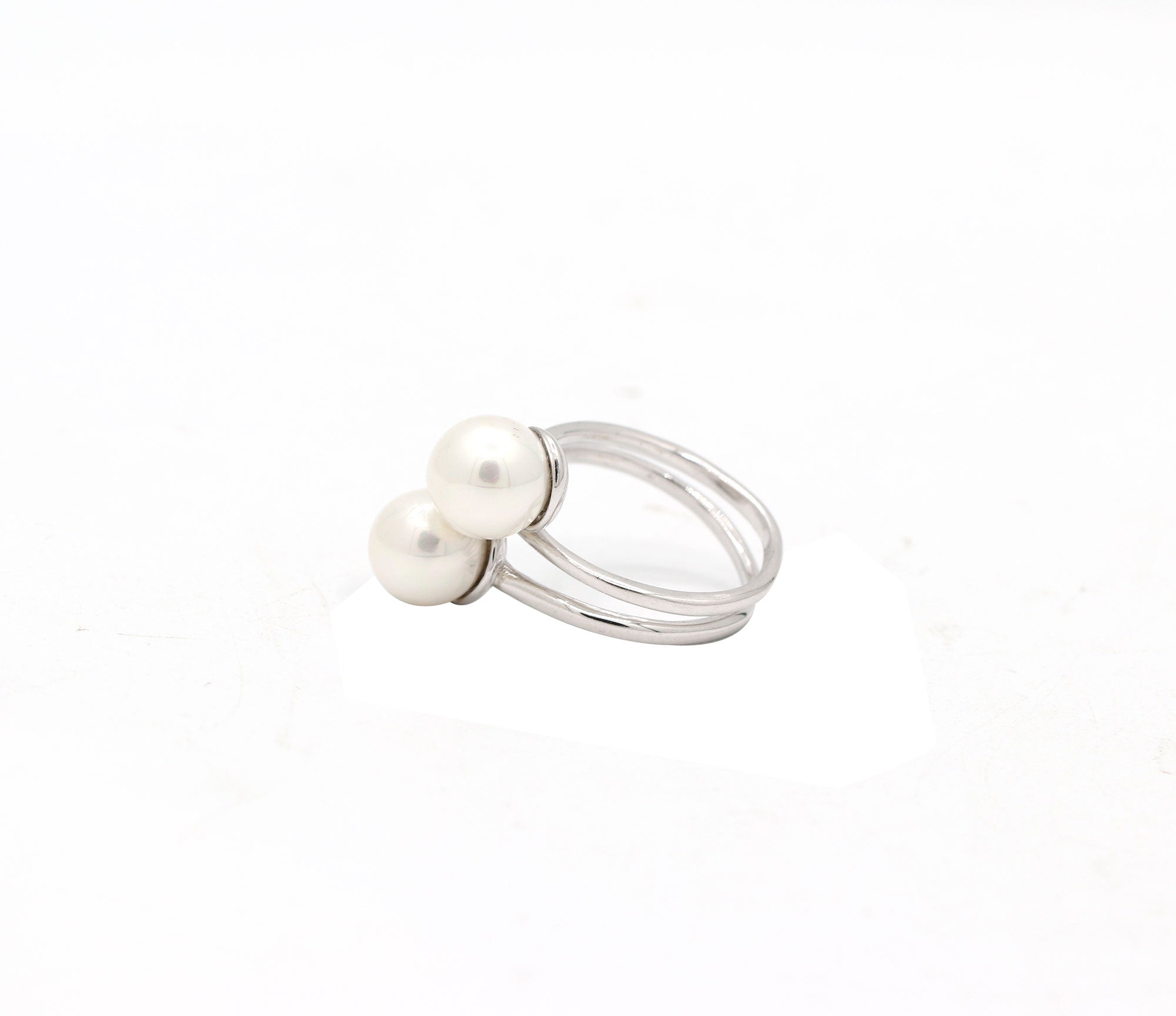 By Pass 925 Sterling Silver Pearl Gemstone Ring