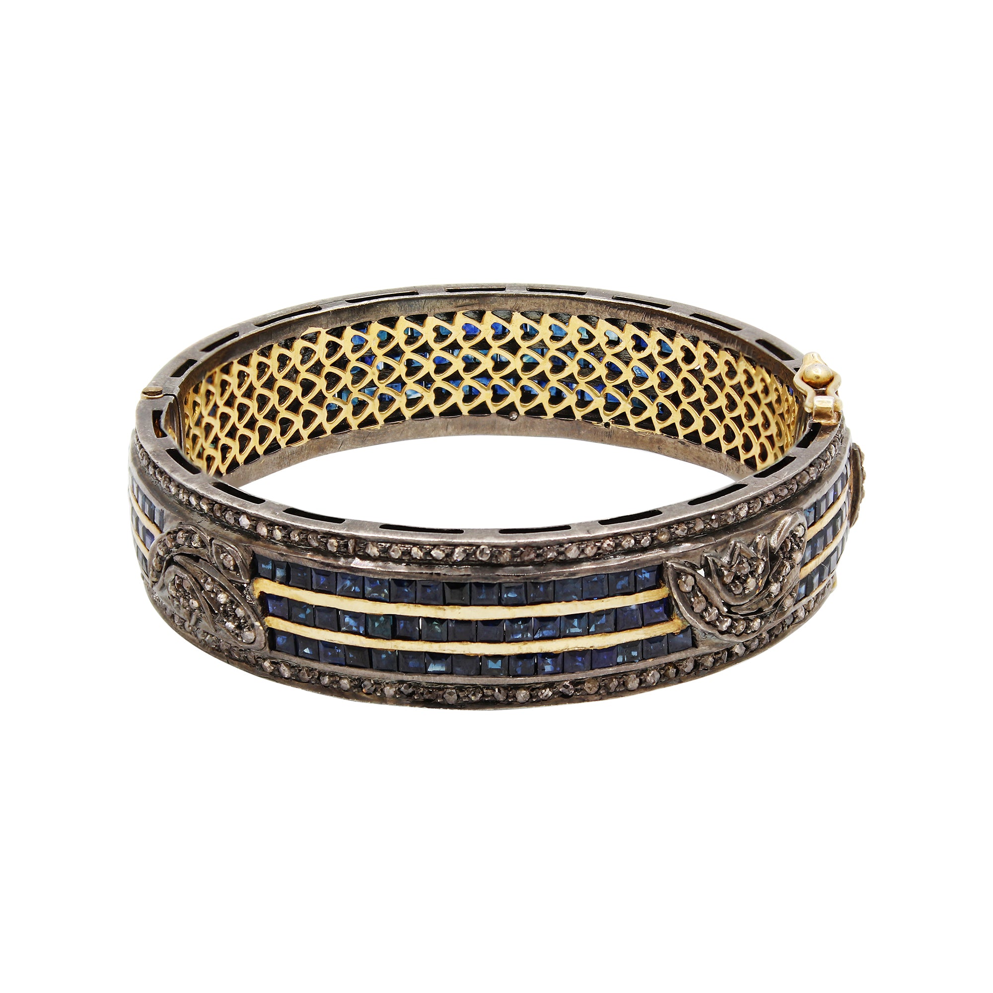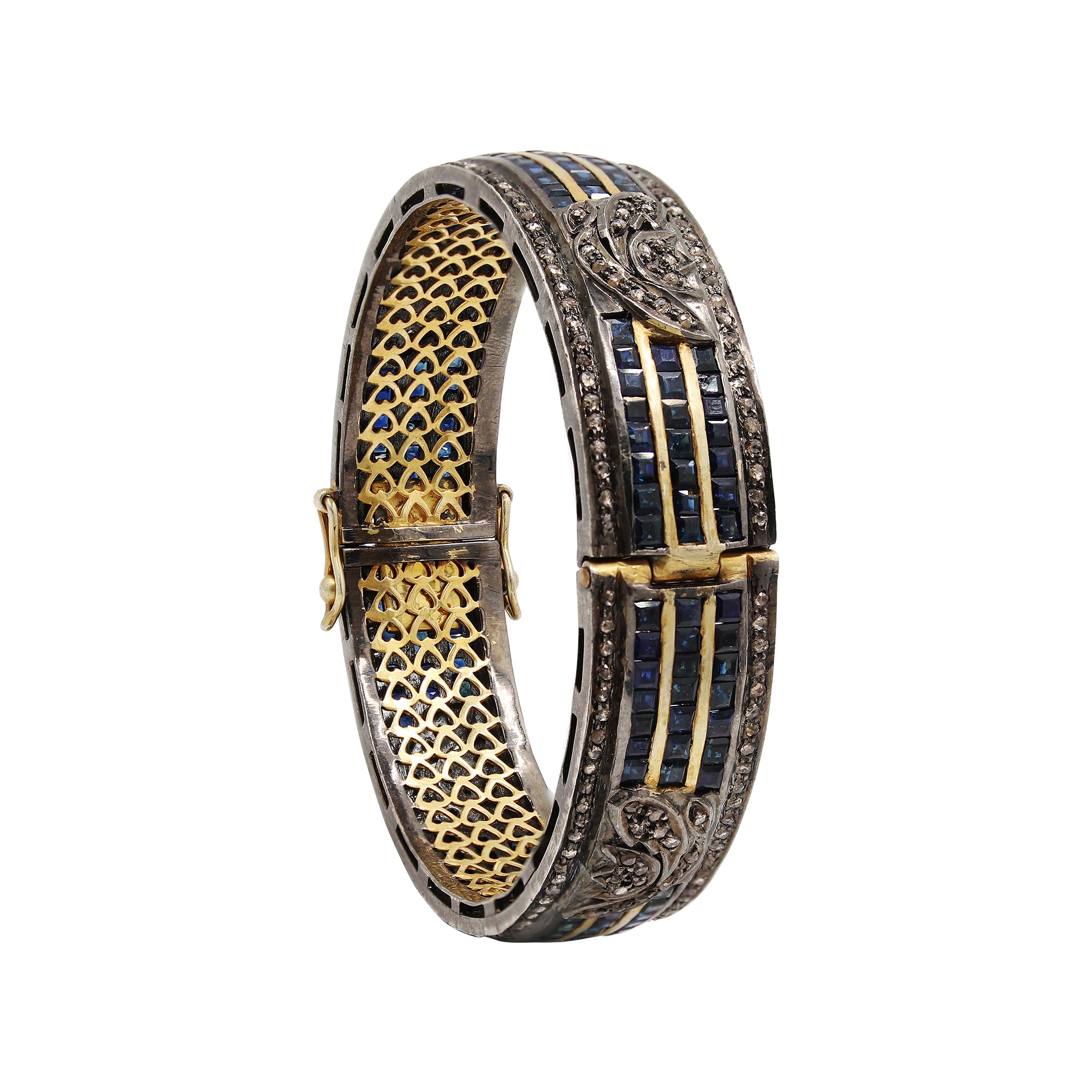 Natural Blue Sapphire And Diamond 925 Silver Bracelet