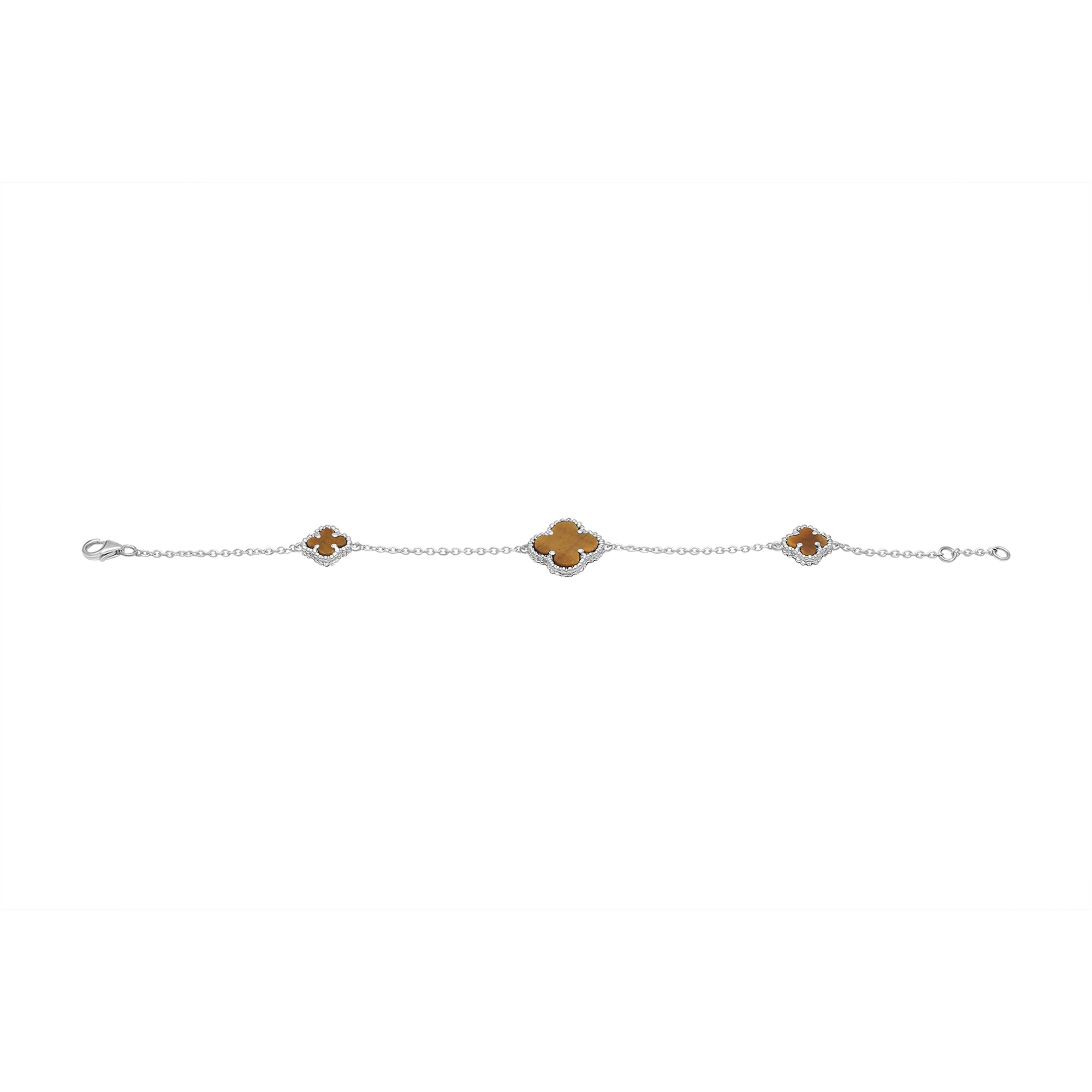 Tiger Eye Gemstone Clover Style 925 Silver Bracelet