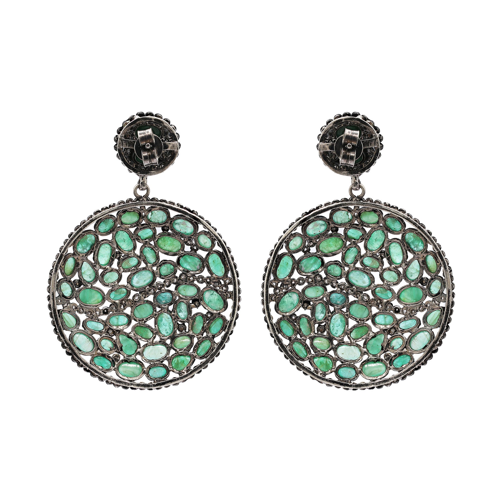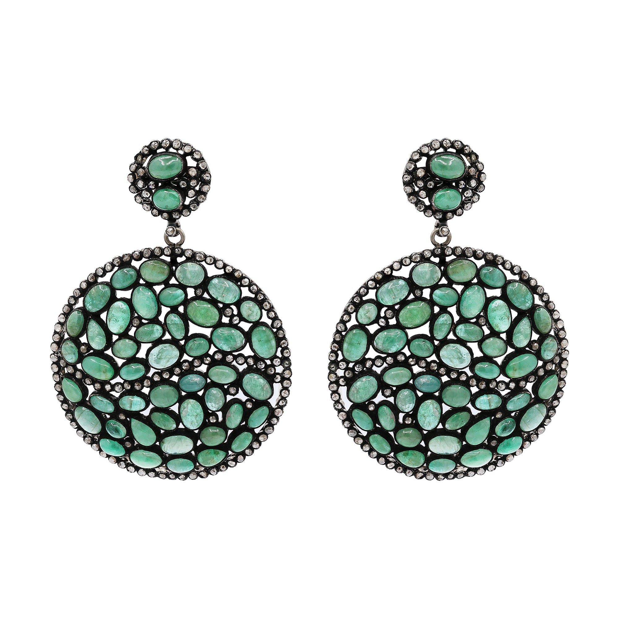 Natural Emerald Gemstone and Diamond 925 Sterling Silver Earring
