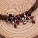 Natural Garnet Flower Drop Earrings in 925 Sterling Silver Handmade Red Gemstone Dangle Earrings