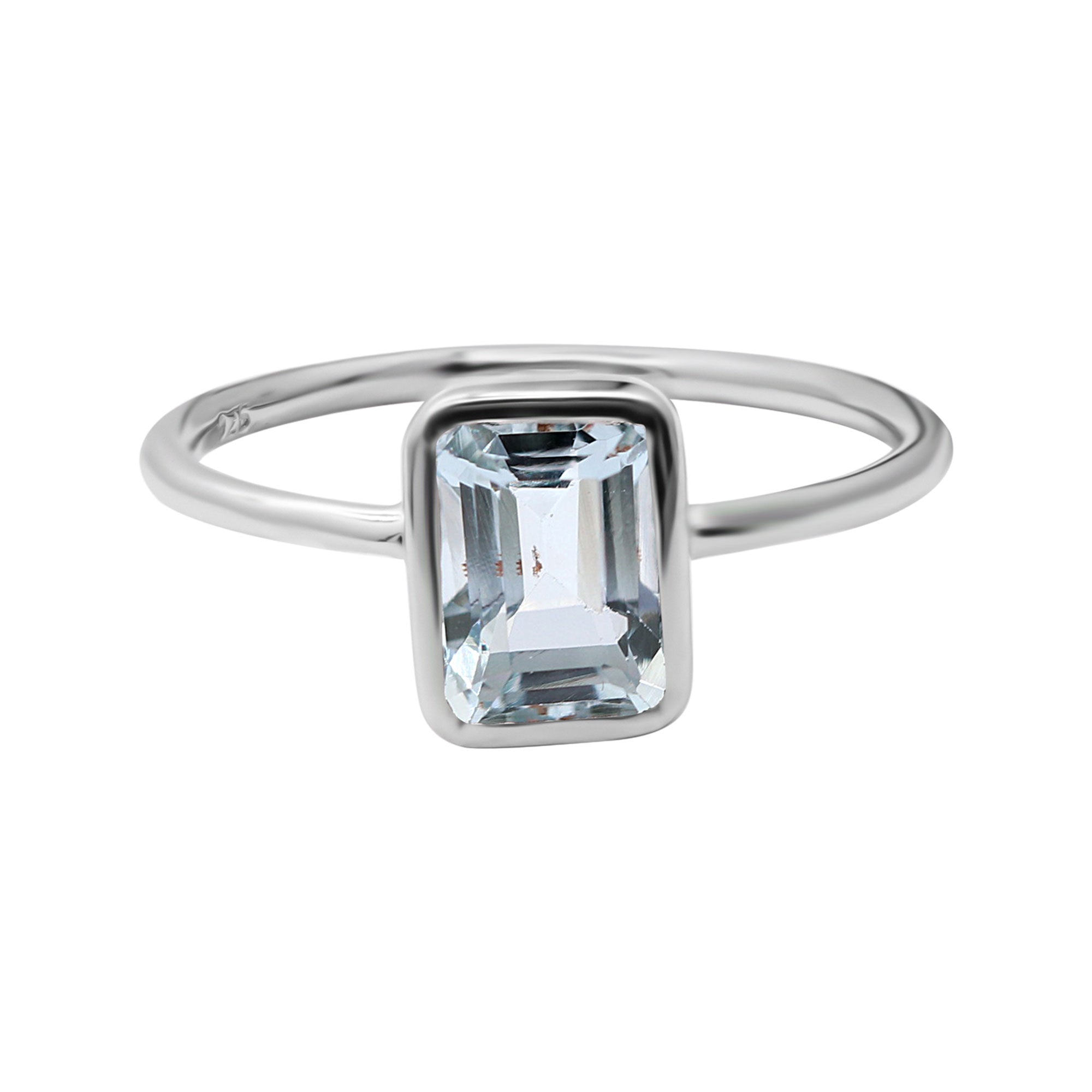 Natural Blue Topaz Rectangle Gemstone 925 Sterling Silver Ring