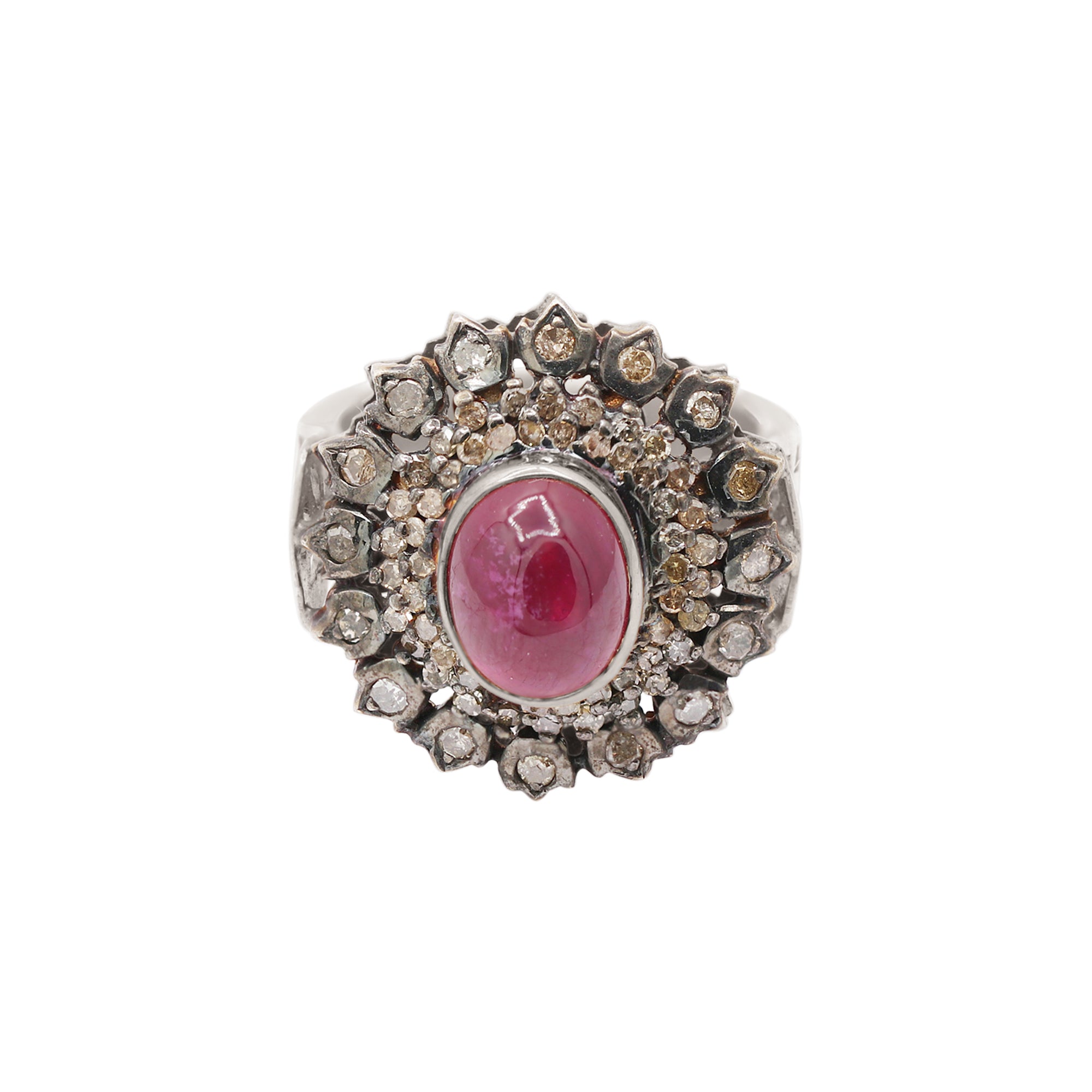 Item Type: Ruby and Diamond 925 Silver Gold Plated Ring