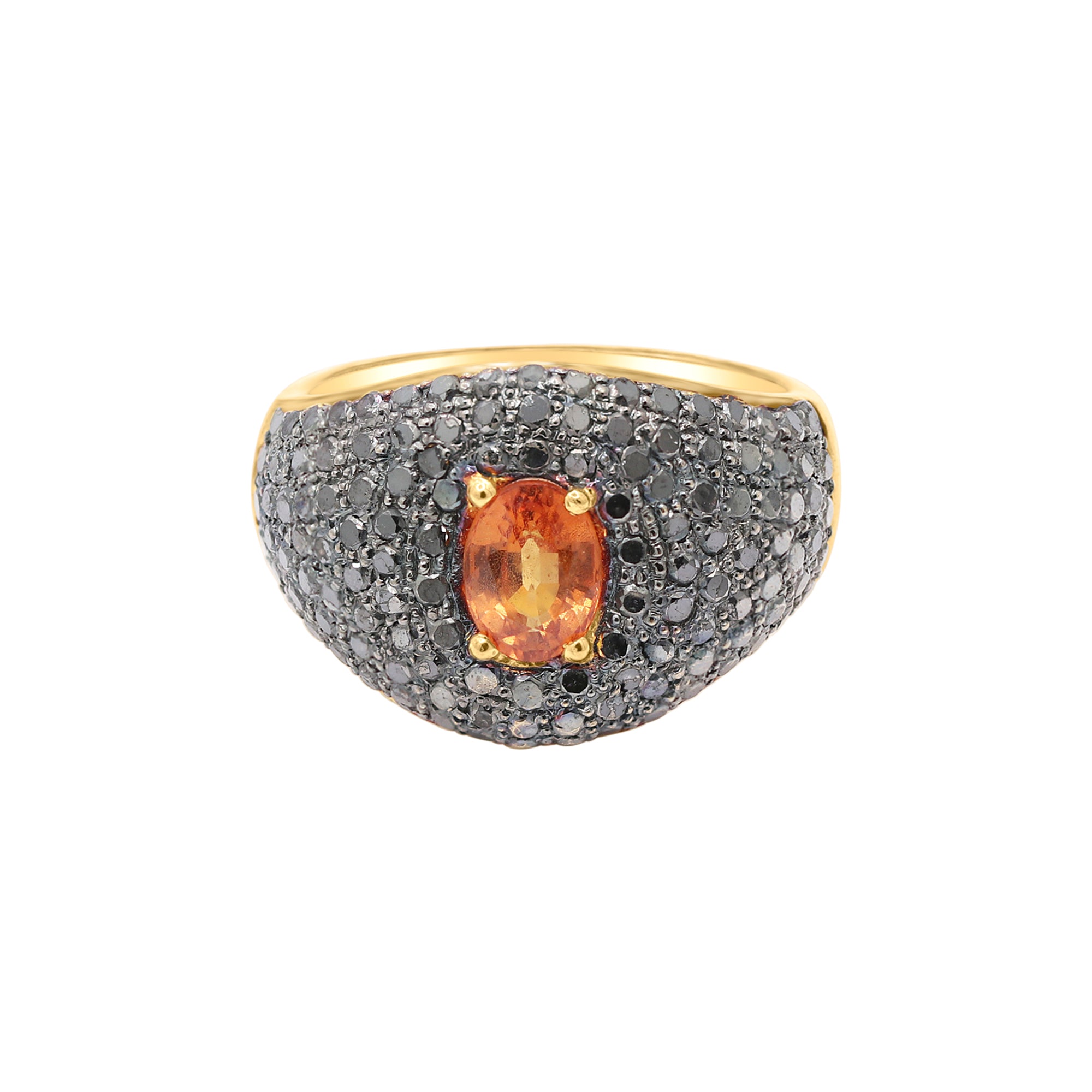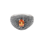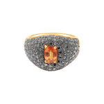 Orange Sapphire and Black Diamond 925 Silver Gold Plated Designer Ring