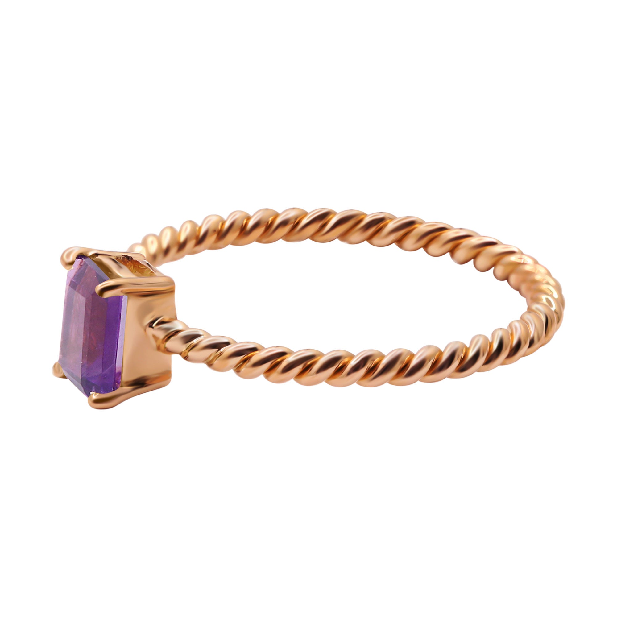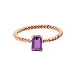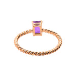 Twisted 925 Rectangle Cut Amethyst Rose Gold Plated Ring