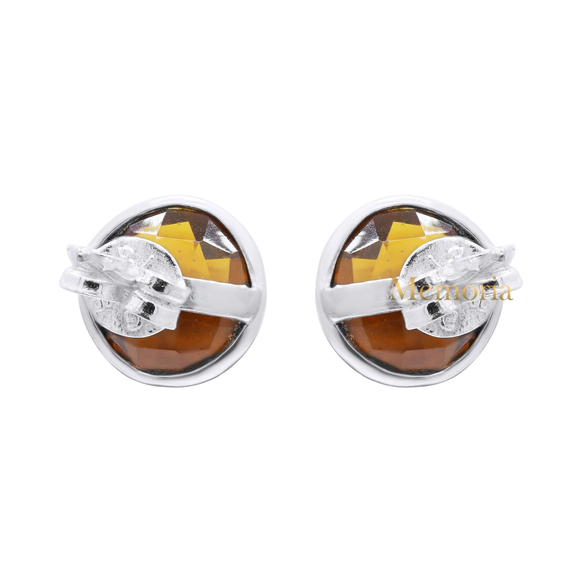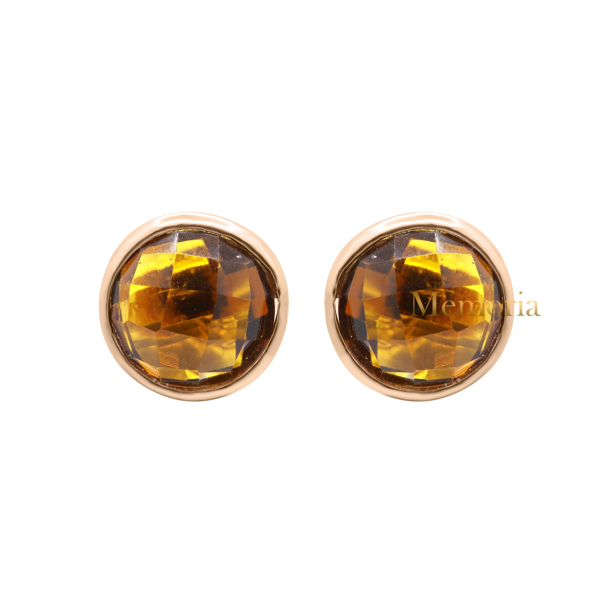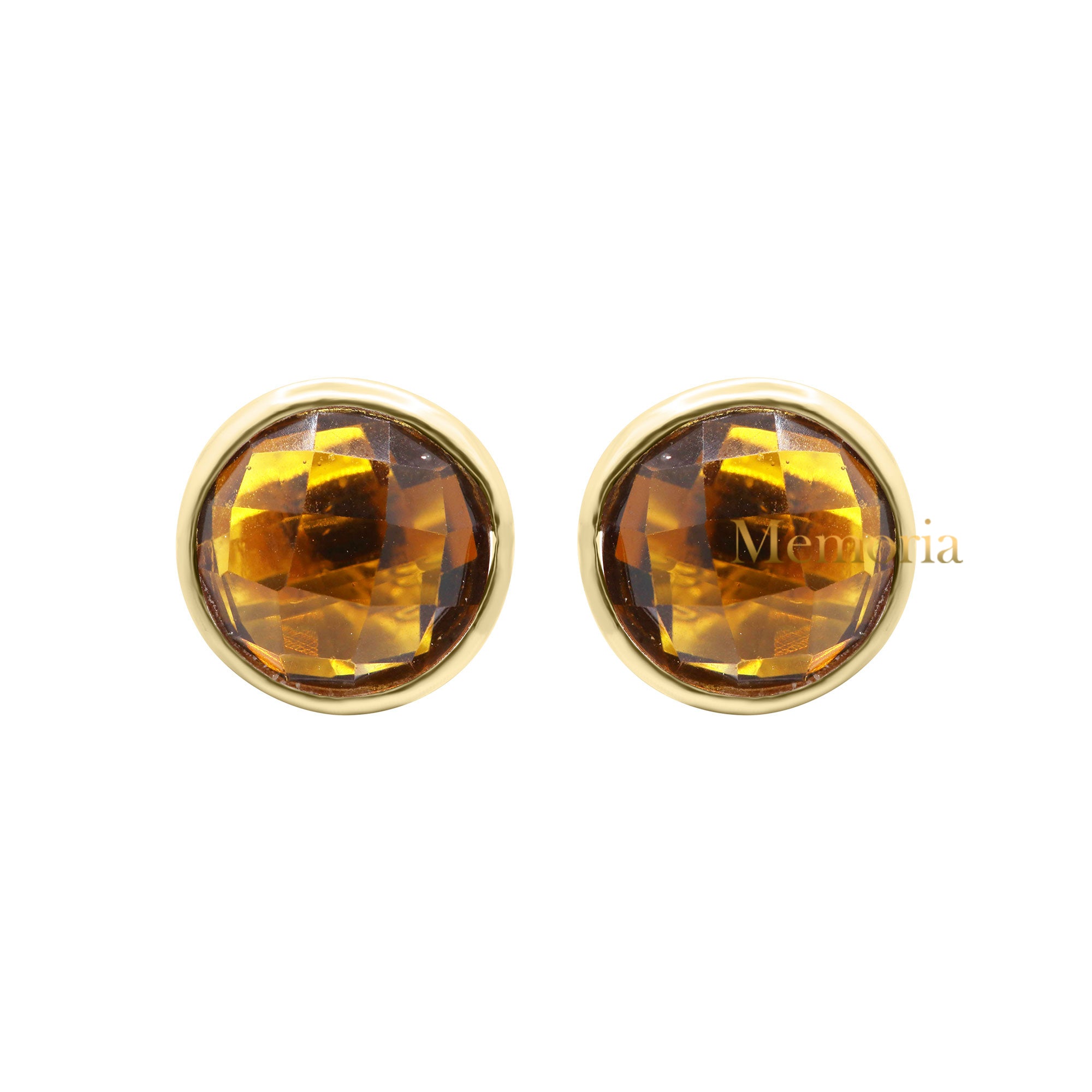 Natural Citrine Gemstone 925 Sterling Silver Gold Plated Bezel Set Stud Earring