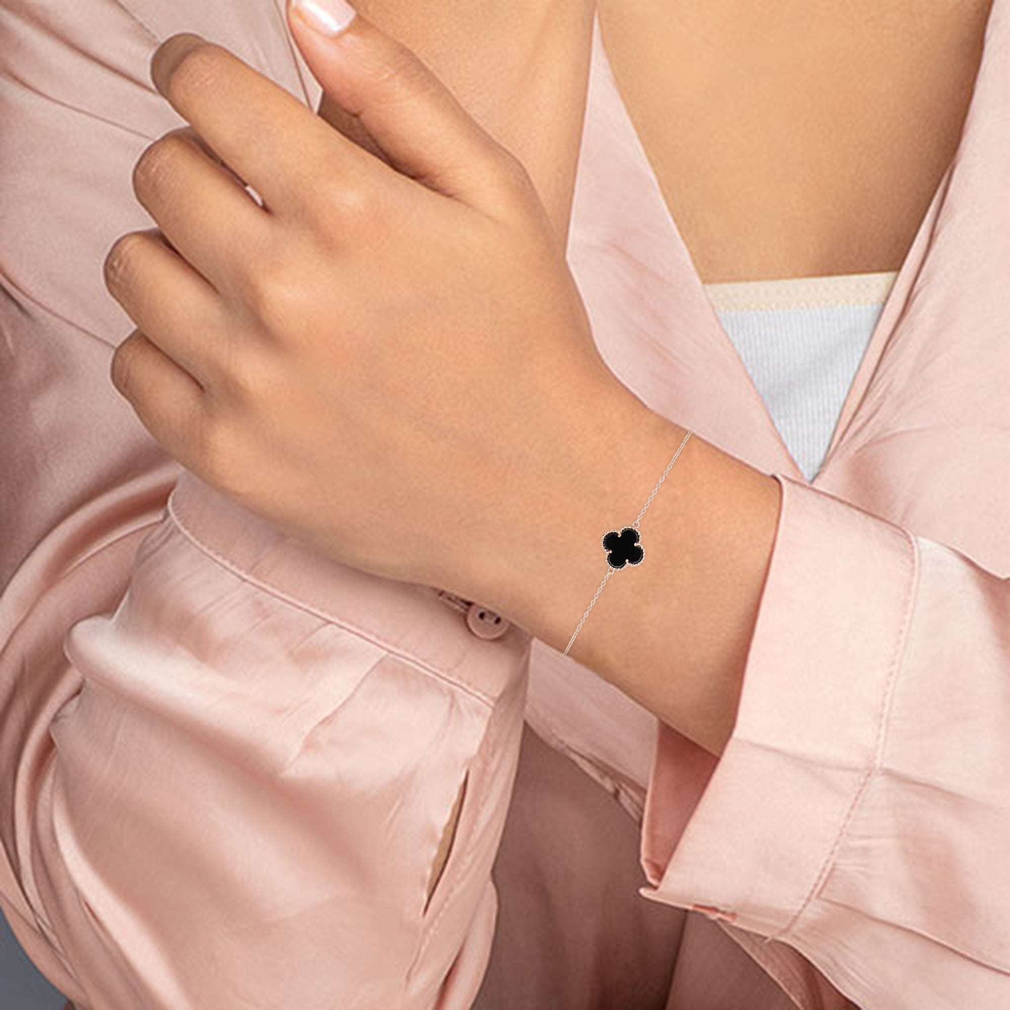 Item Type: Silver Black Onyx Gemstone Clover Bracelet