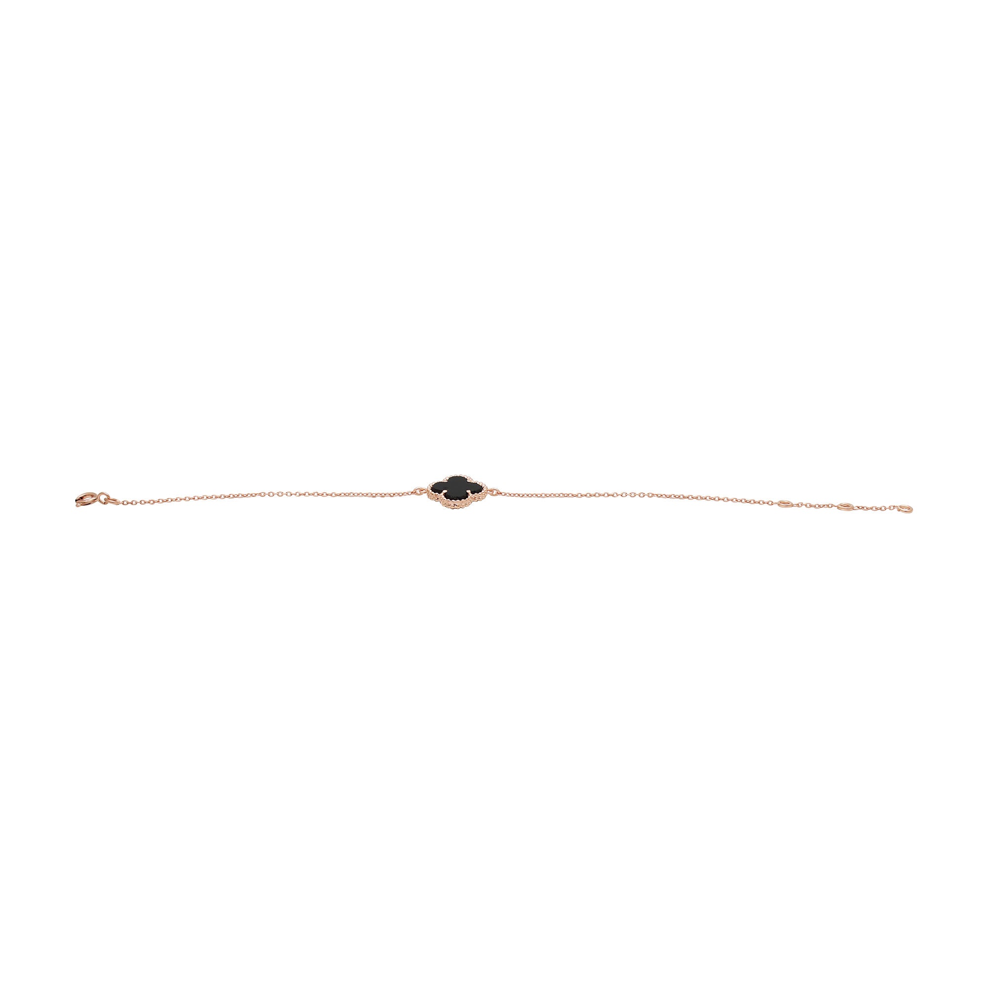 925 Sterling Silver Black Onyx Gemstone Clover Bracelet