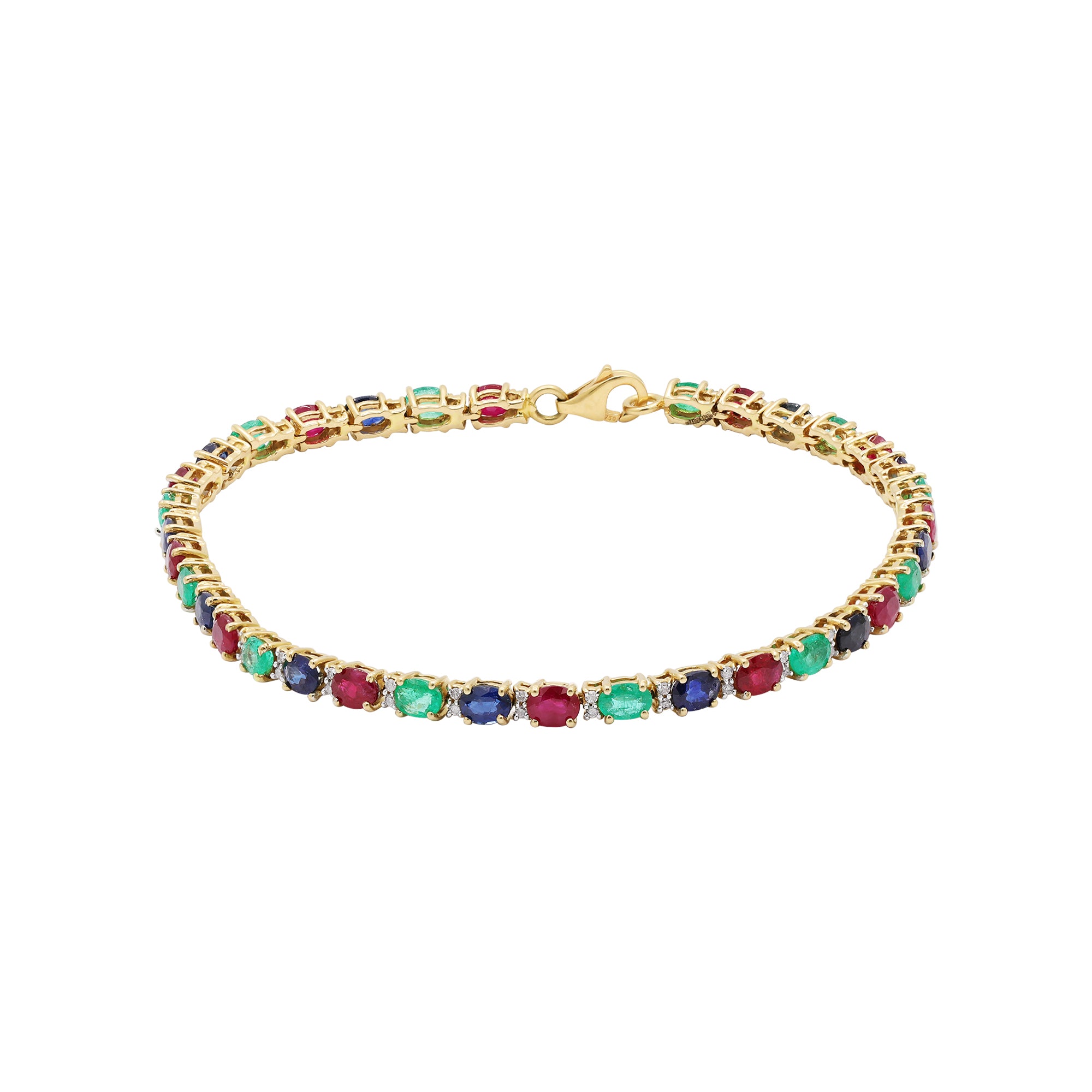 Natural Ruby, Emerald, Sapphire & Diamond 18k Yellow Gold Bracelet