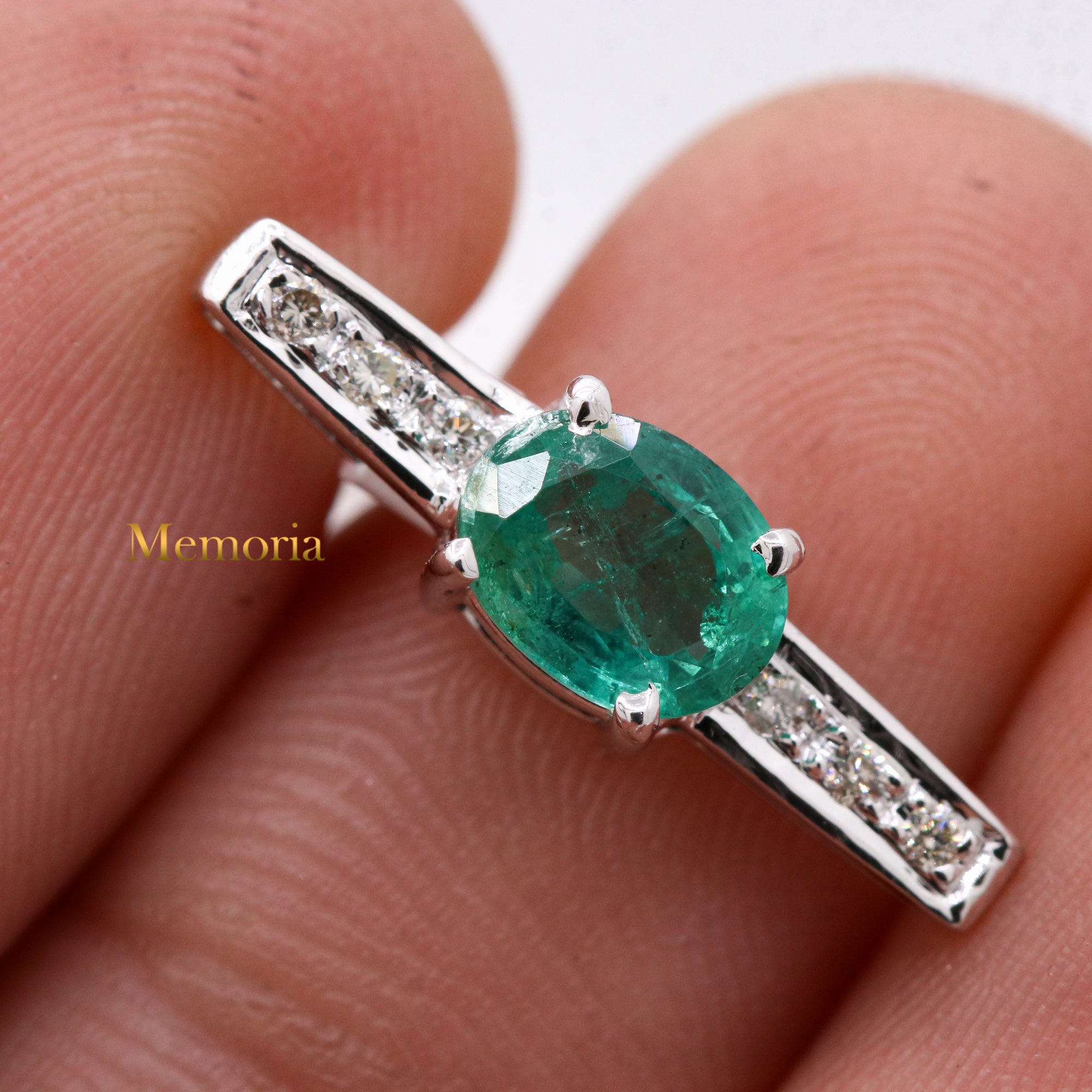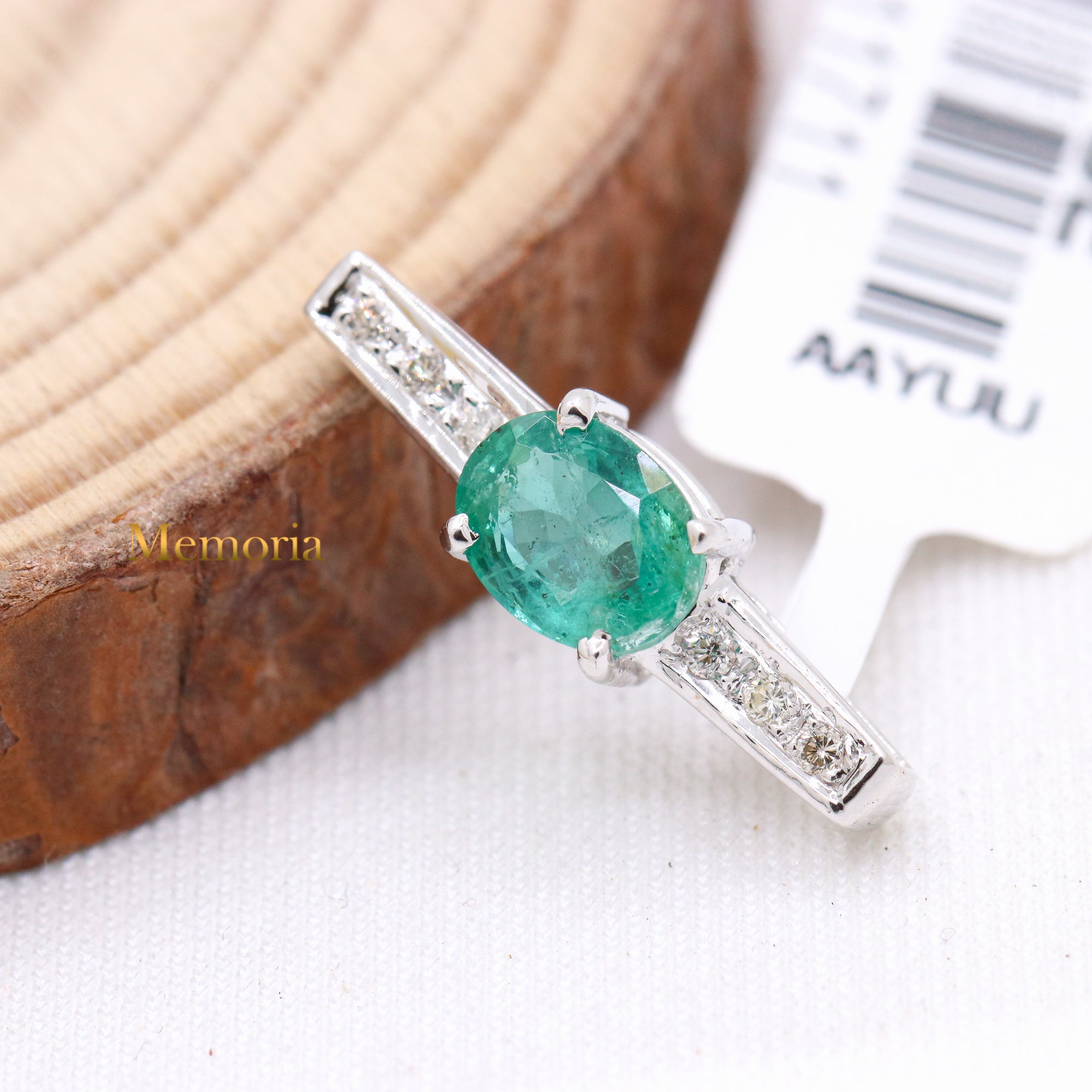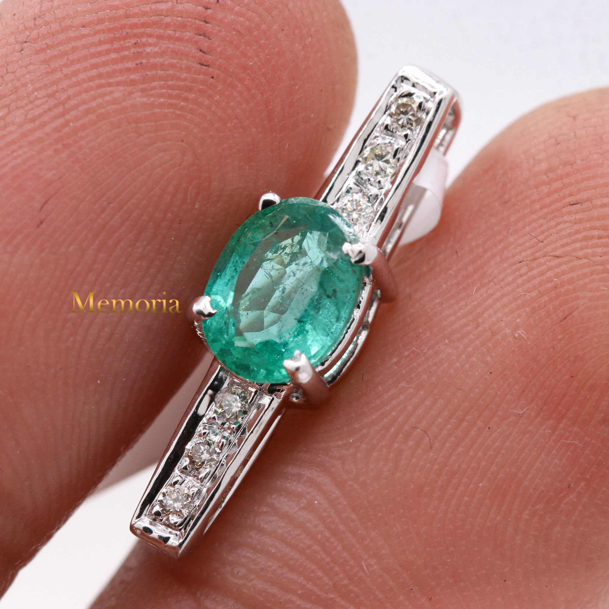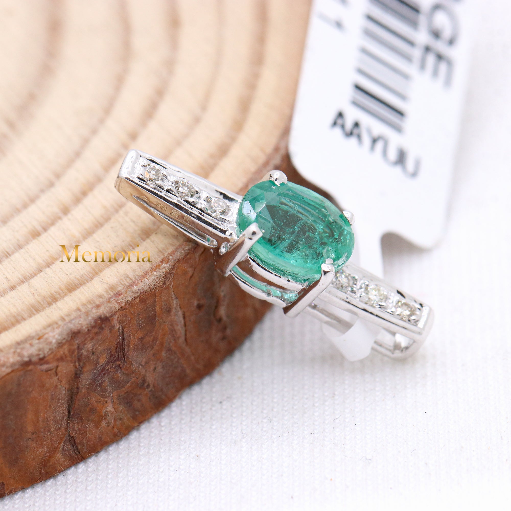 Buy Best Quality Certified Birthstone Natural Emerald Oval Shaped Faceted Cut Spiritual Chakra Healing Gemstone With Diamond Pendant In 18k White Gold