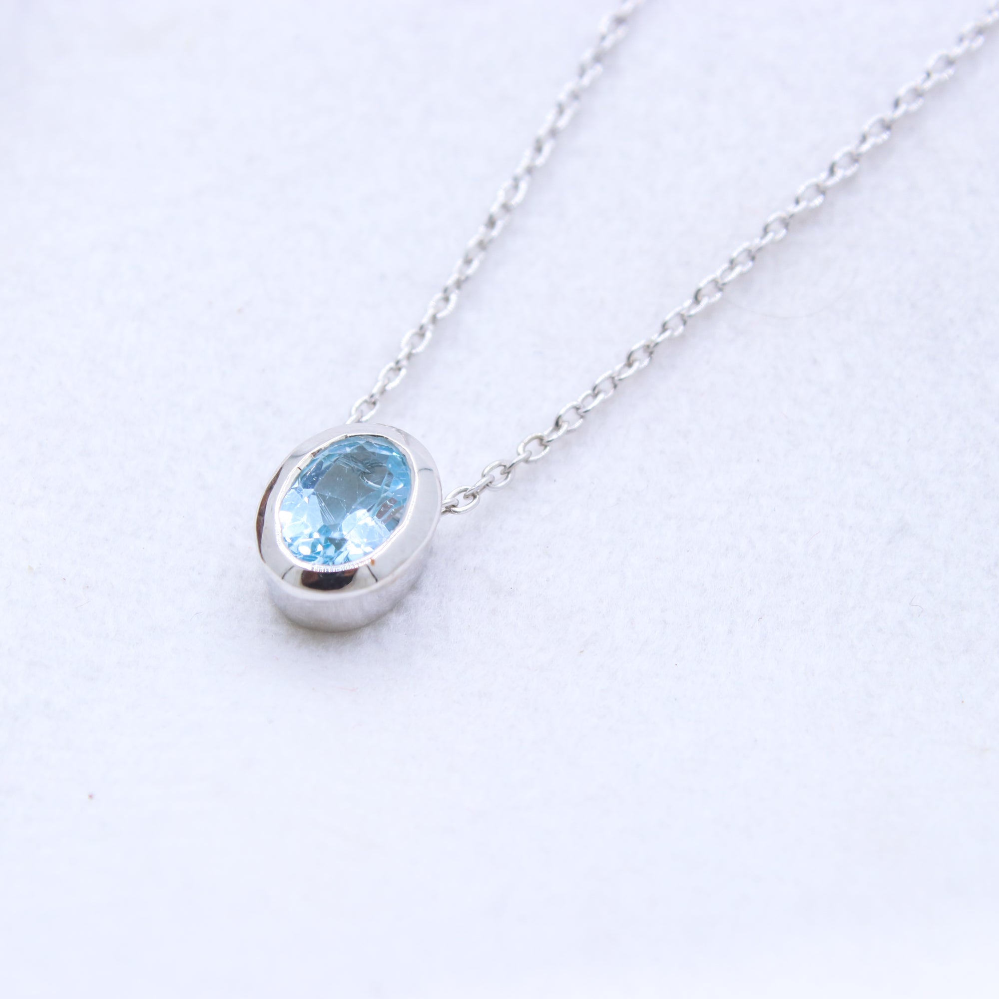 Celebrate timeless elegance with this natural blue topaz pendant necklace, handcrafted in 925 sterling silver. The oval-cut blue topaz showcases a serene sky-blue sparkle, bezel-set to highlight the gemstone’s natural brilliance while offering a sleek, modern finish.