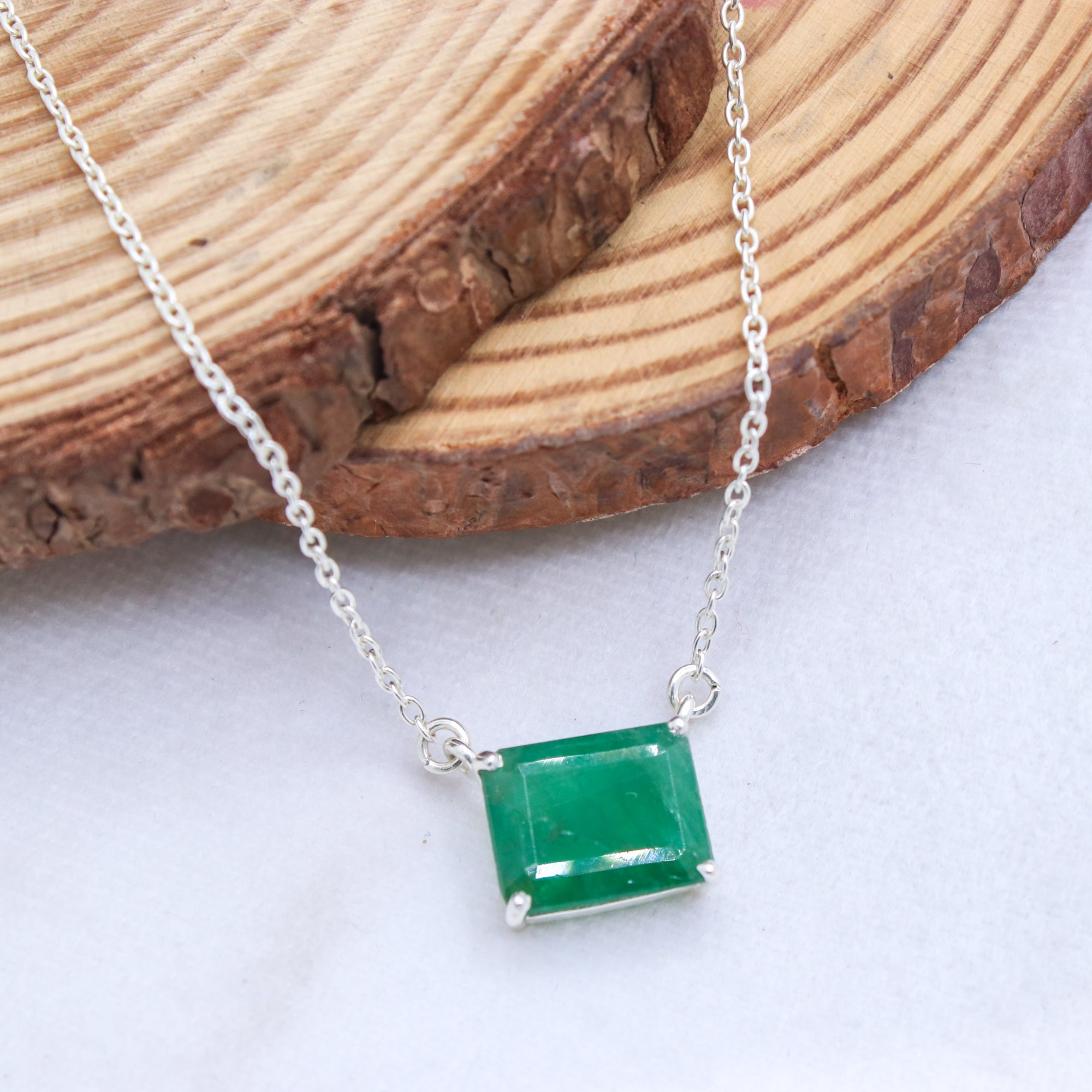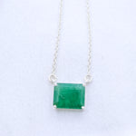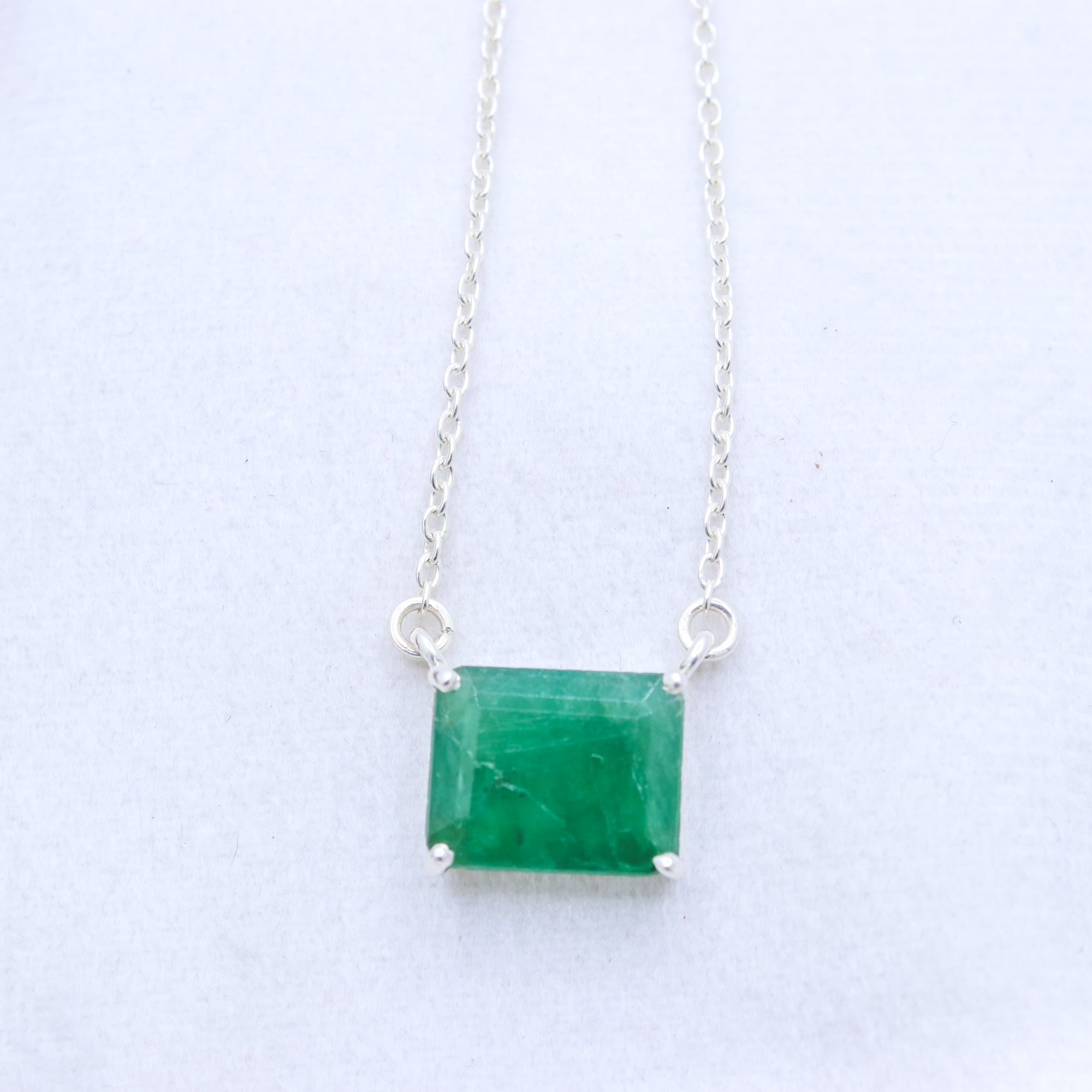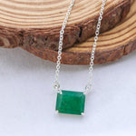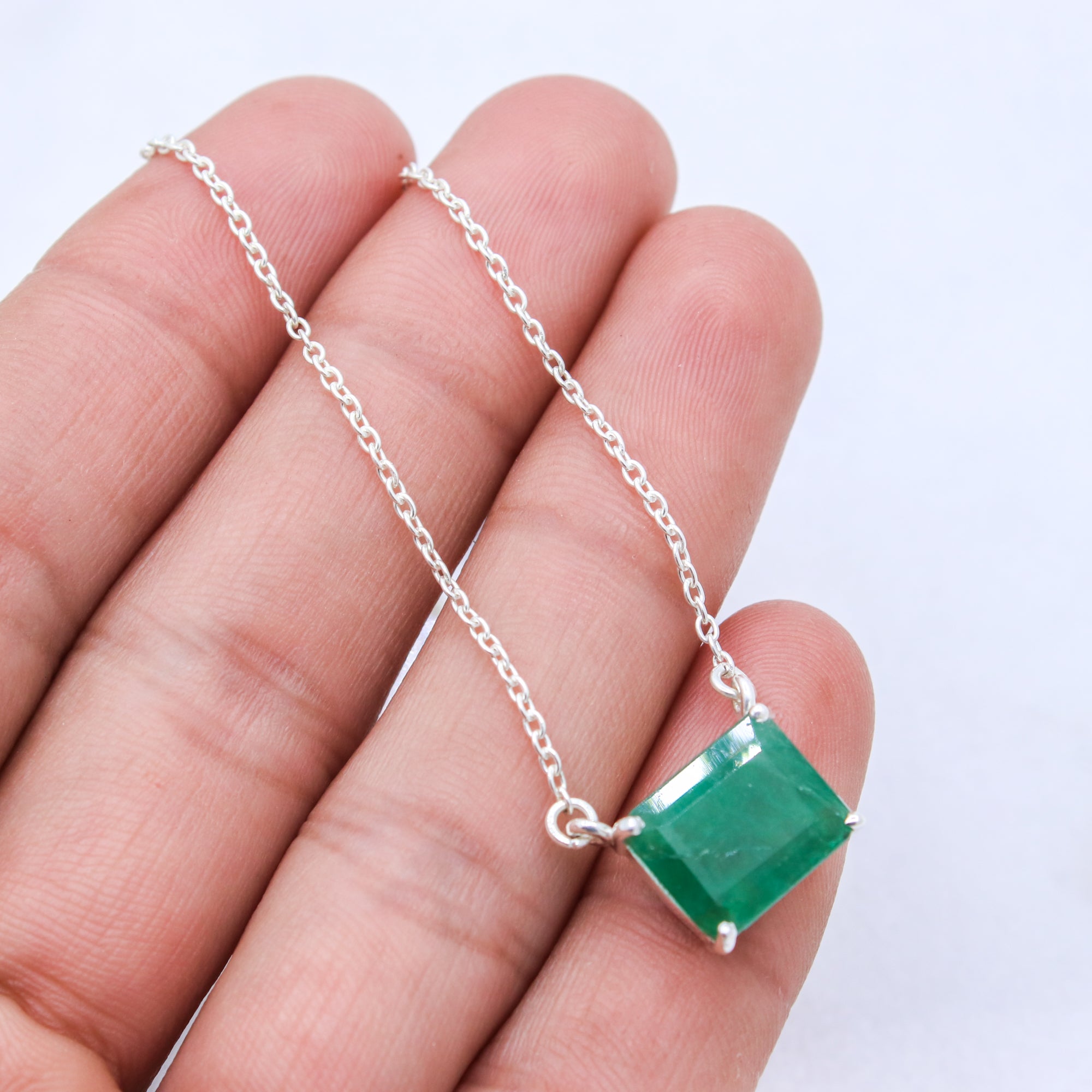 Natural Emerald Square Pendant Necklace Handmade 925 Sterling Silver Minimal Necklace