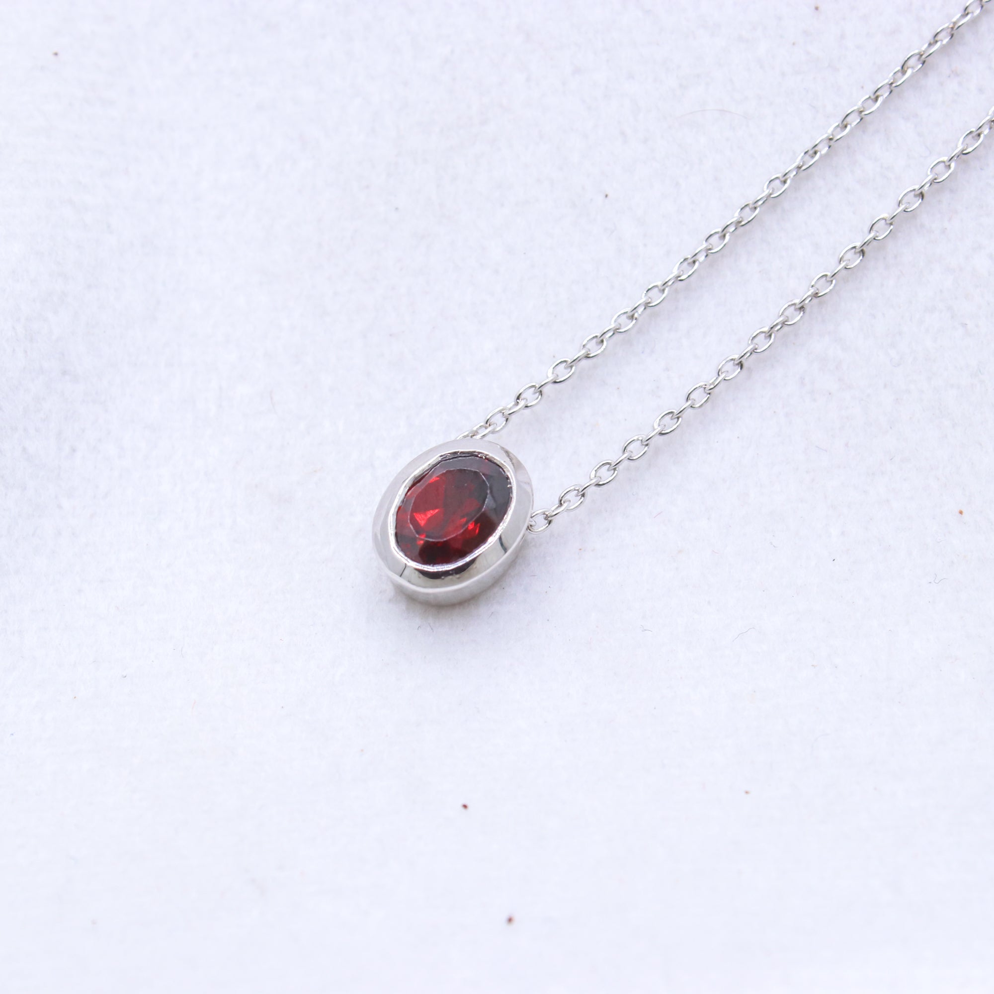 Natural Garnet Oval Necklace in Sterling Silver January Birthstone Minimal Pendant