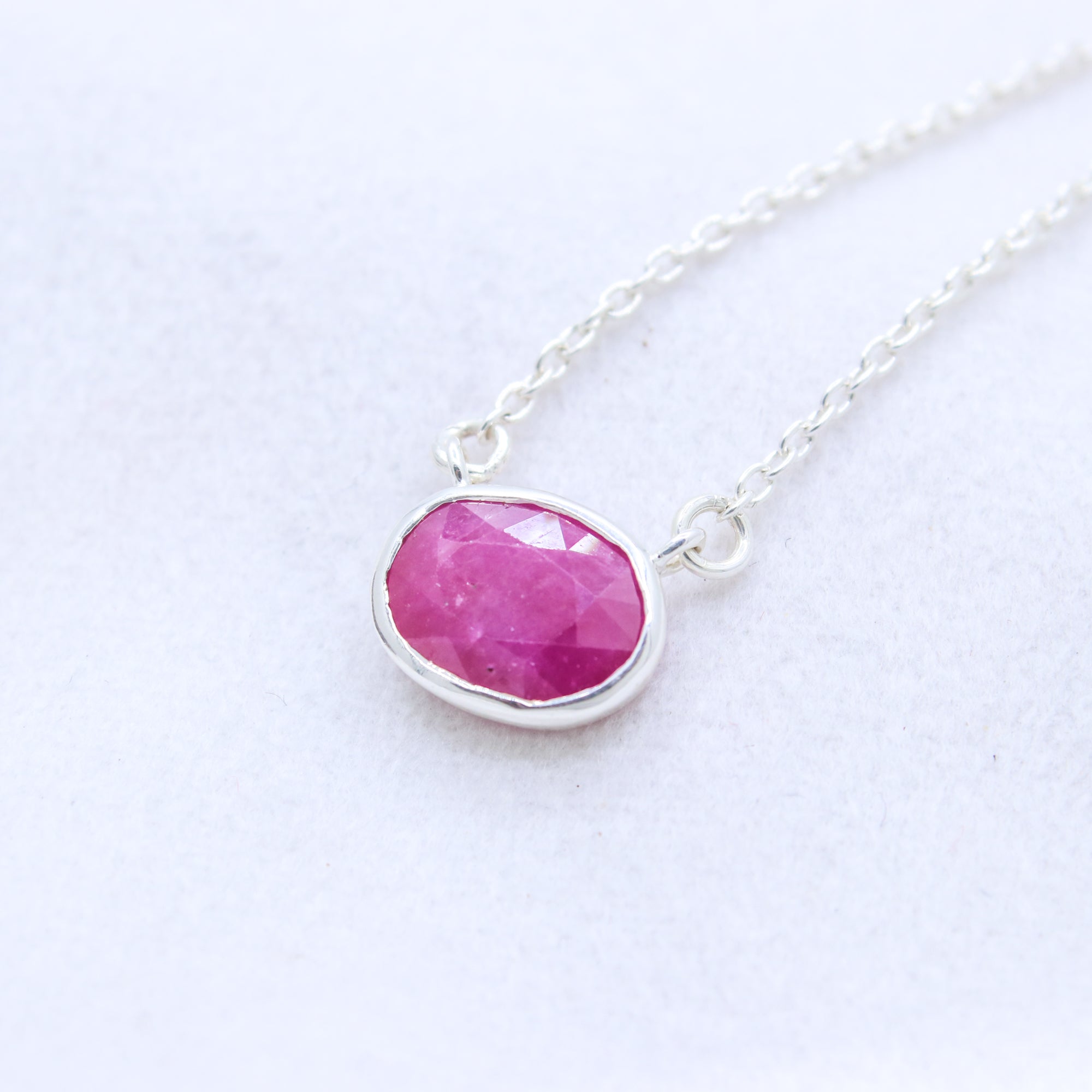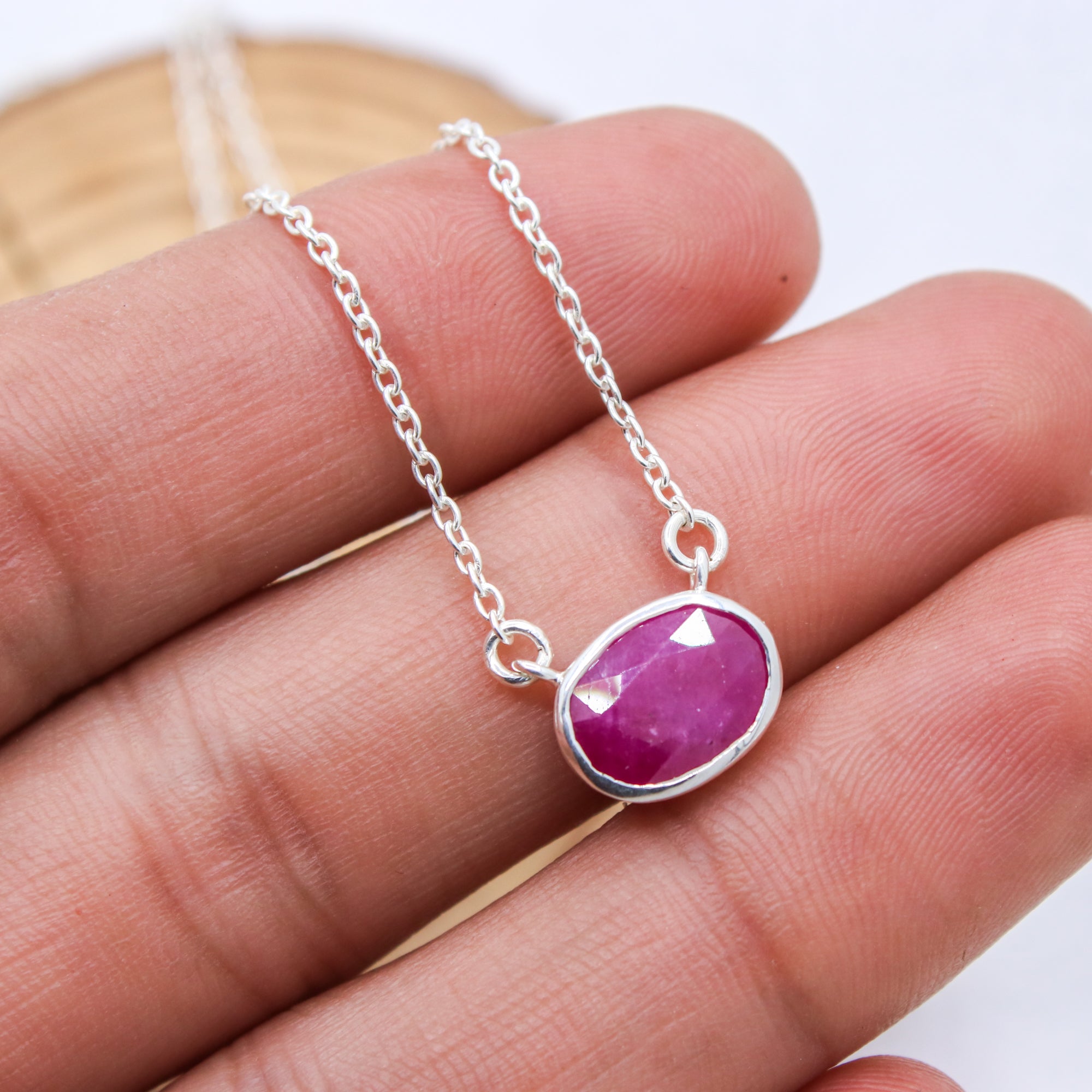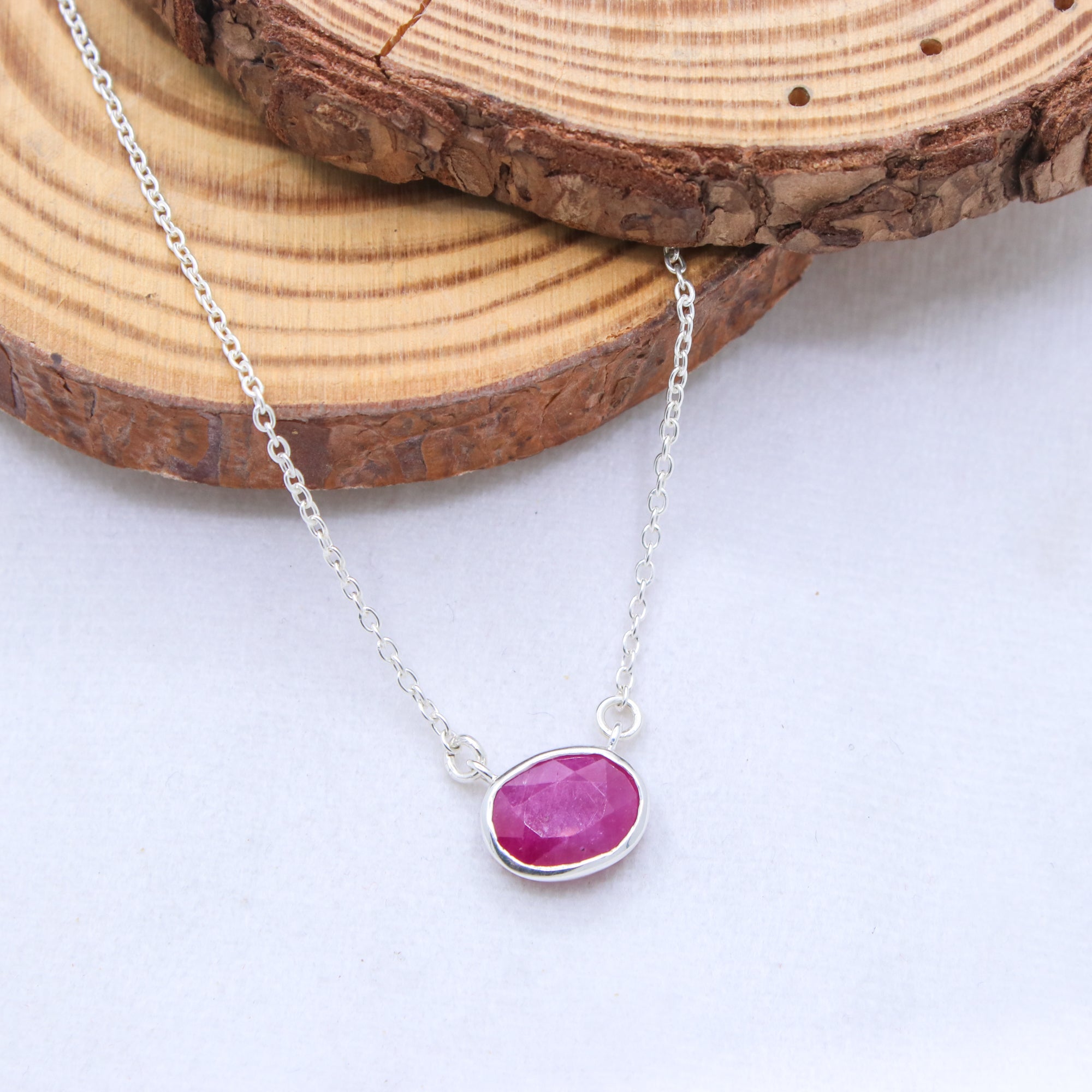 Natural Ruby Sterling Silver Necklace Handmade Ruby Gemstone Pendant