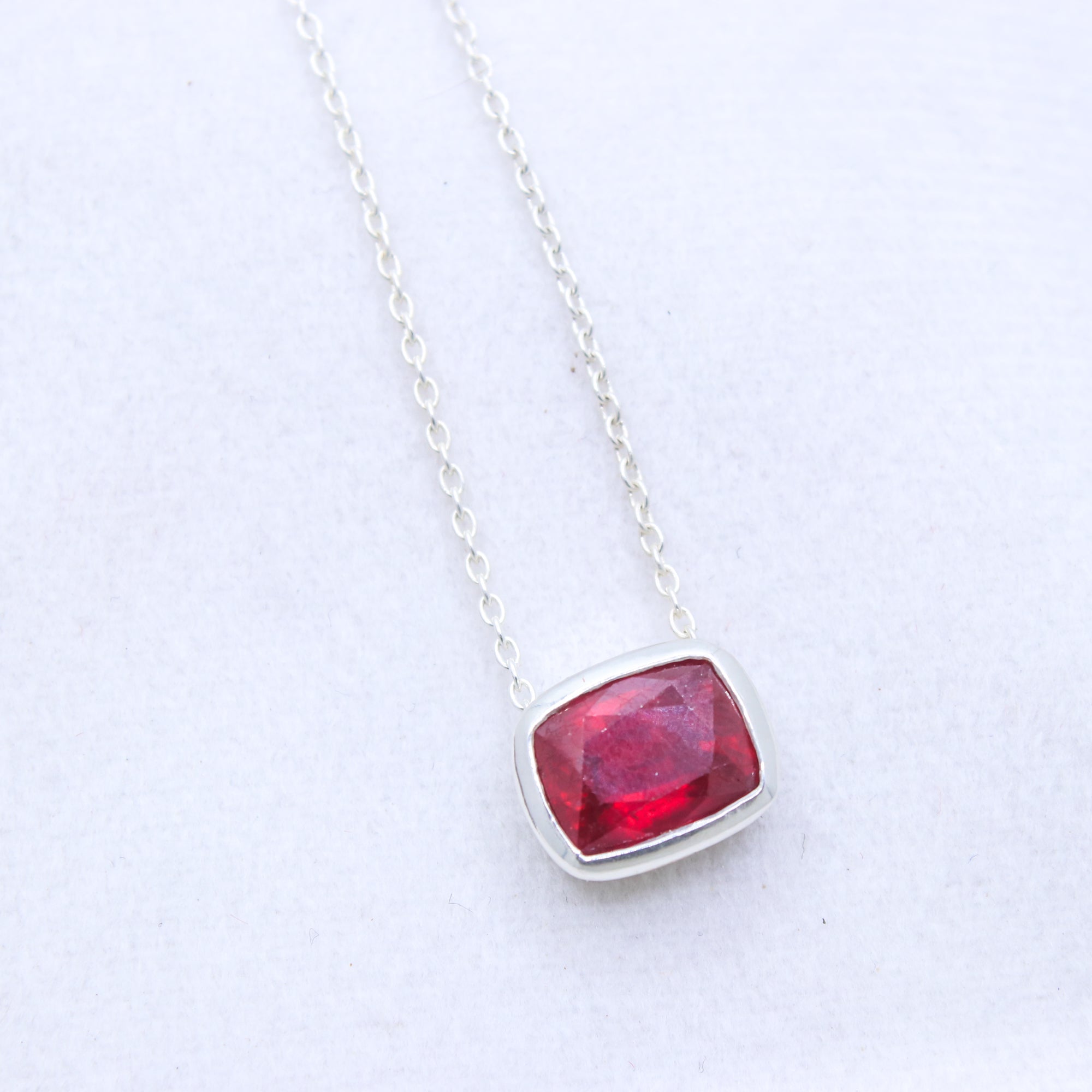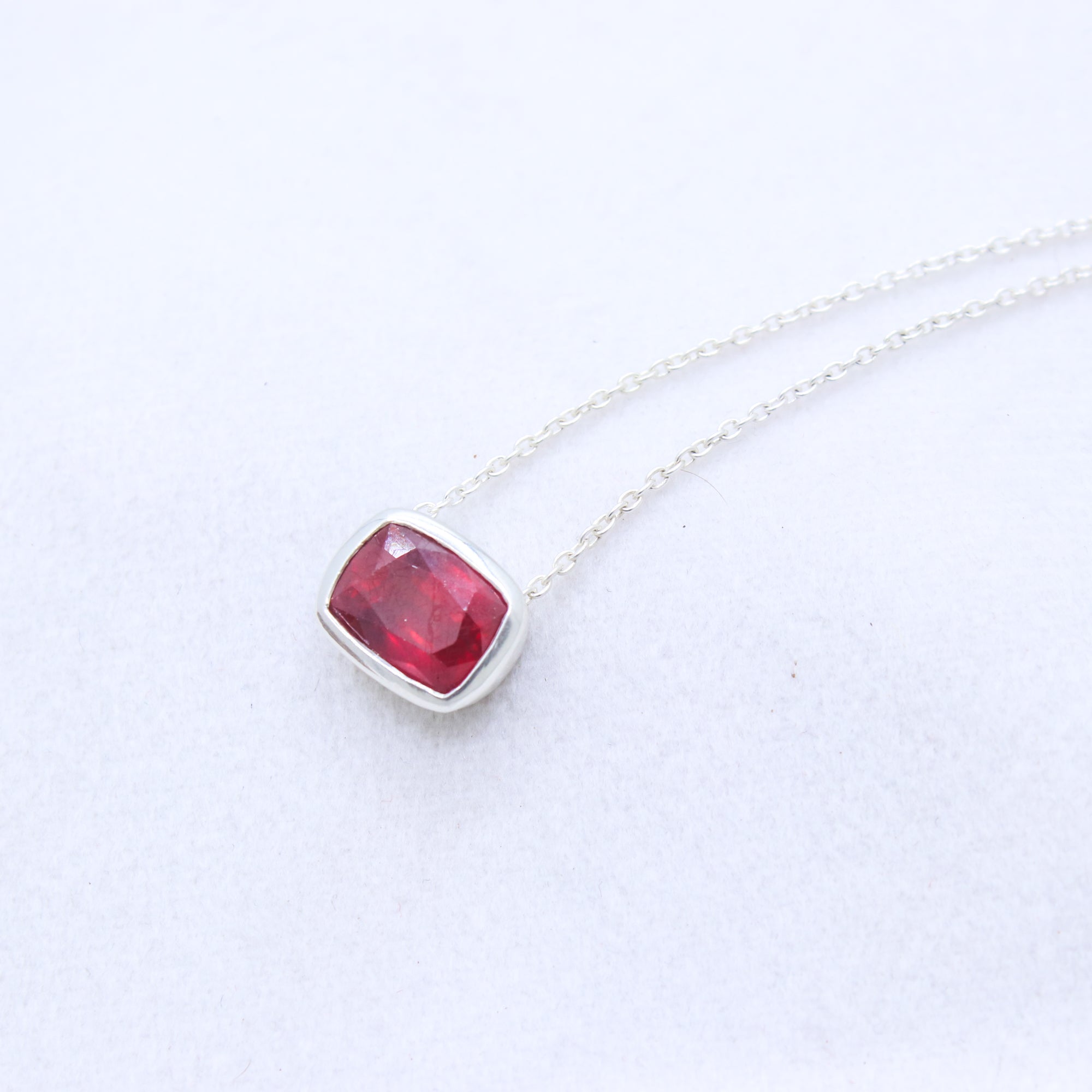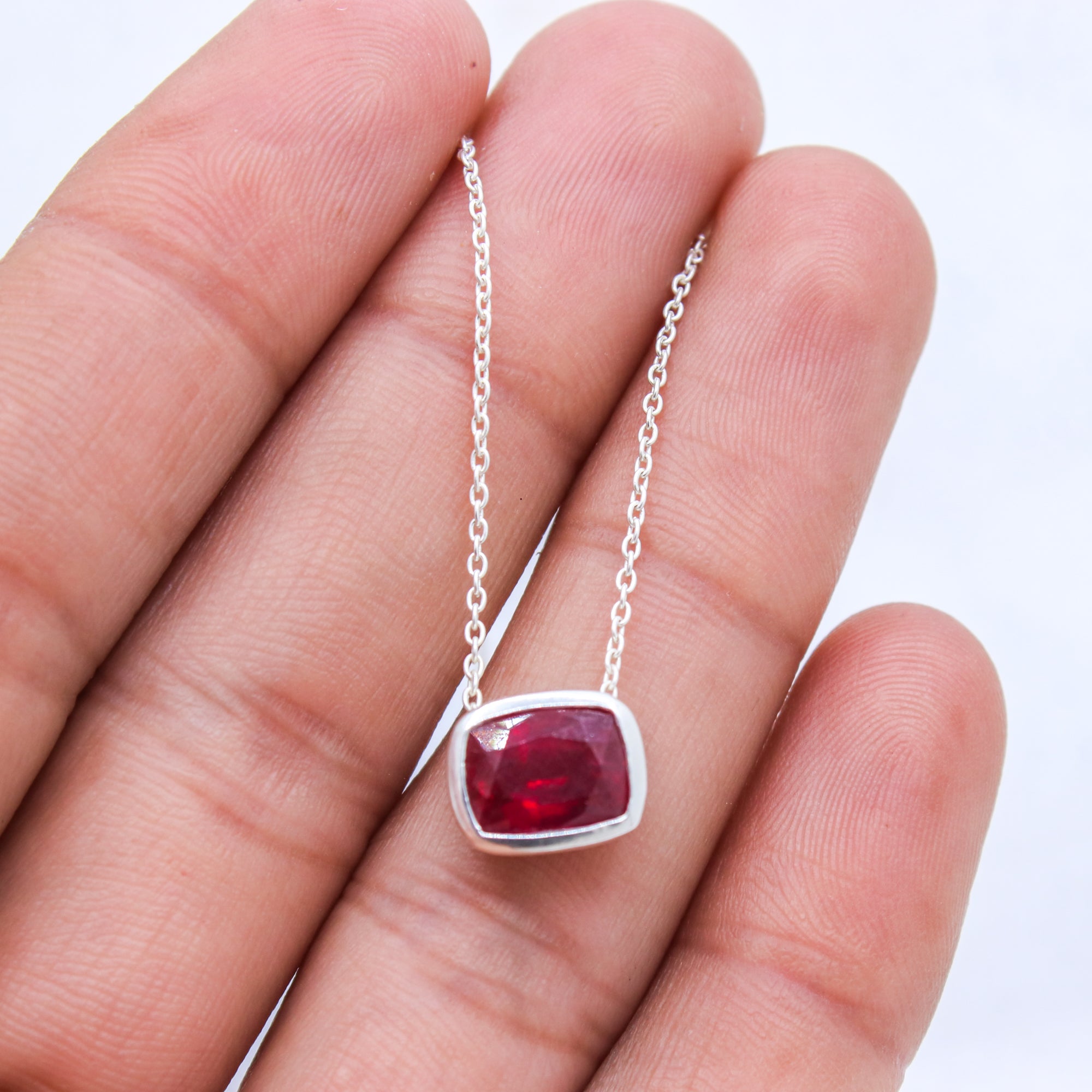 Add a touch of timeless elegance to your jewelry collection with this Natural Ruby Sterling Silver Necklace, handcrafted to showcase the rich red glow of genuine ruby. The cushion-shaped ruby is carefully bezel set in 925 sterling silver, creating a sleek, modern pendant that feels both classic and contemporary.