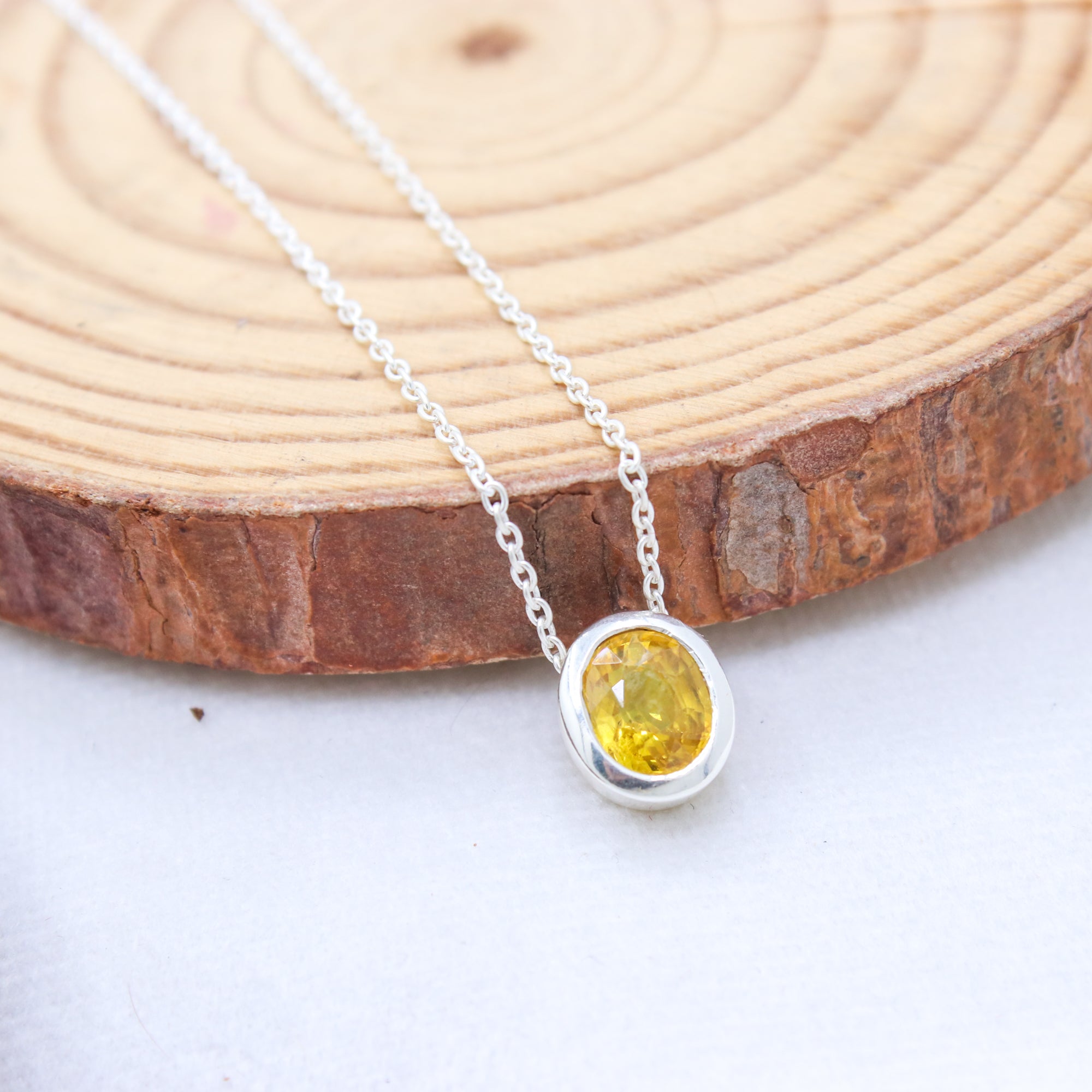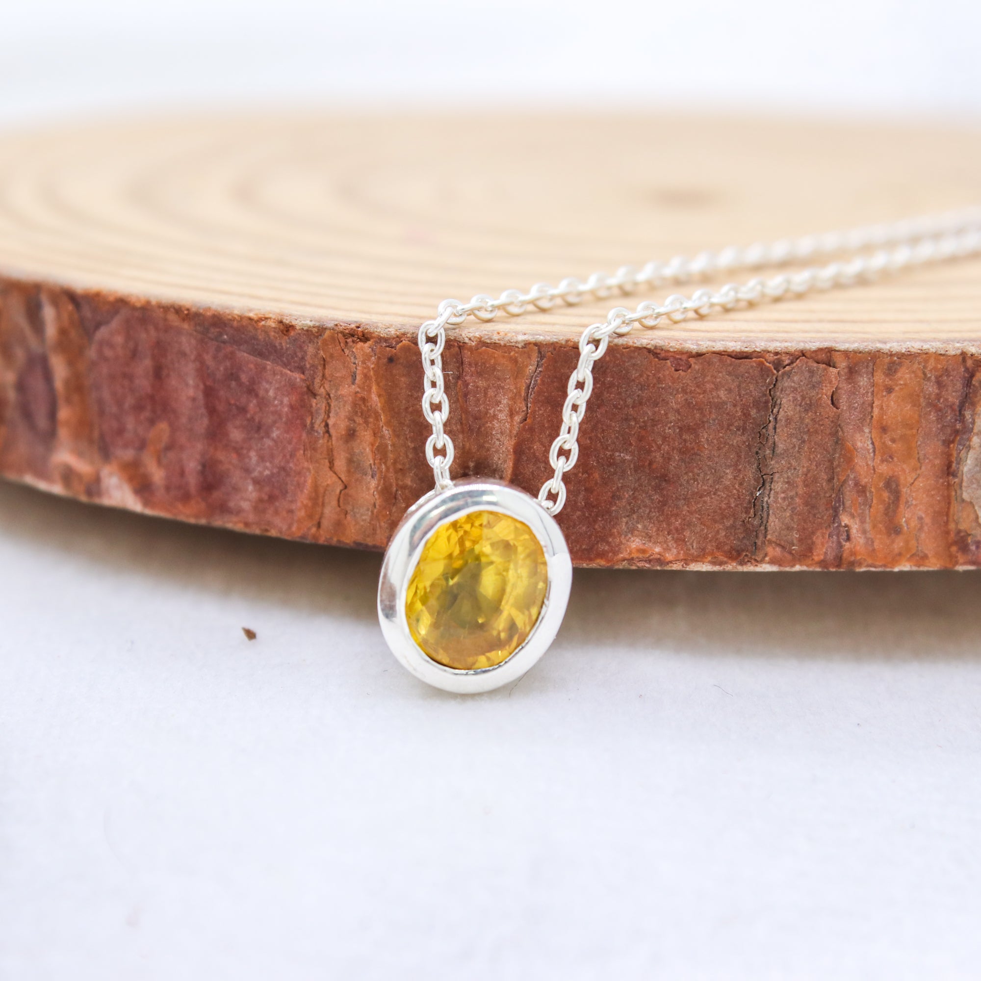 Natural Yellow Sapphire Oval Necklace in 925 Sterling Silver Minimal Bezel Gemstone Pendant