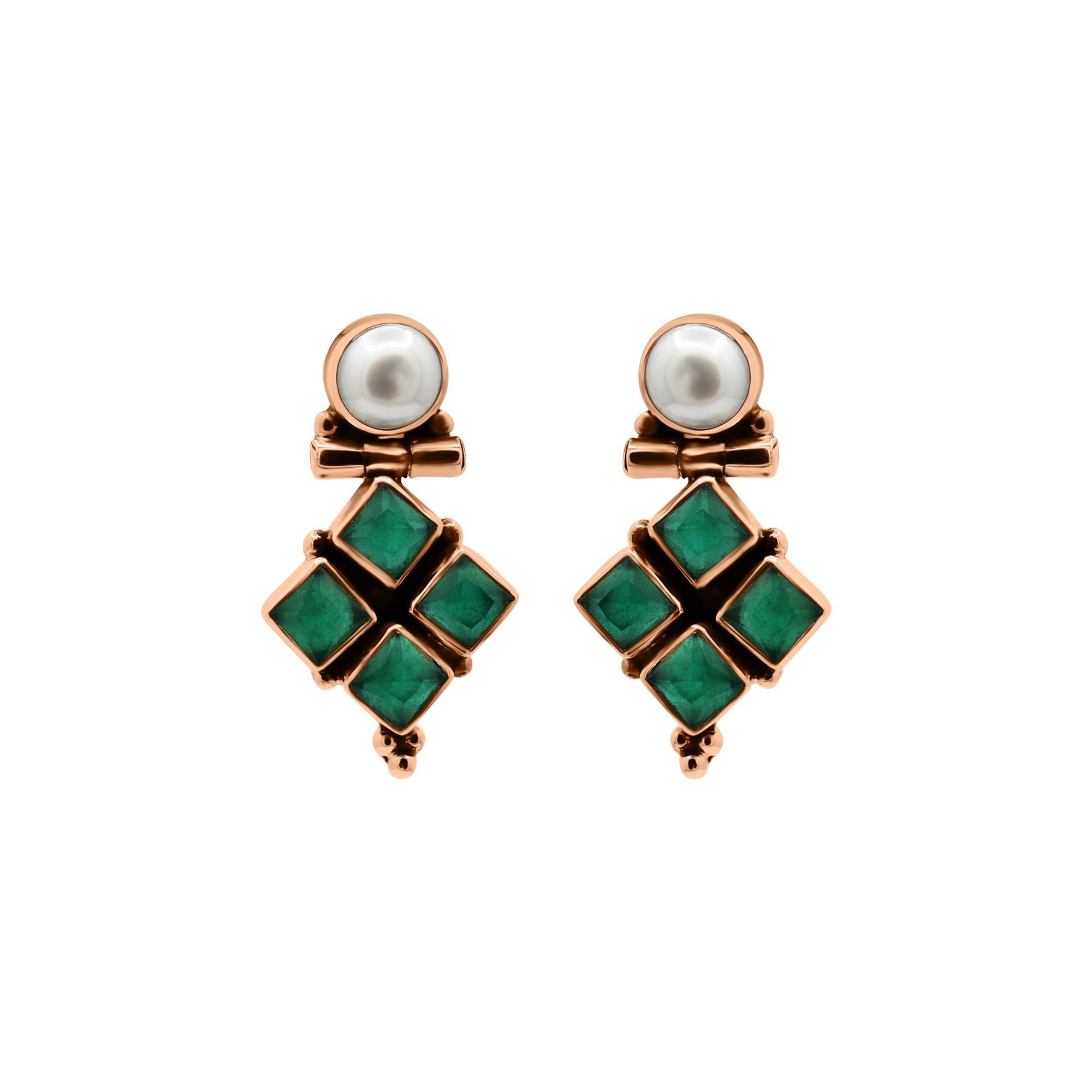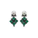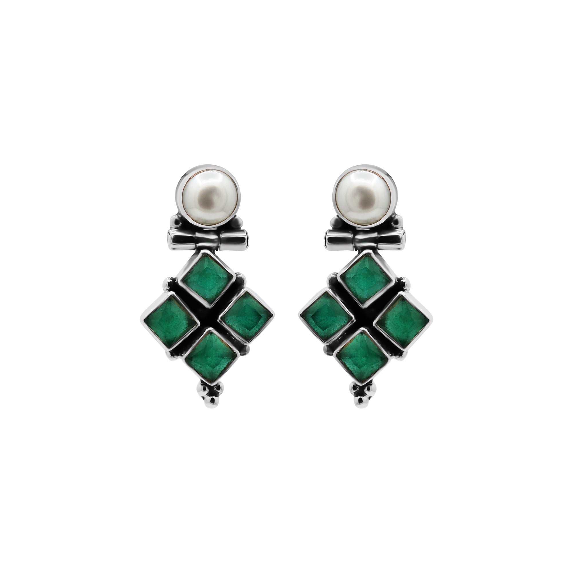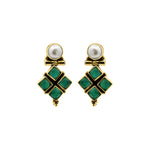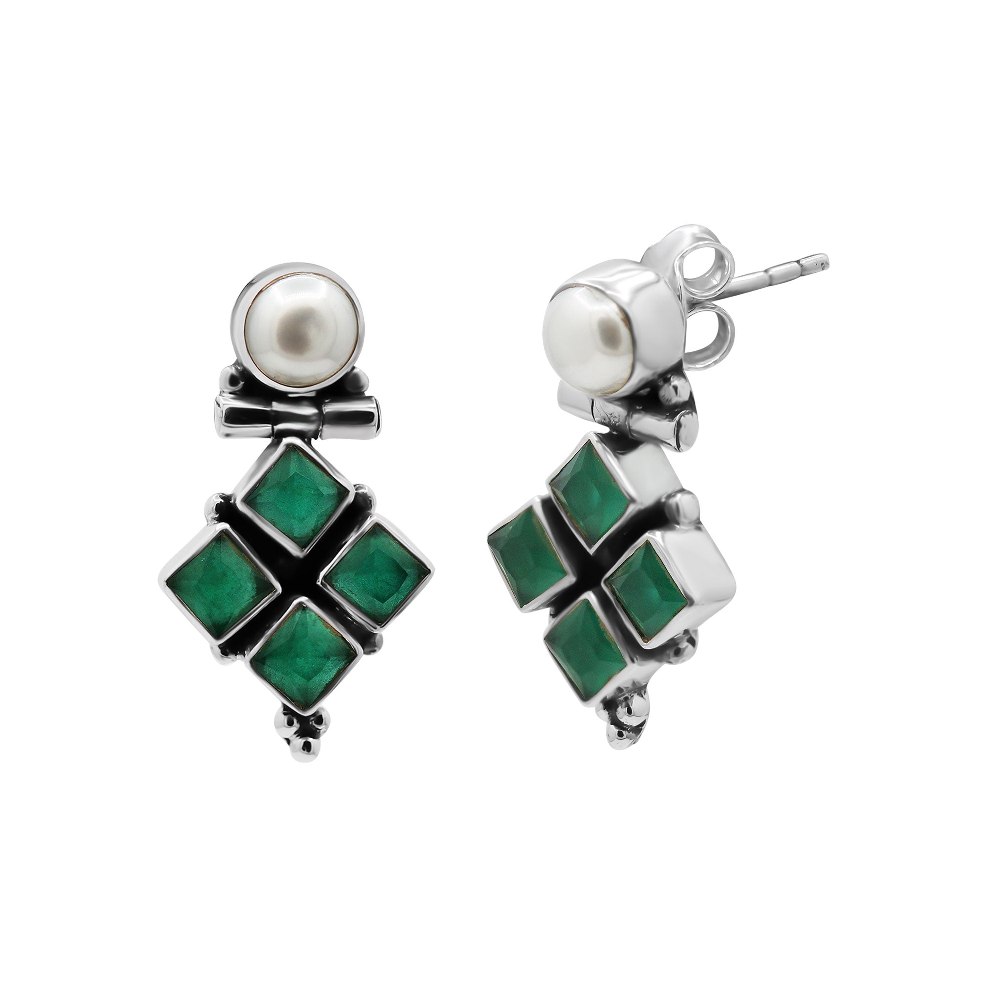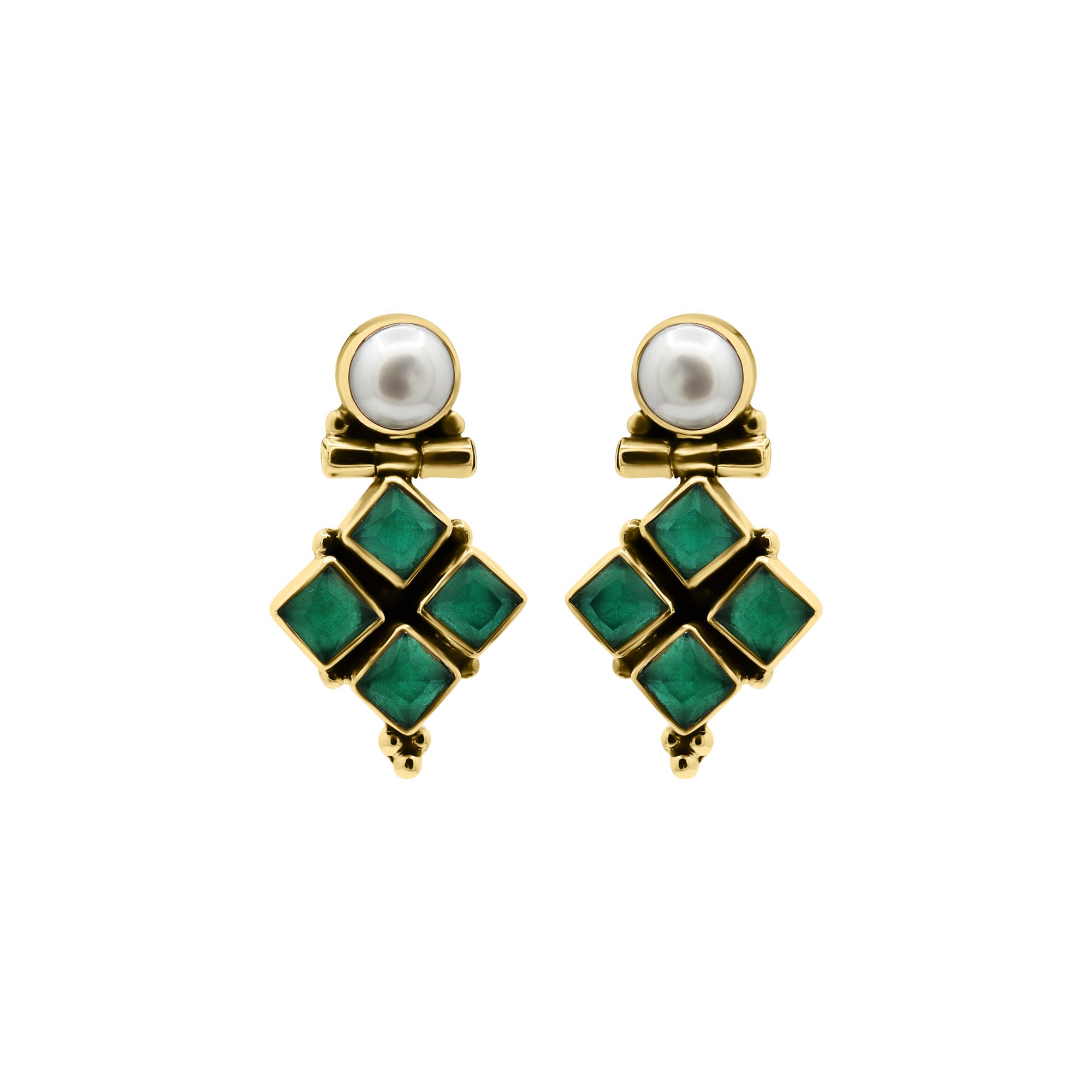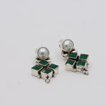 925 Silver Green Onyx and Pearl Gold Plated Designer Earring