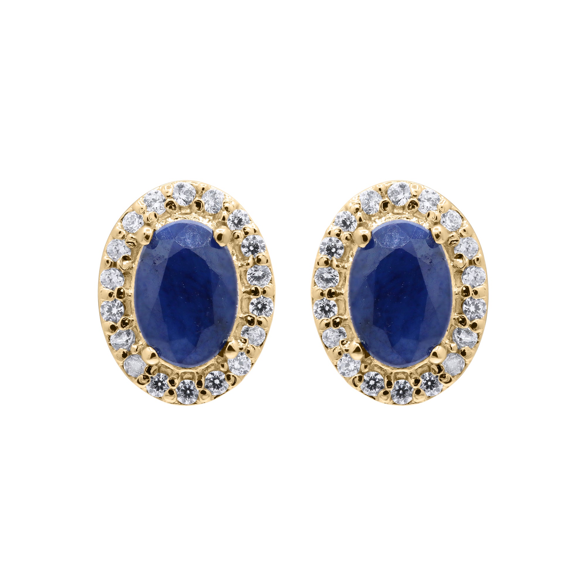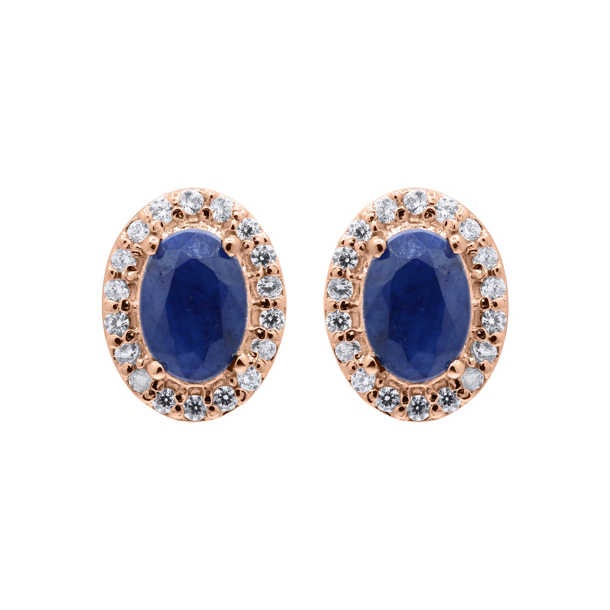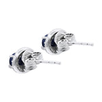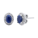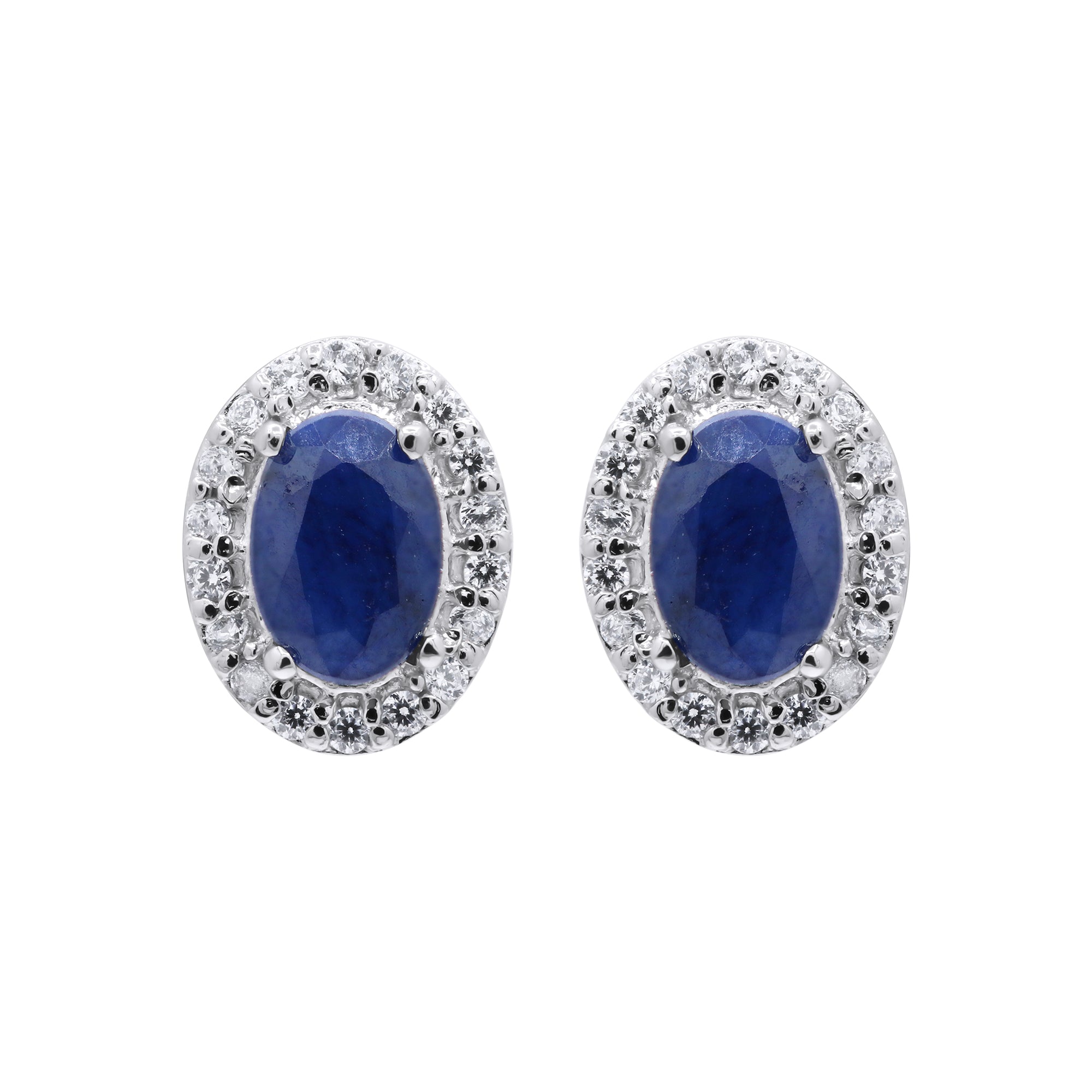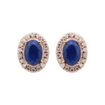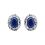 Natural Blue Sapphire Gemstone And Cubic Zircon 925 Sterling Silver Oval Shaped Stud Earring