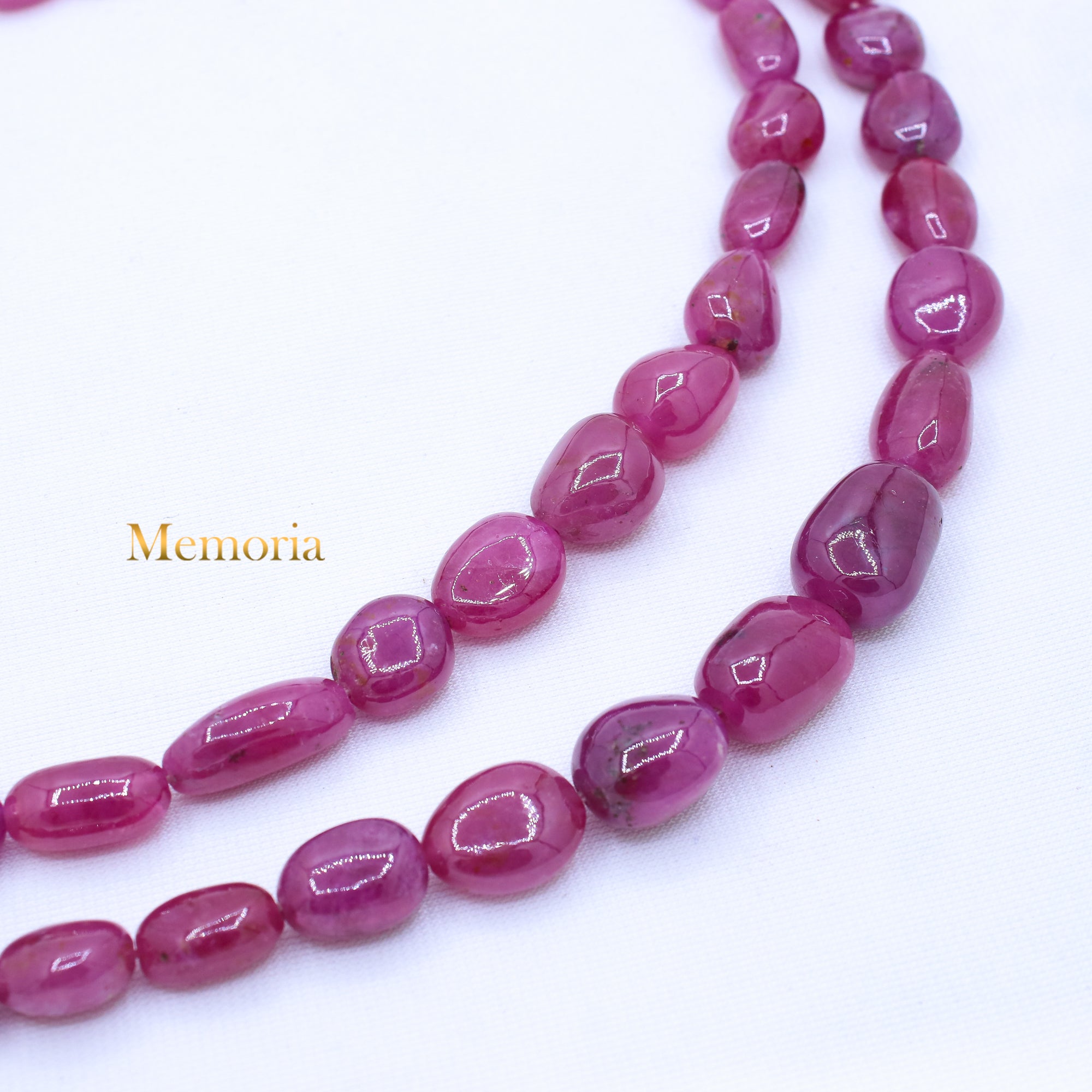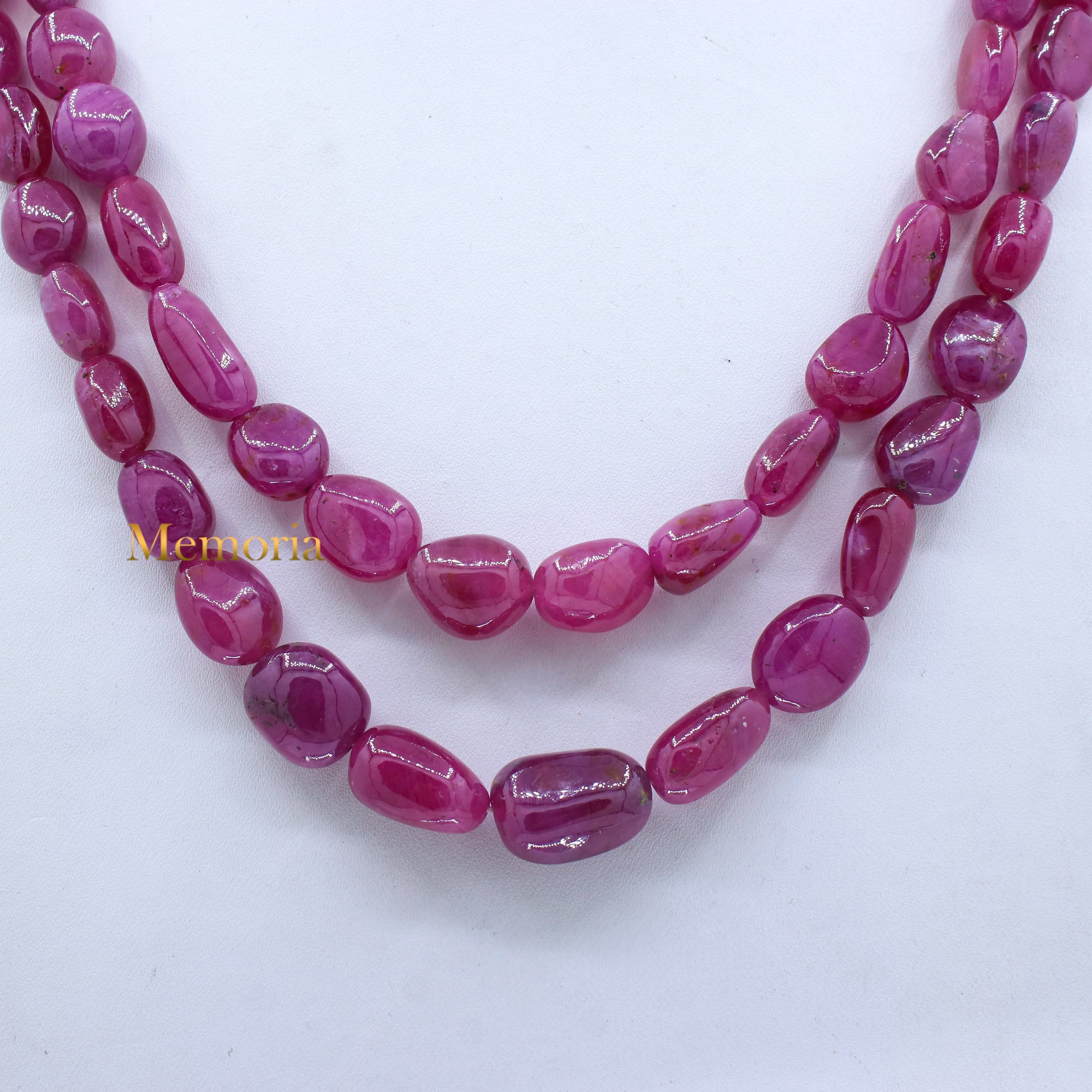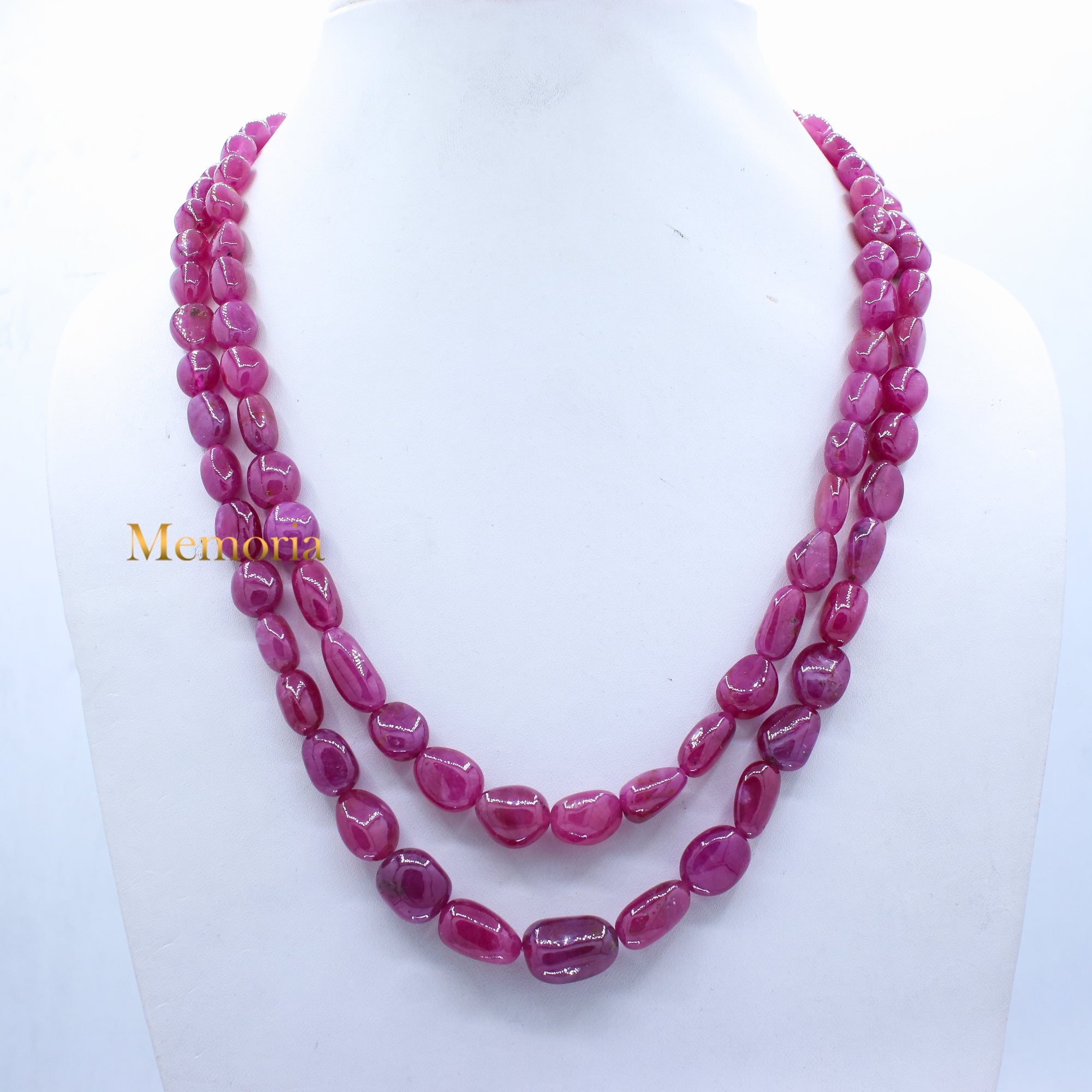 Certified 2 Line Natural Ruby Oval Cabochon Spiritual Healing Gemstone Beads Strand Necklace
