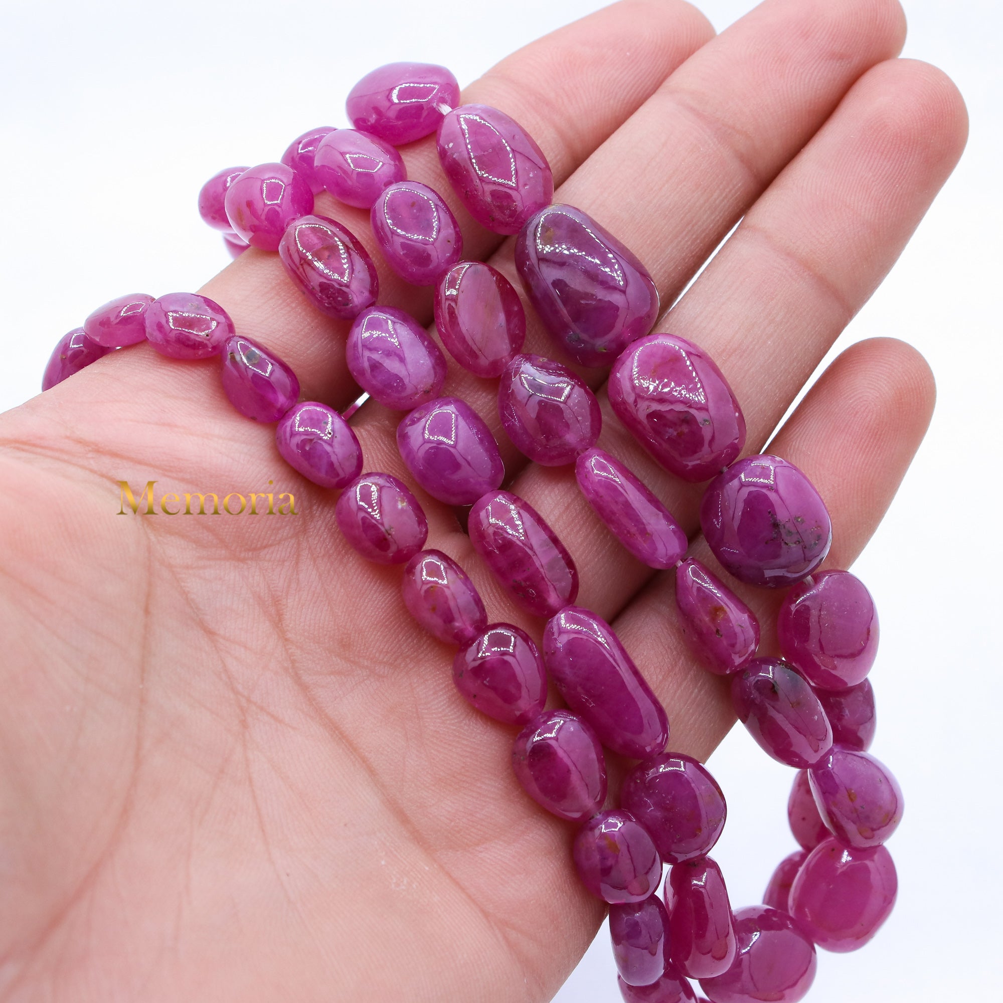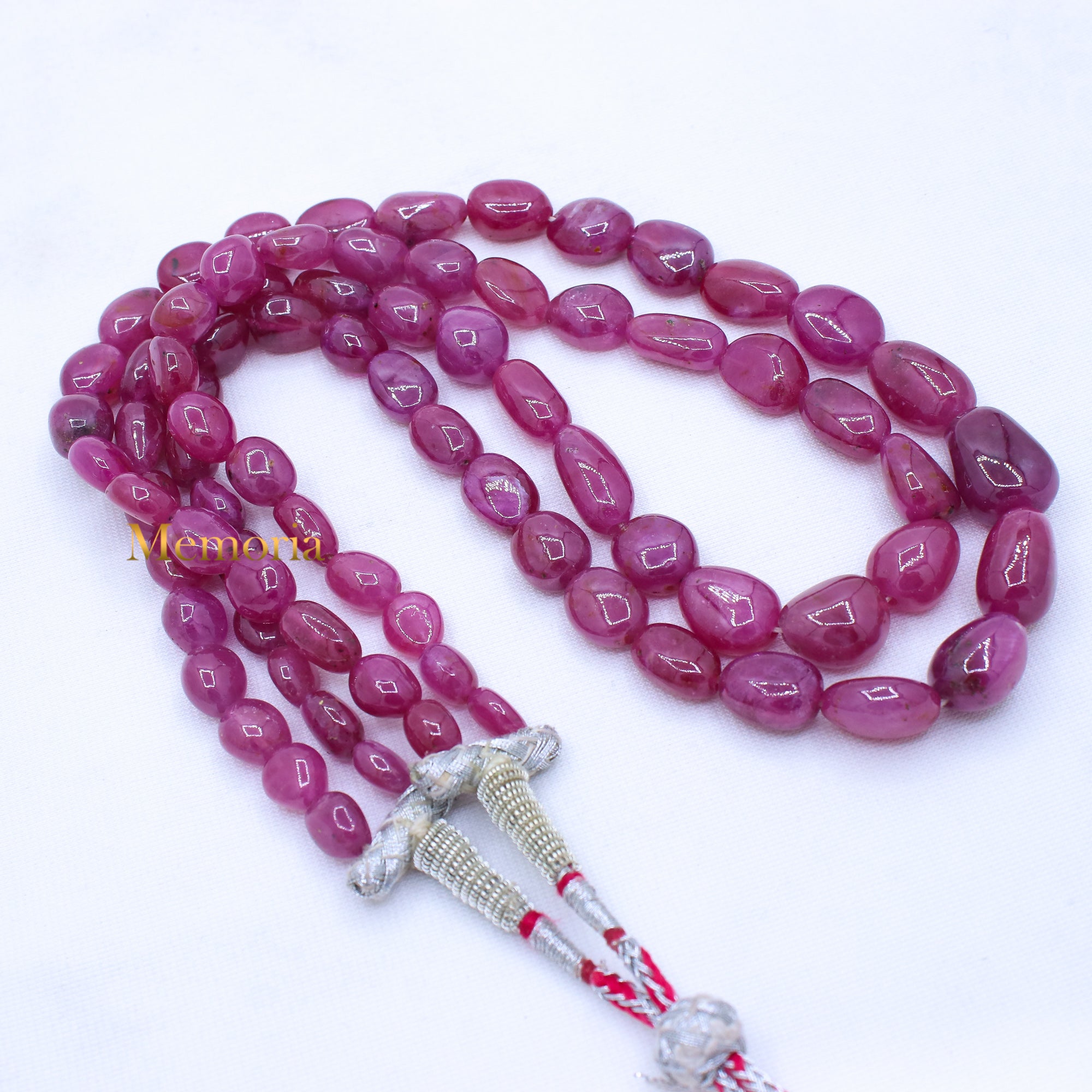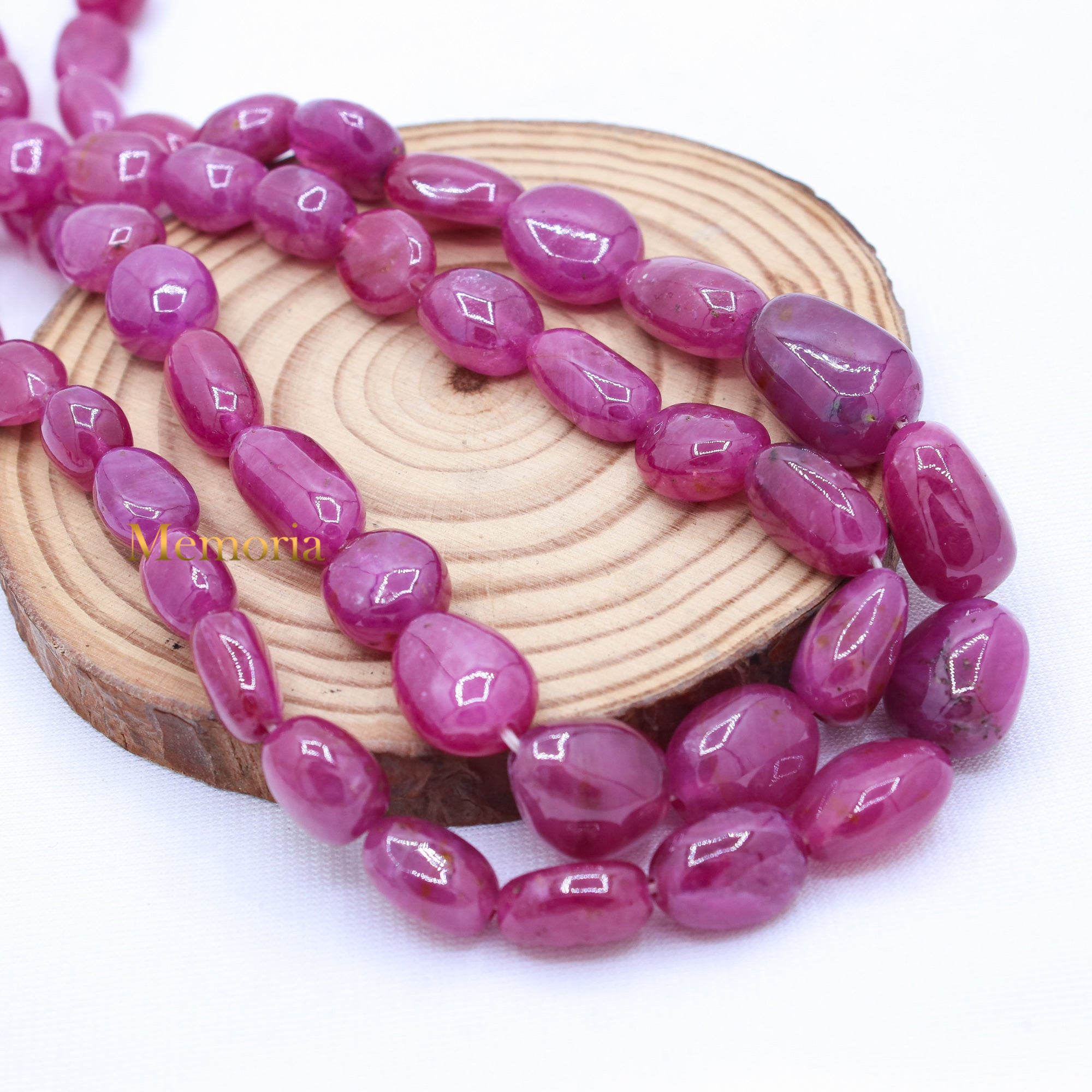 Certified 2 Line Natural Ruby Oval Cabochon Spiritual Healing Gemstone Beads Strand Necklace