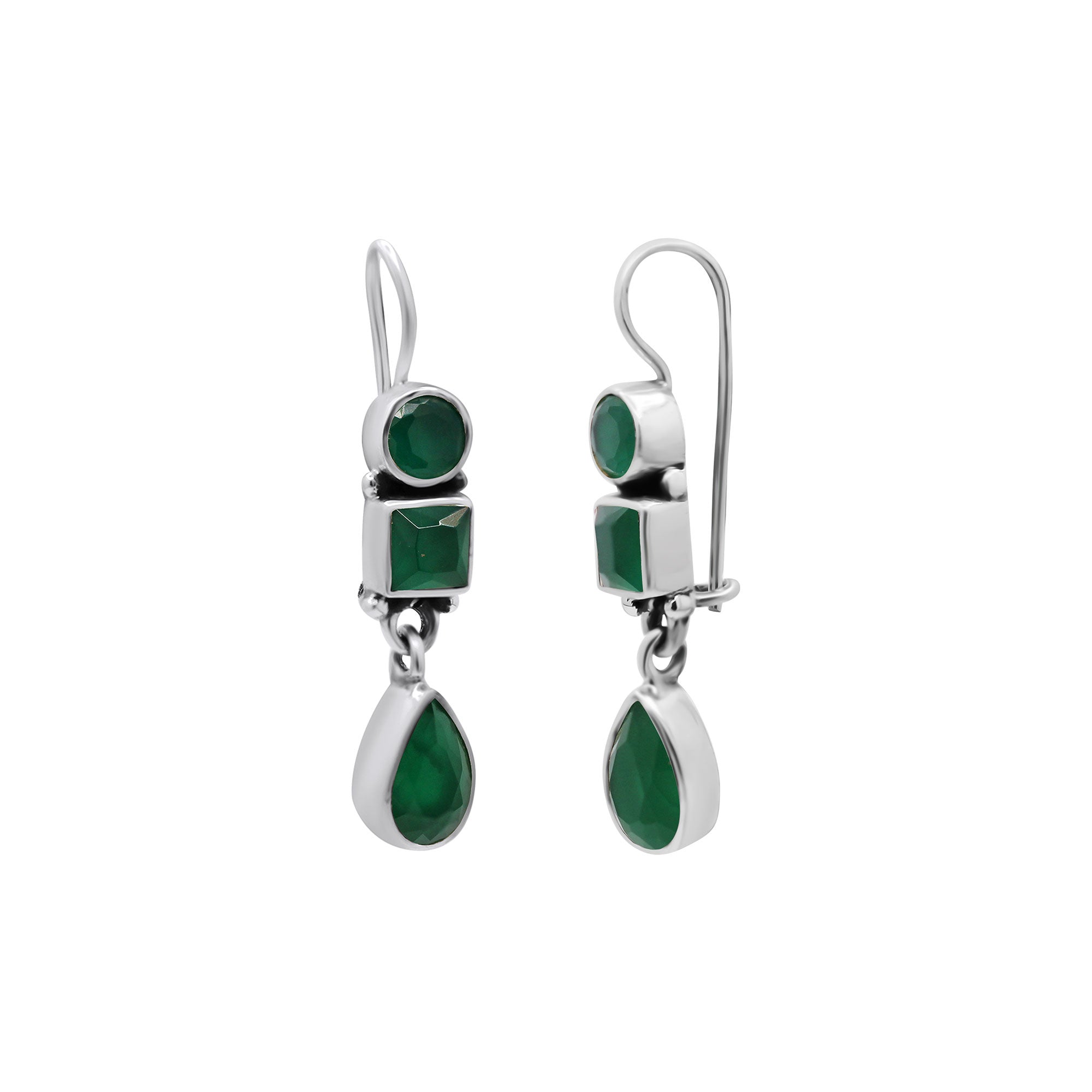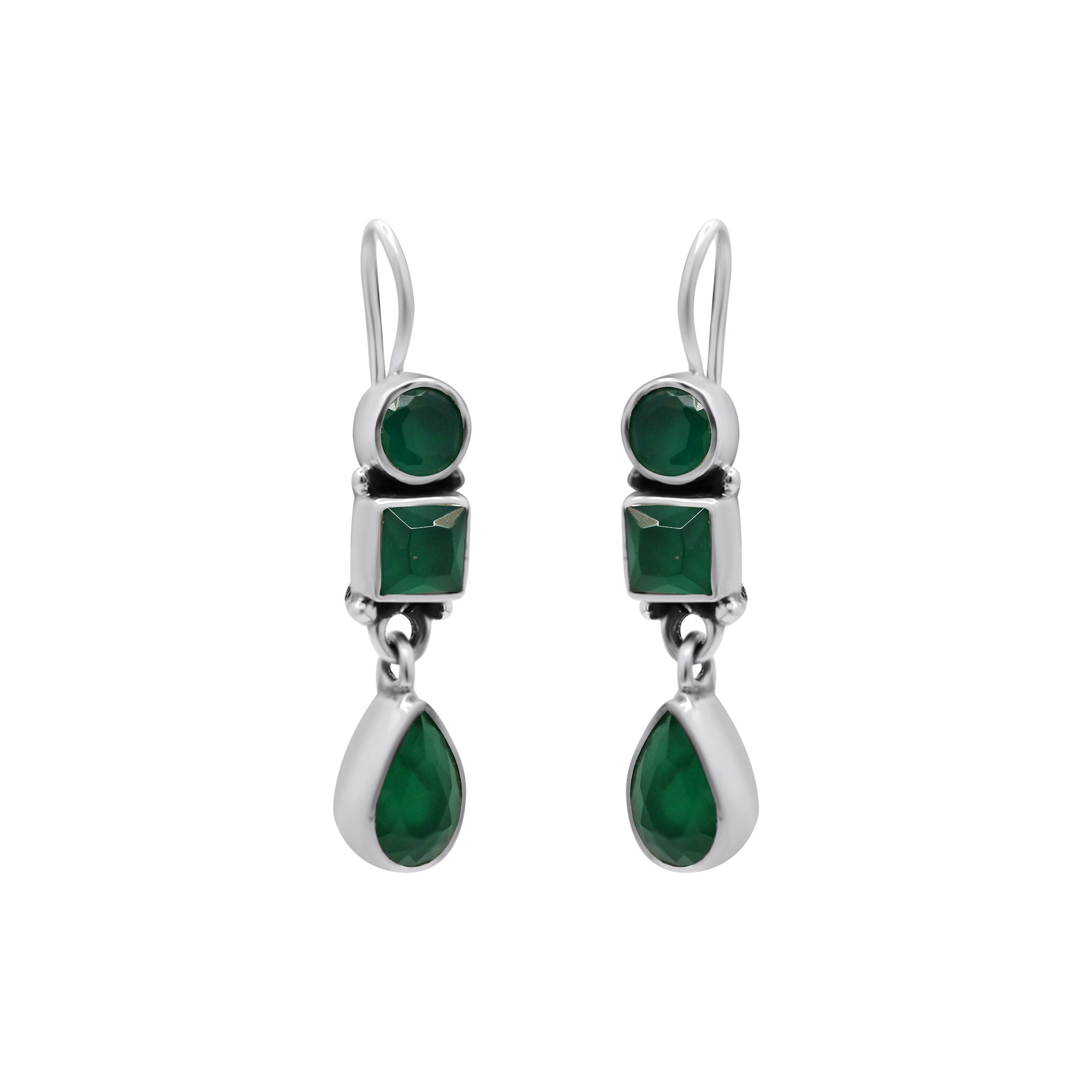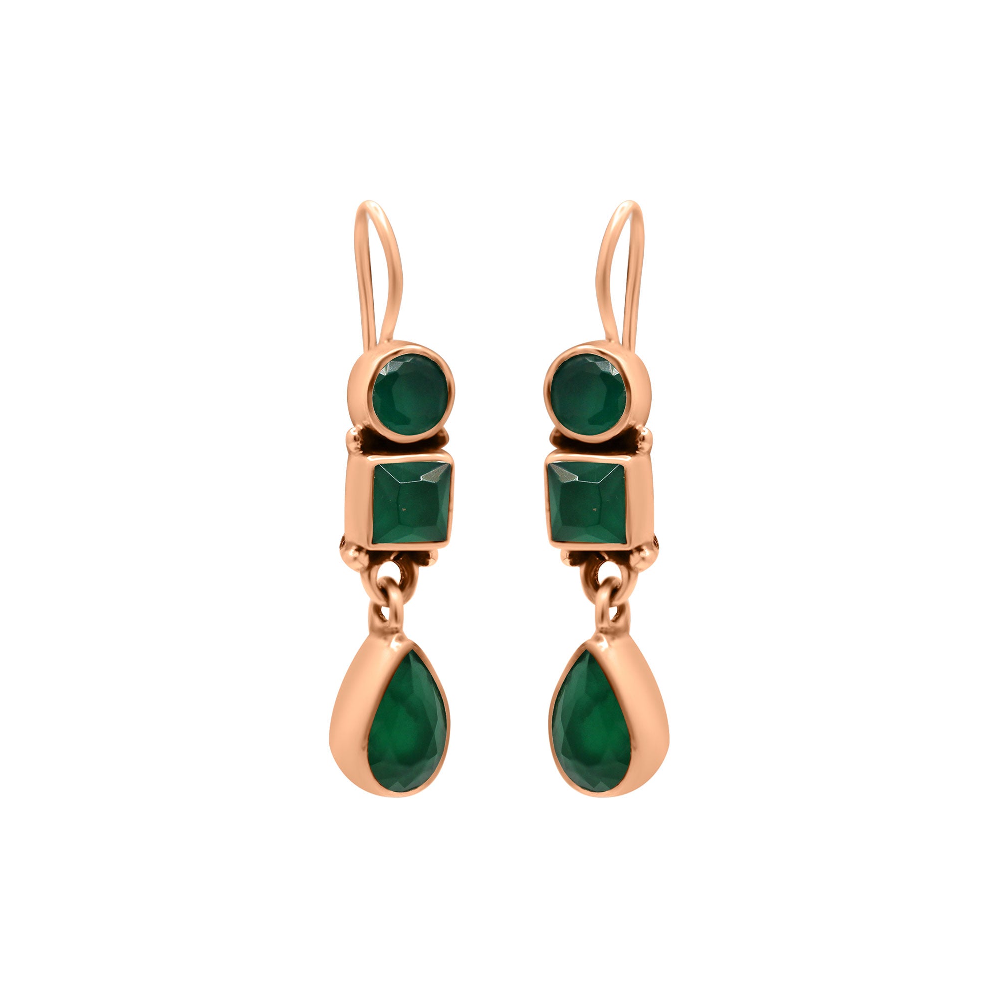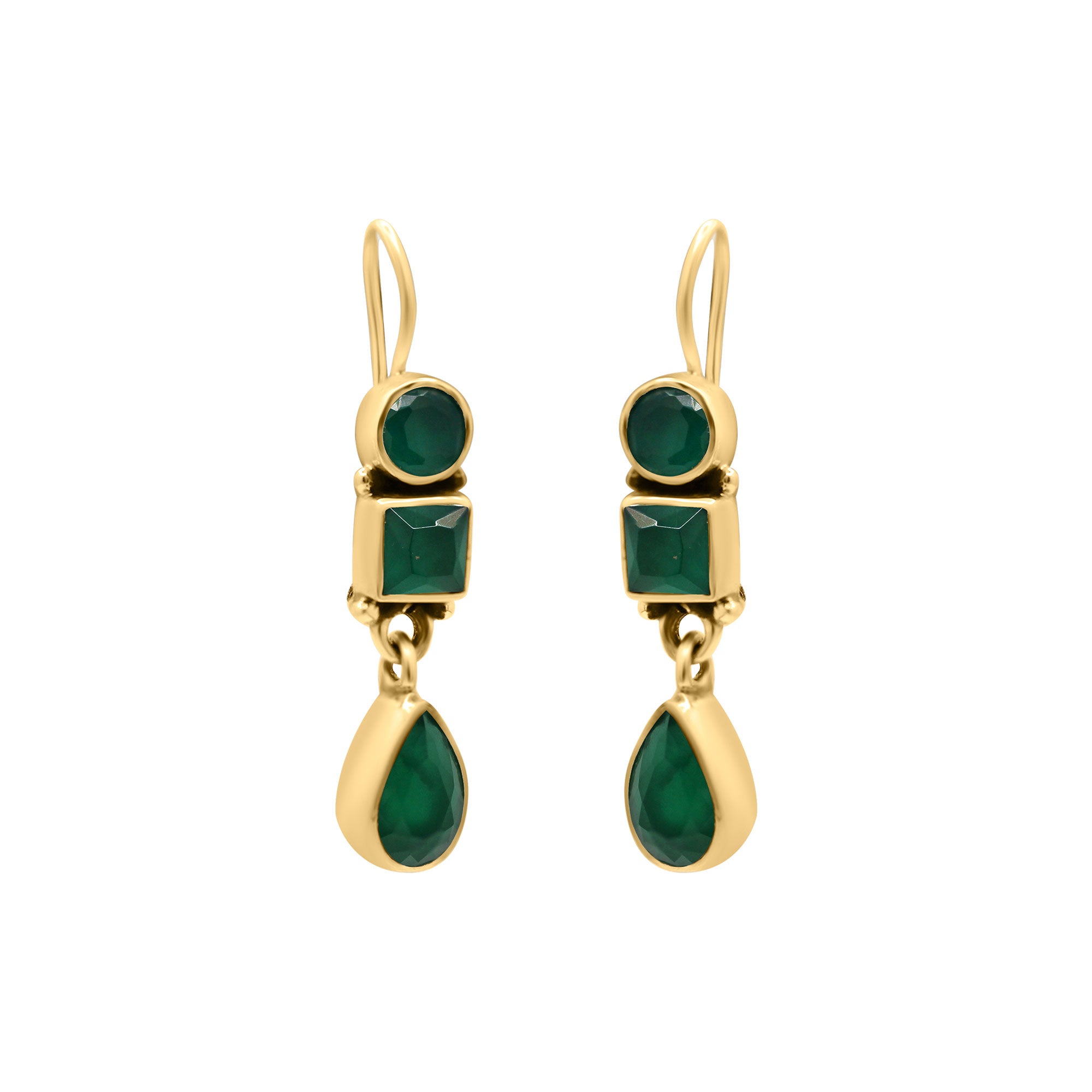 Natural Green Onyx Gemstone 925 Sterling Silver Gold Plated Earring
