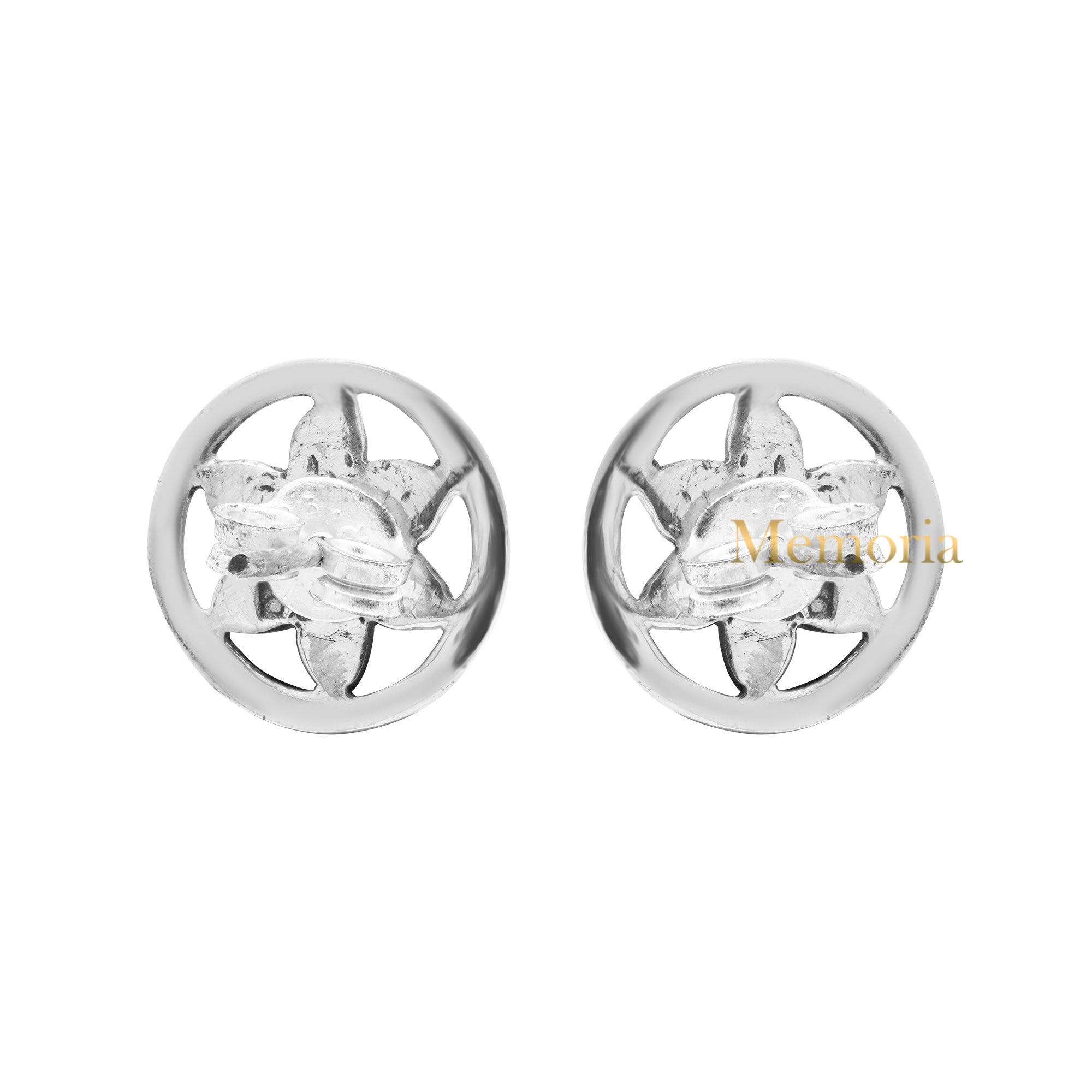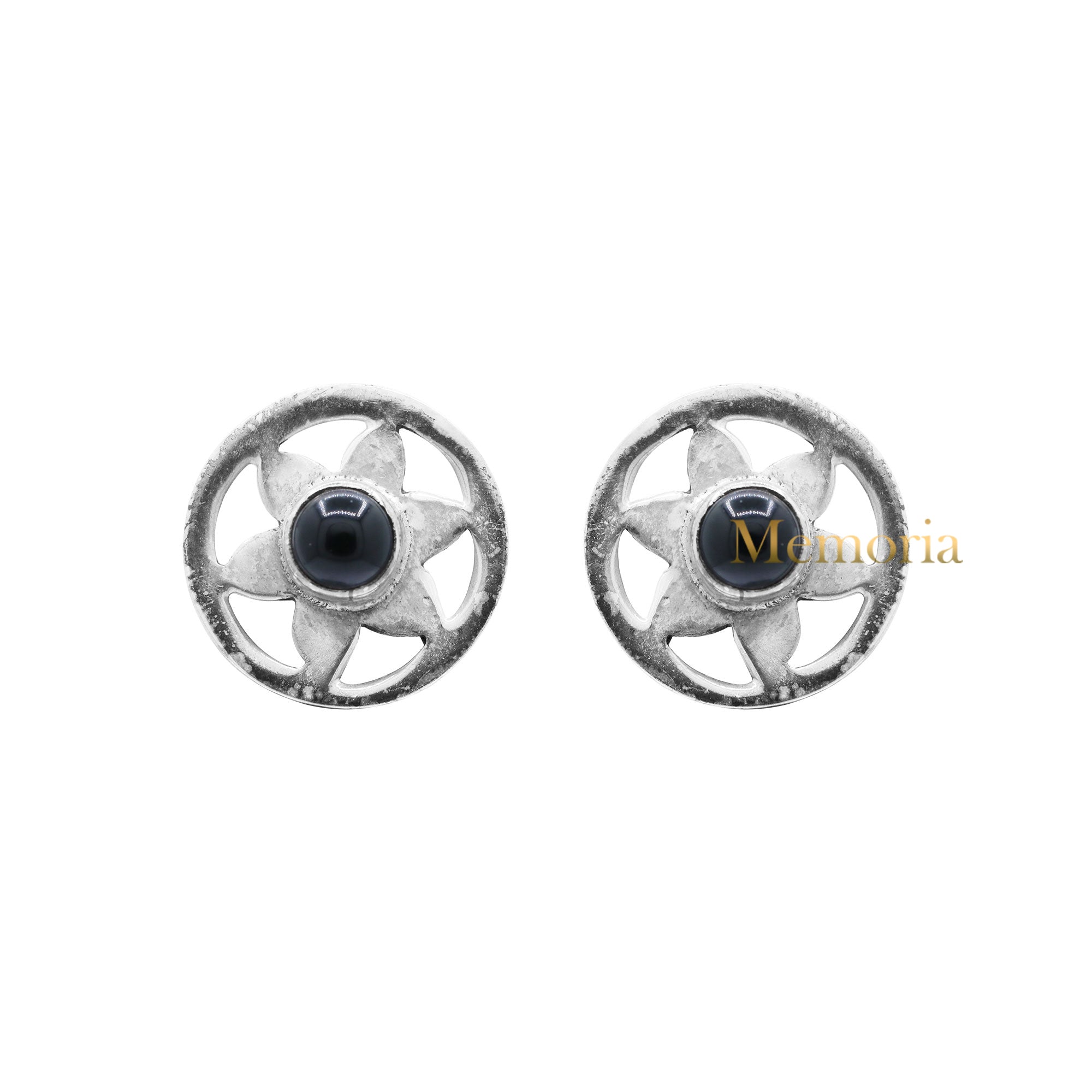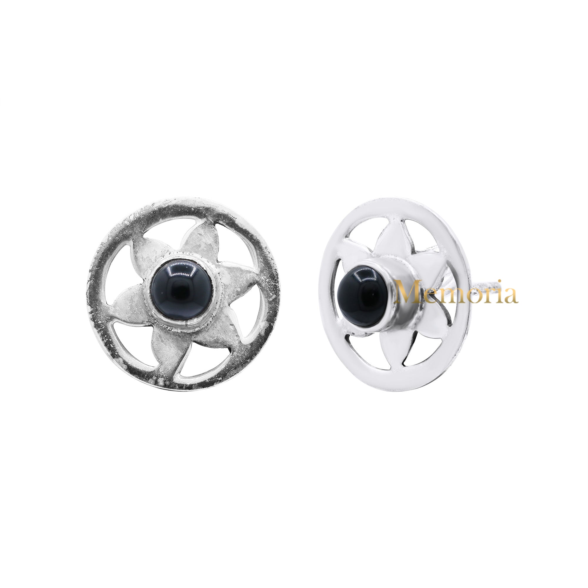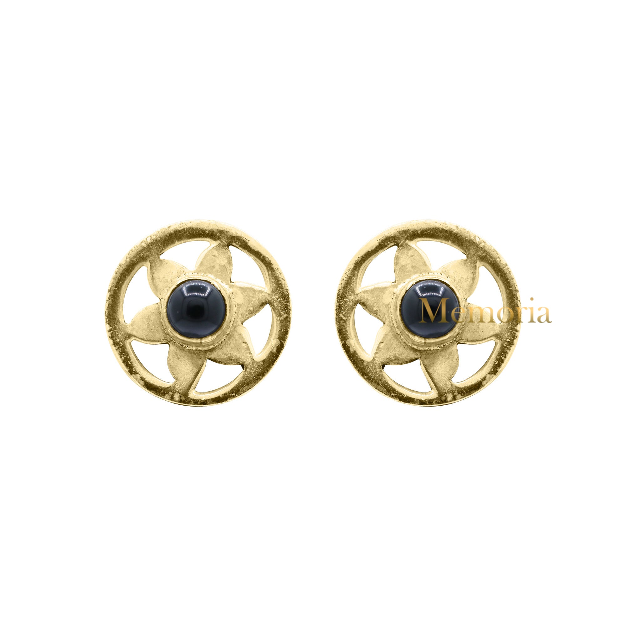 Flower Design Black Onyx Gemstone 925 Sterling Silver Gold Plated Stud Earring
