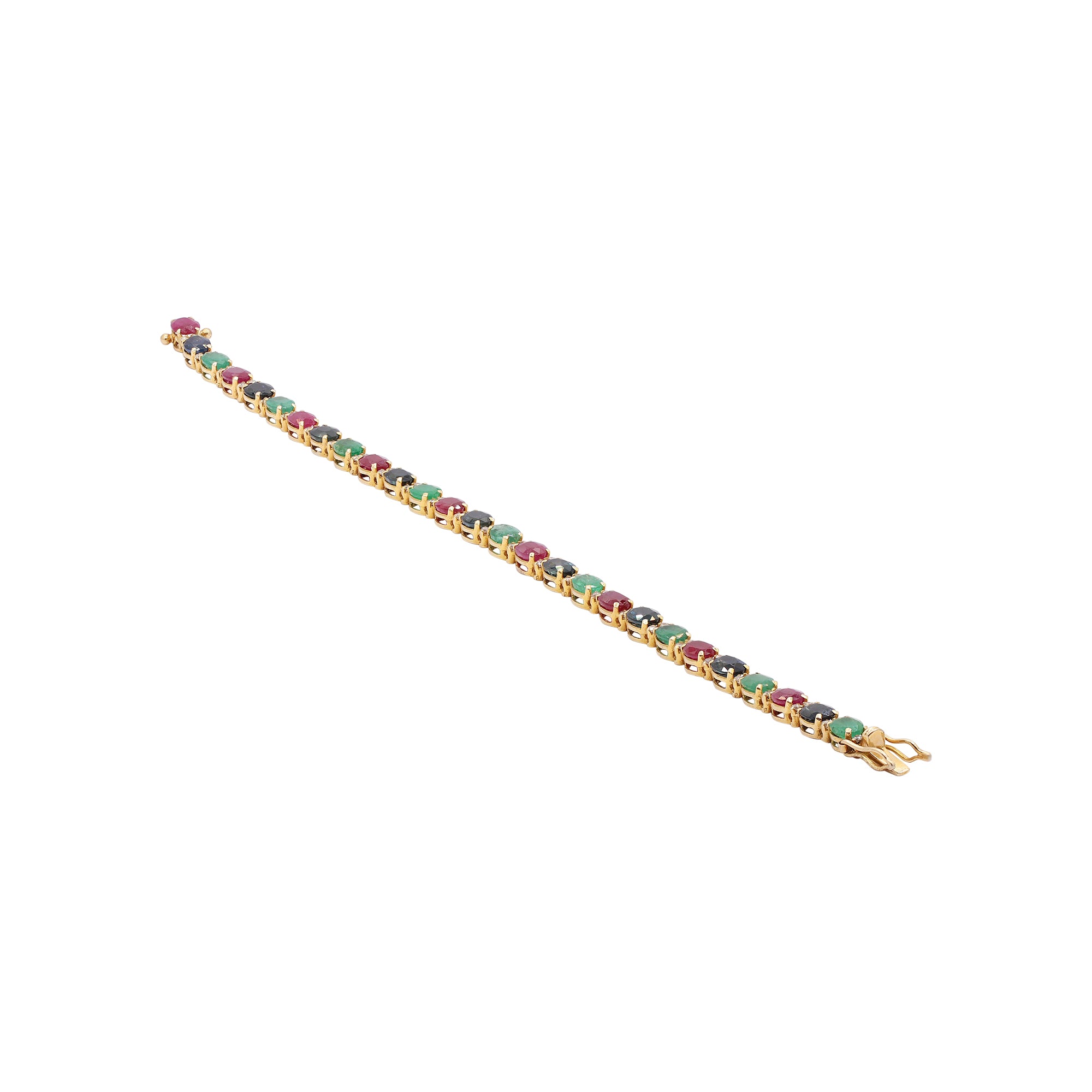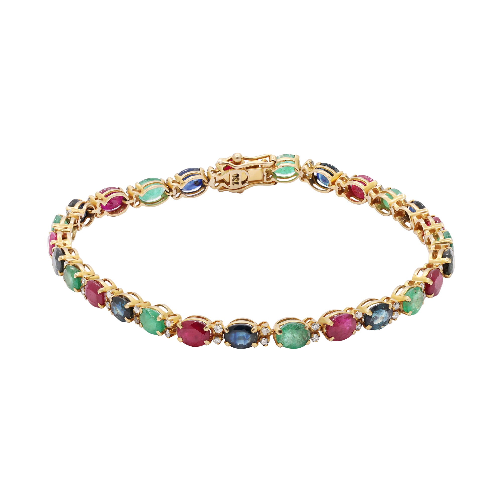 Natural Ruby, Emerald, Sapphire & Diamond 18k Yellow Gold Bracelet