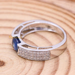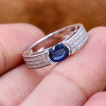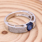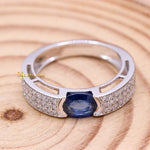 Natural Blue Sapphire Gemstone With Diamond 18k White Gold Band Ring