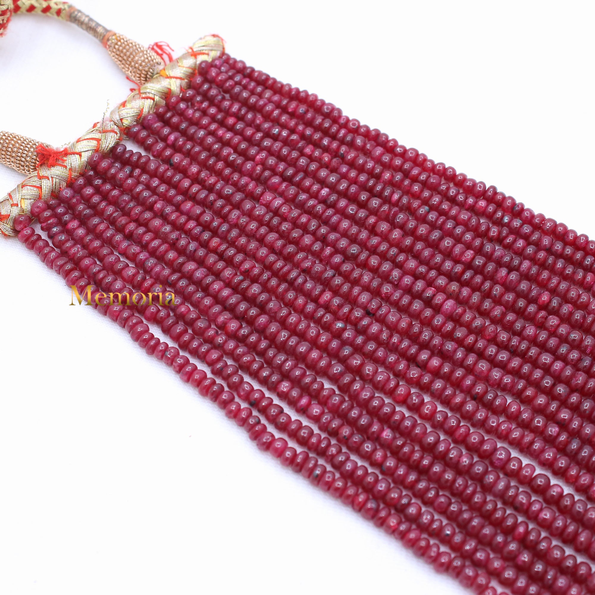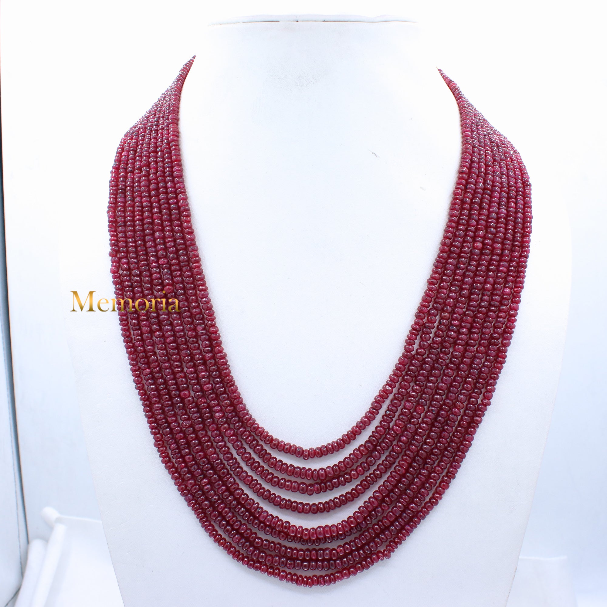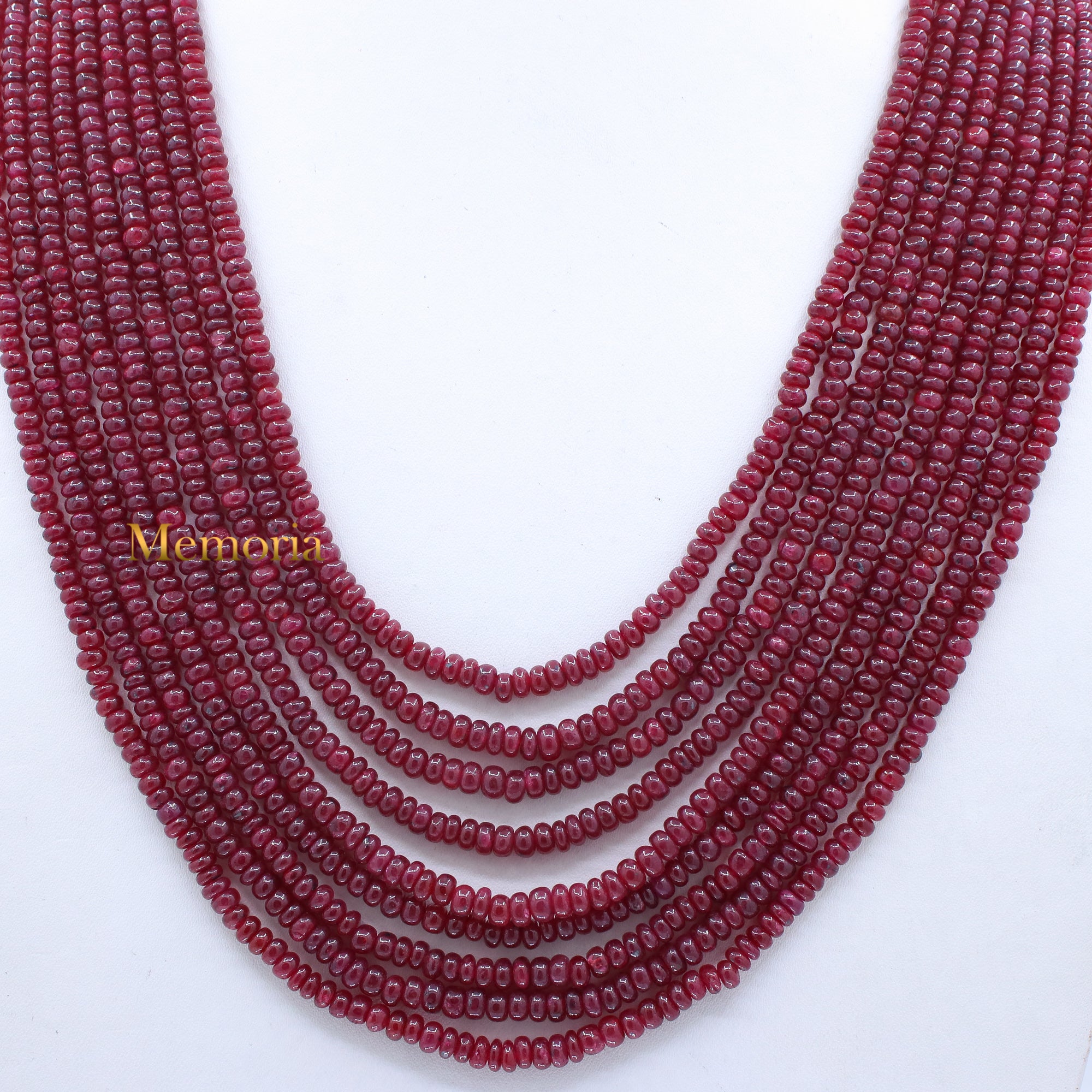 9 Line Round Smooth Shaped Natural Ruby Spiritual Healing Gemstone Beads Strand Necklace