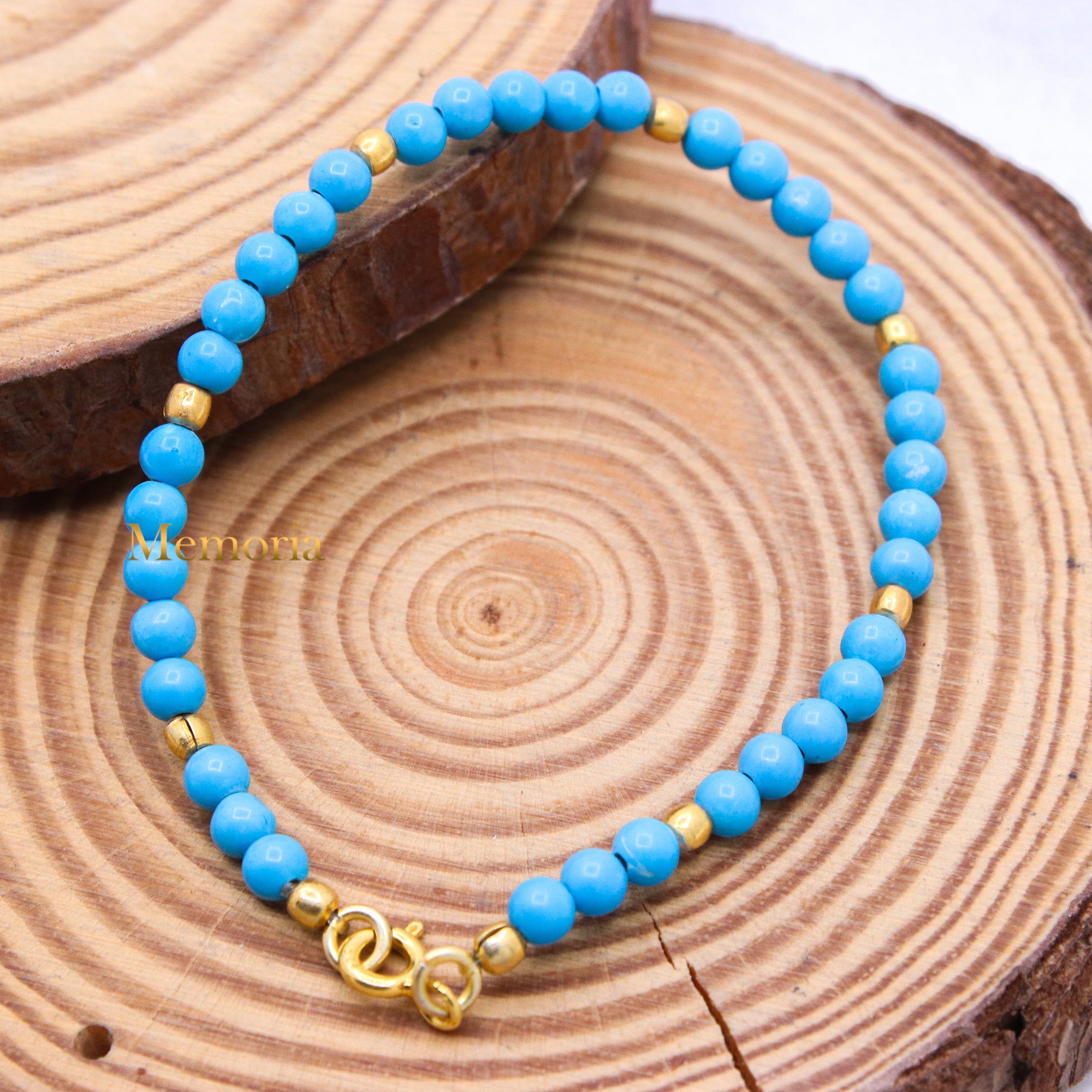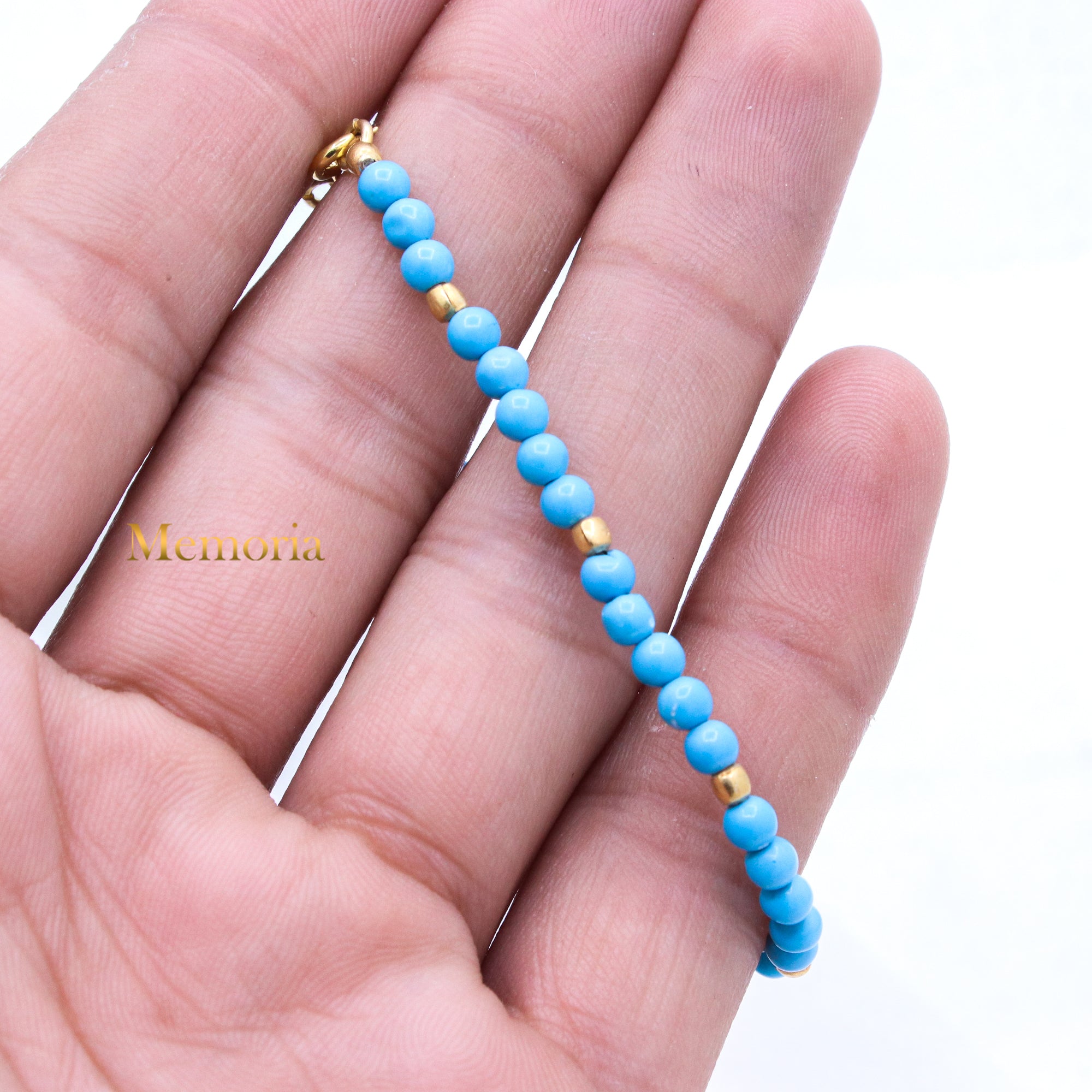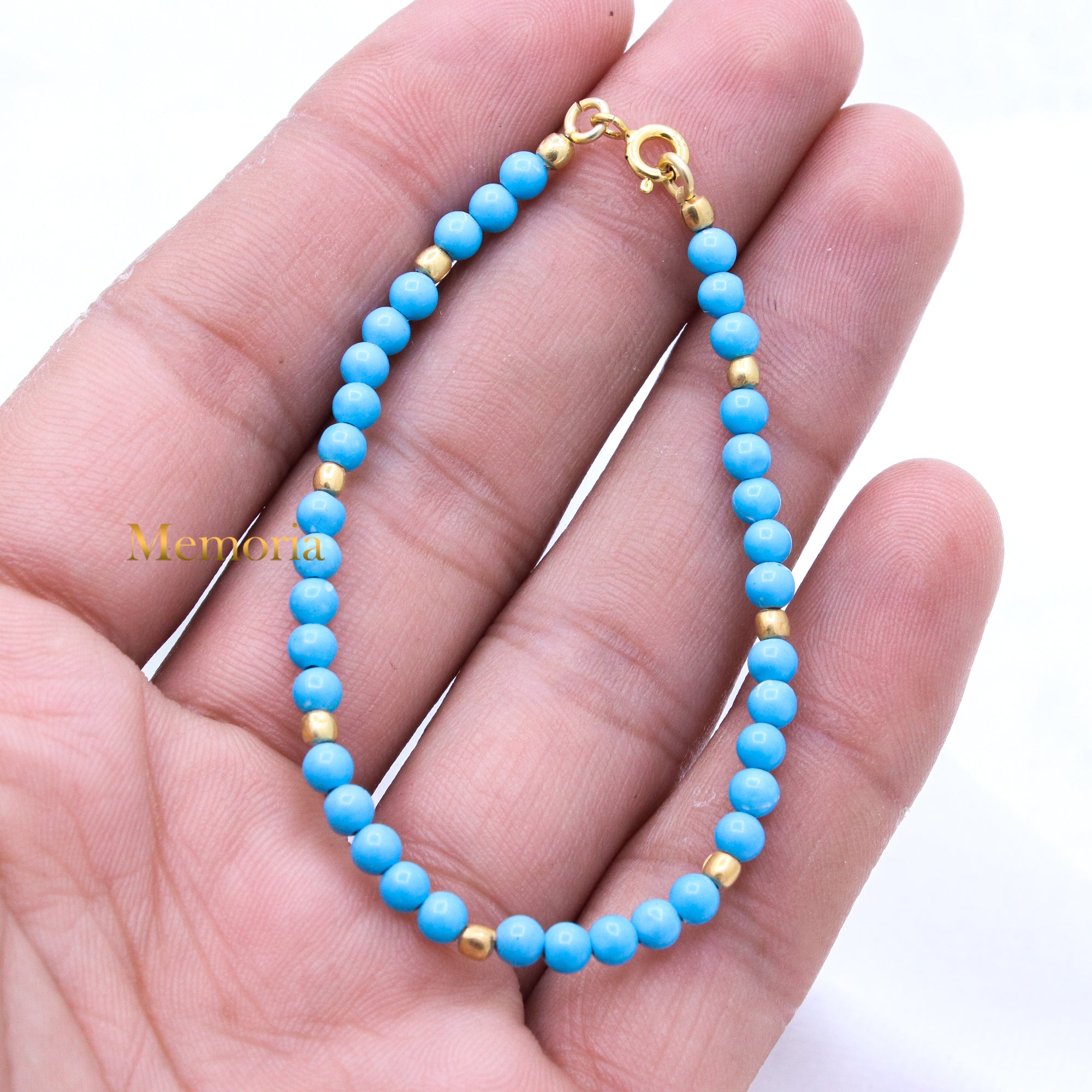 Buy Certified Handmade Natural Round Smooth Chakra Healing Turquoise Gemstone Beaded Silver Bracelet