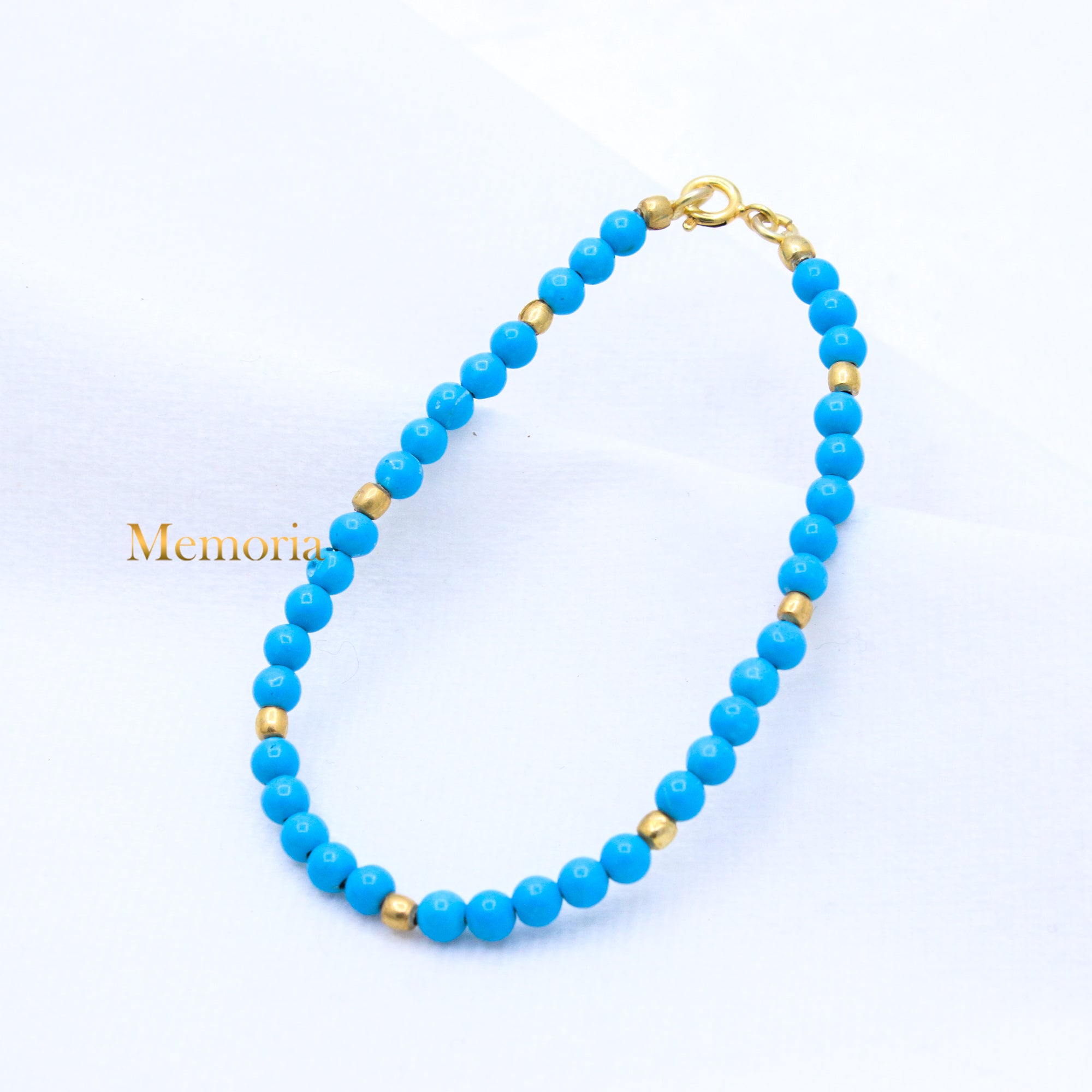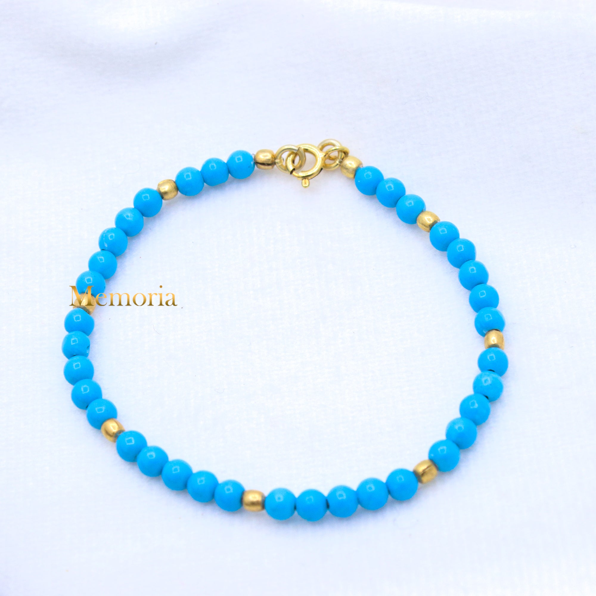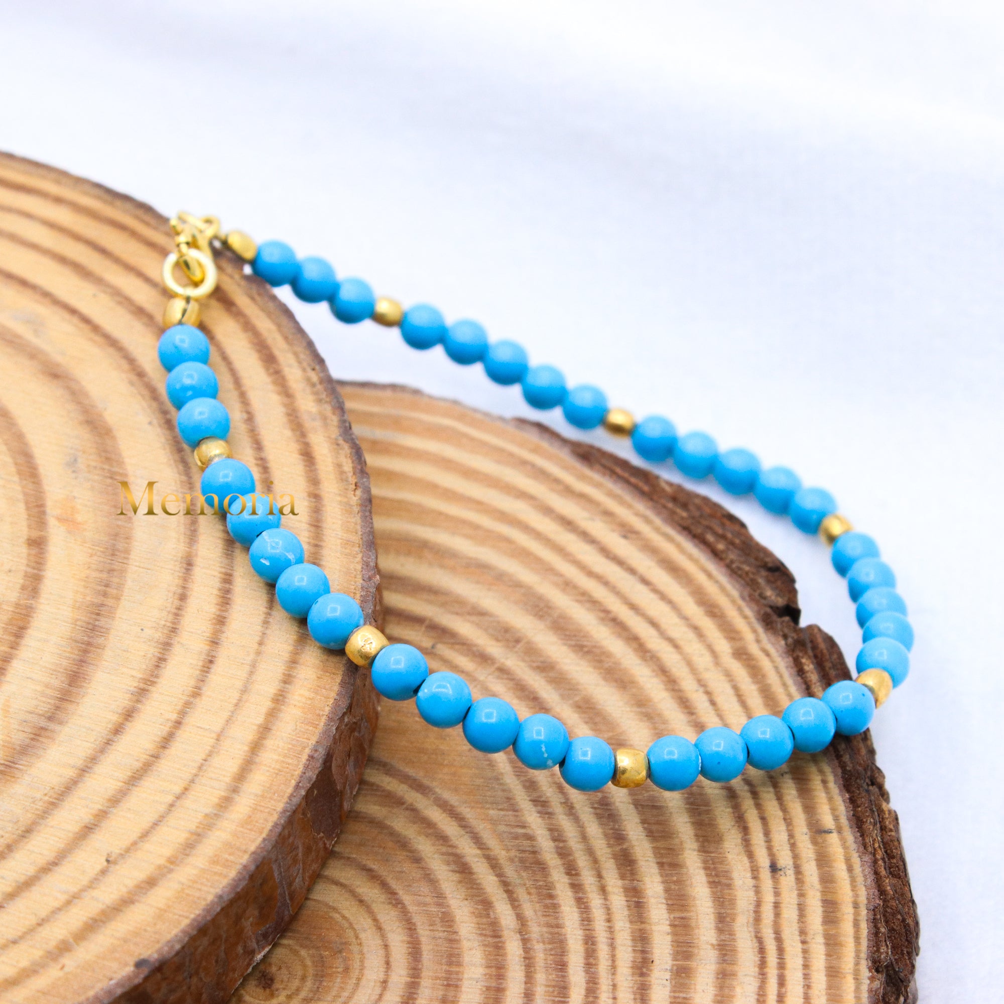 Buy Certified Handmade Natural Round Smooth Chakra Healing Turquoise Gemstone Beaded Silver Bracelet