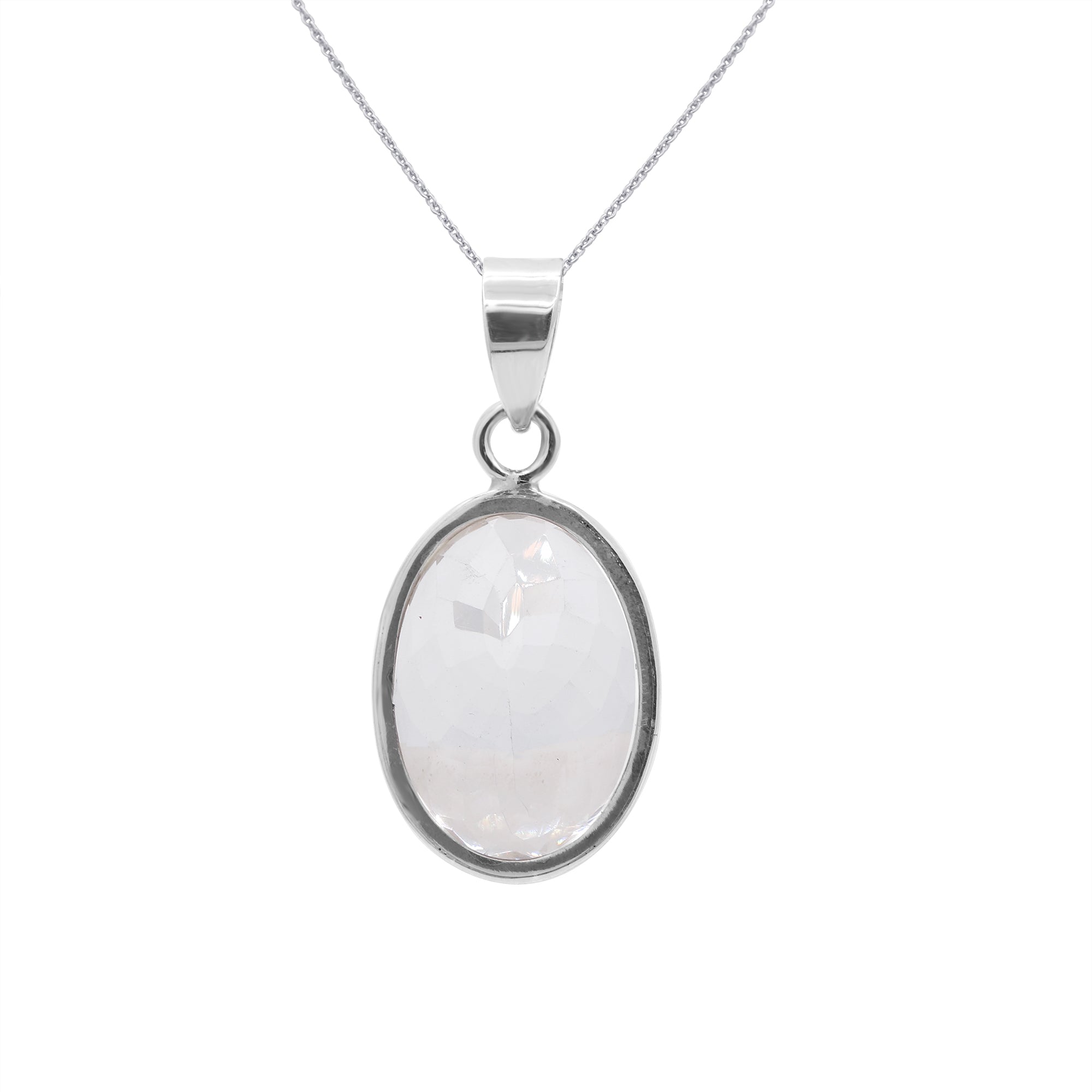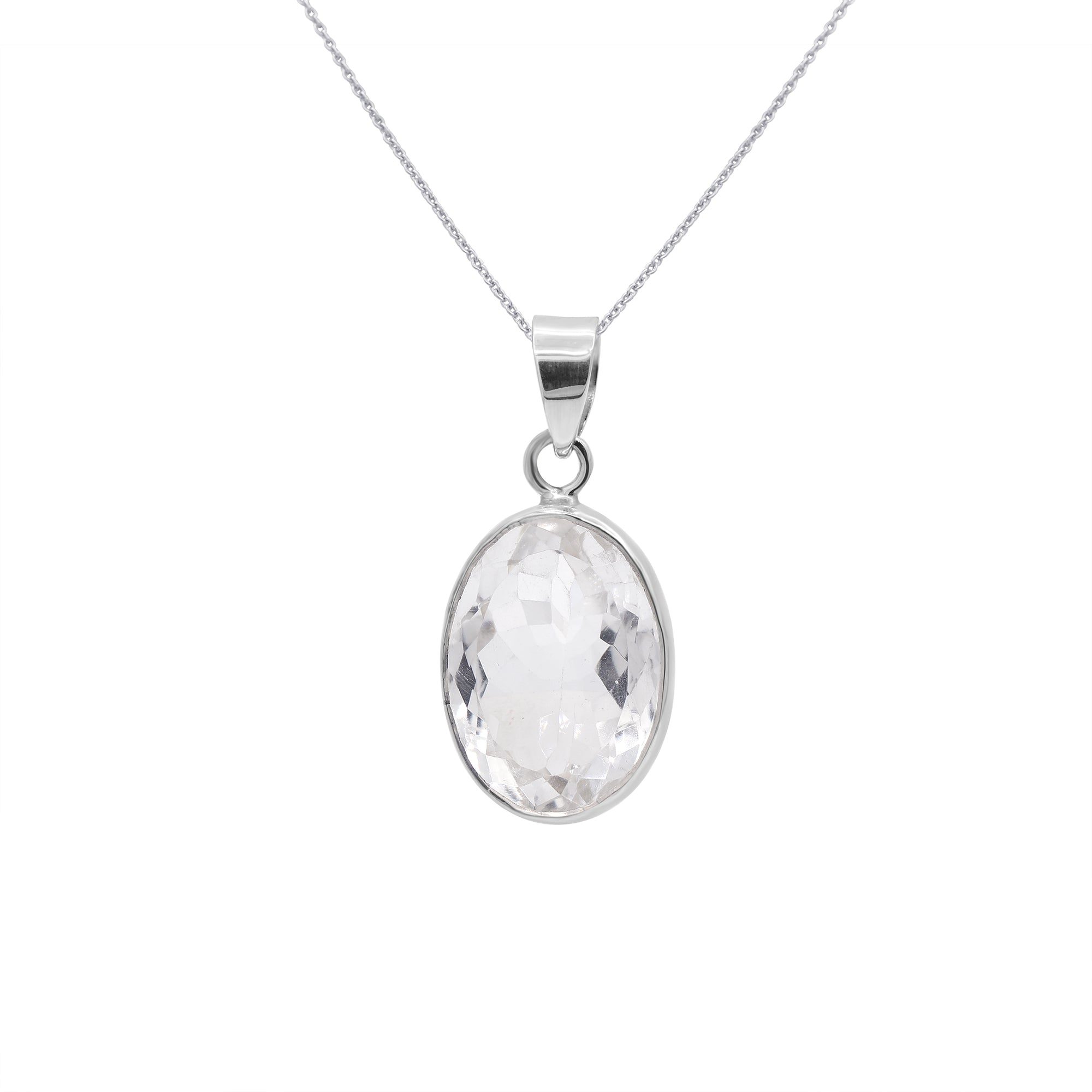 Bezel Set Natural White Topaz Oval Shaped Gemstone Pendant Jewelry For Her
