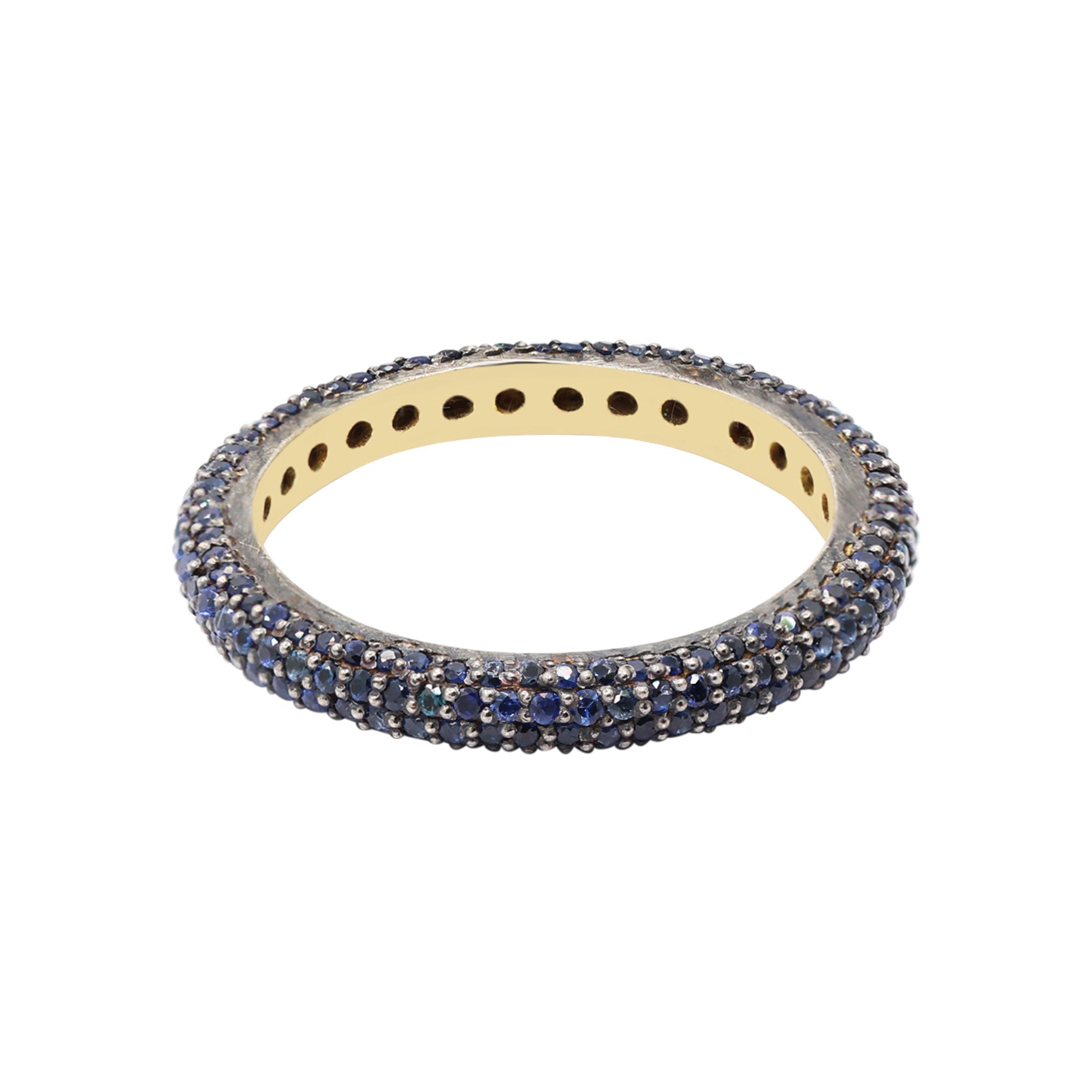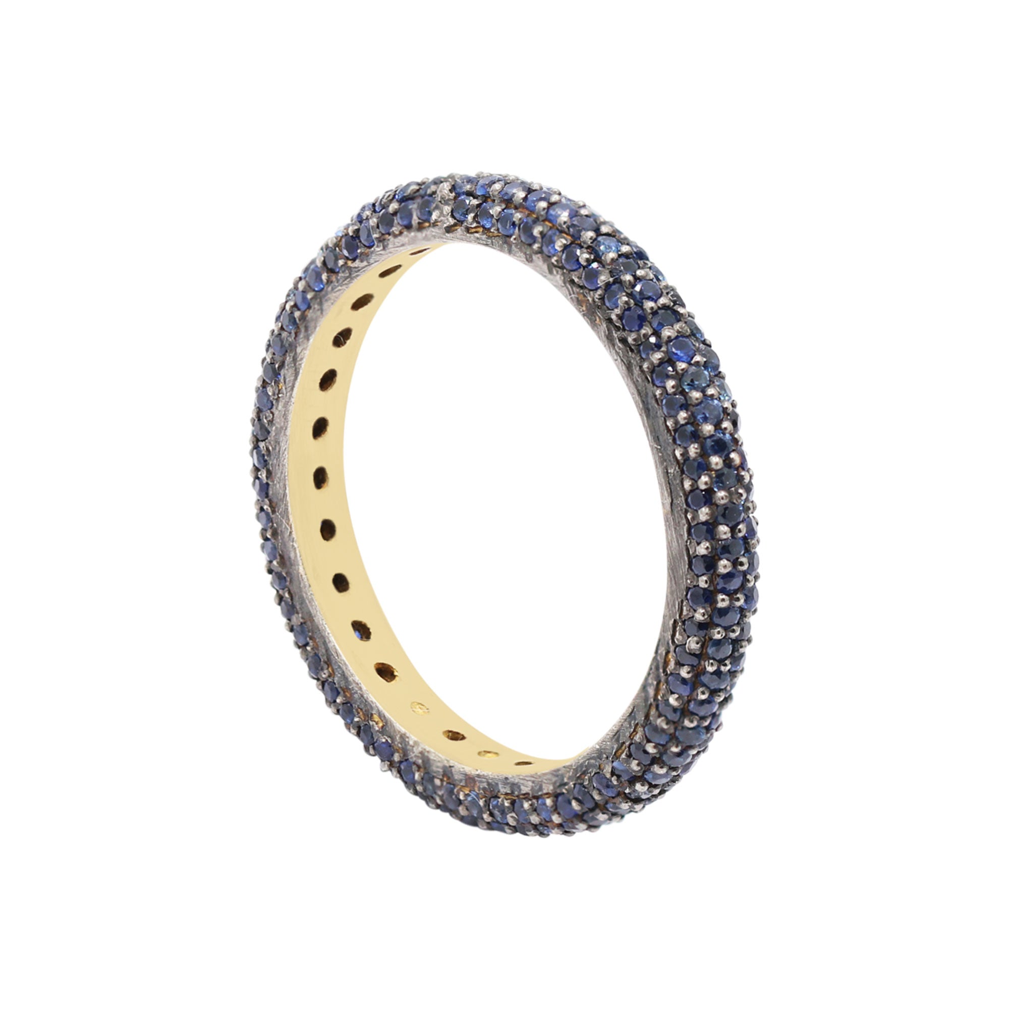 Natural Blue Sapphire Gemstone 925 Sterling Silver Gold Plated Band Ring