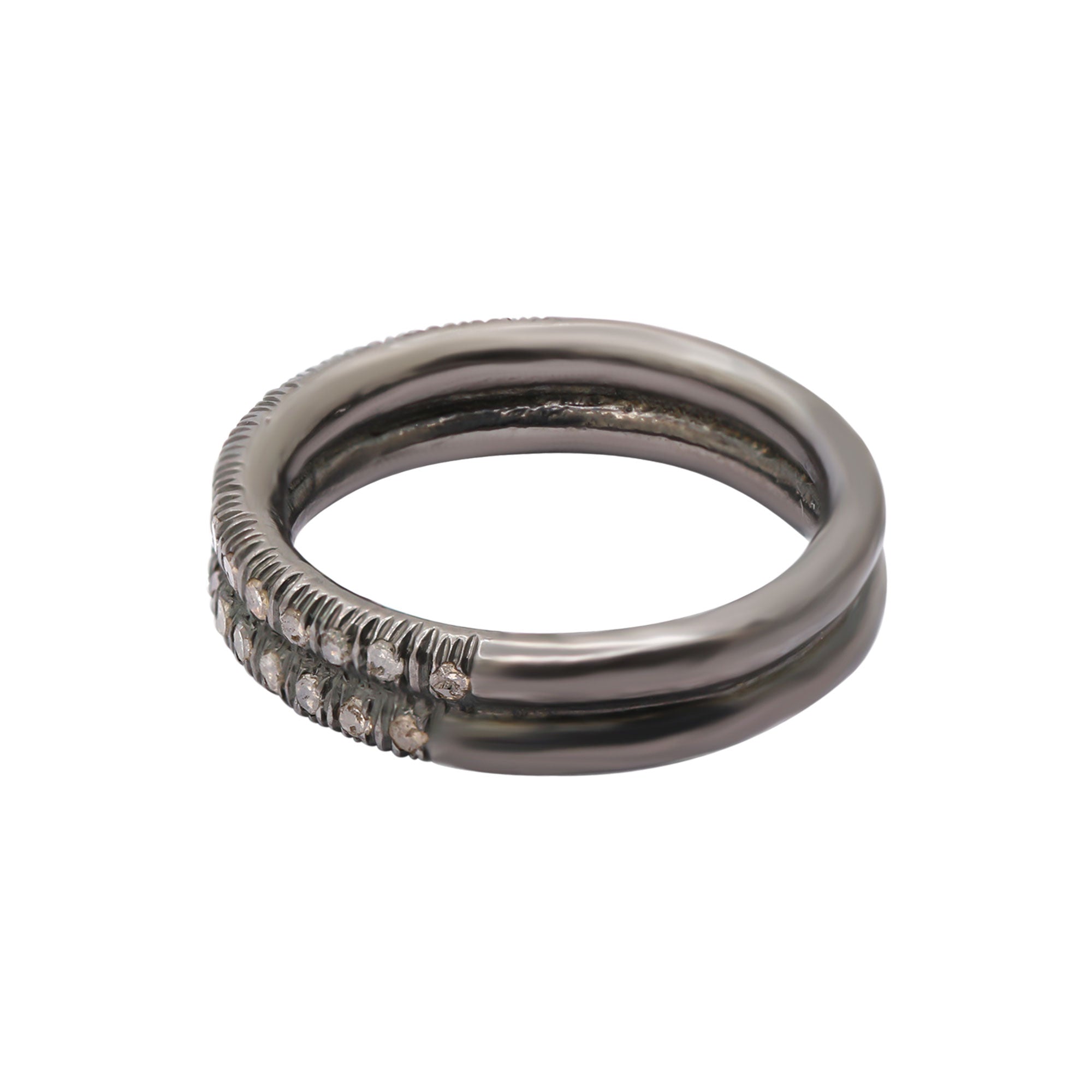Black Rhodium 925 Sterling Silver Diamond Gold Plated Band Ring