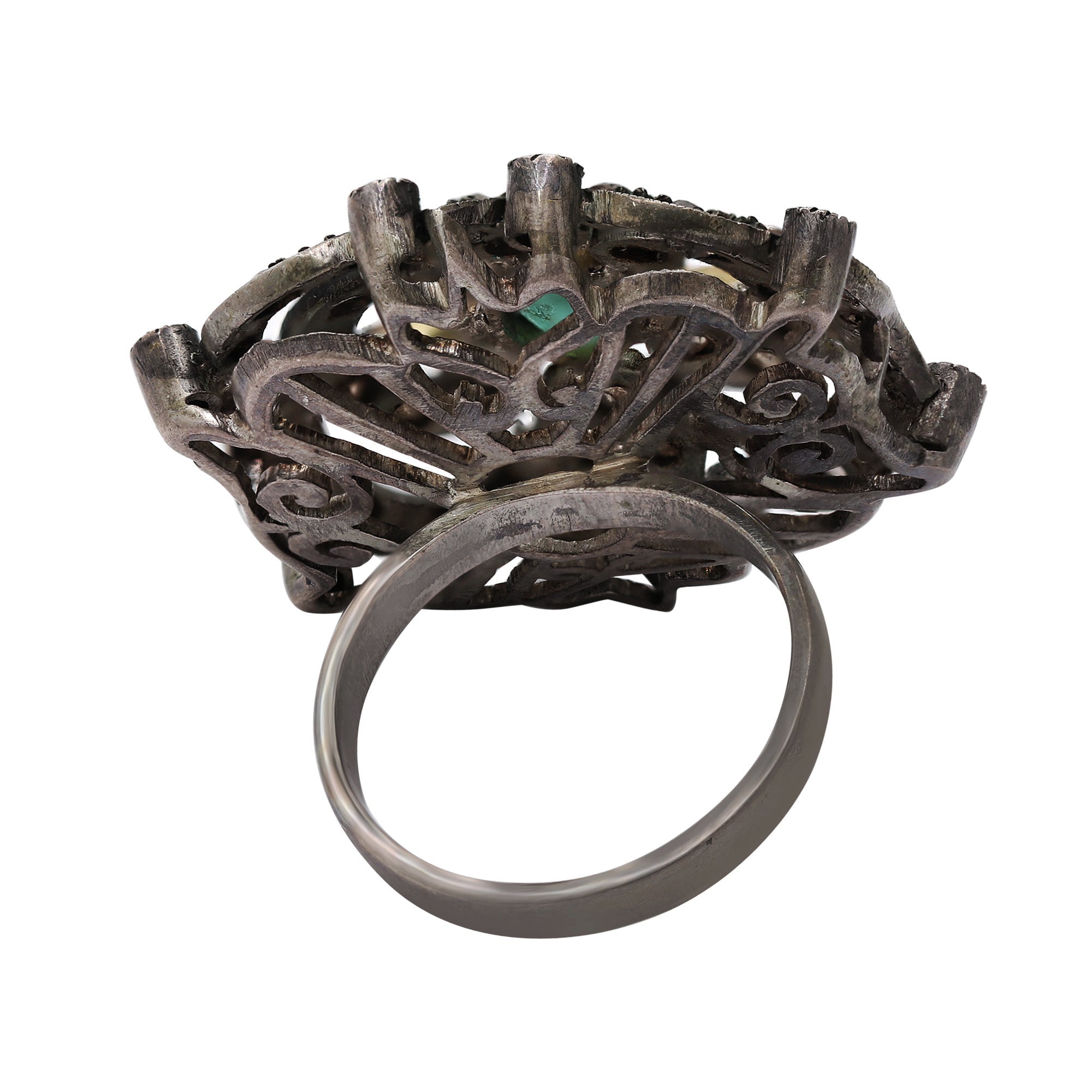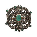 Natural Emerald Gemstone and Diamond 925 Sterling Silver Gold Plated Black Rhodium Ring