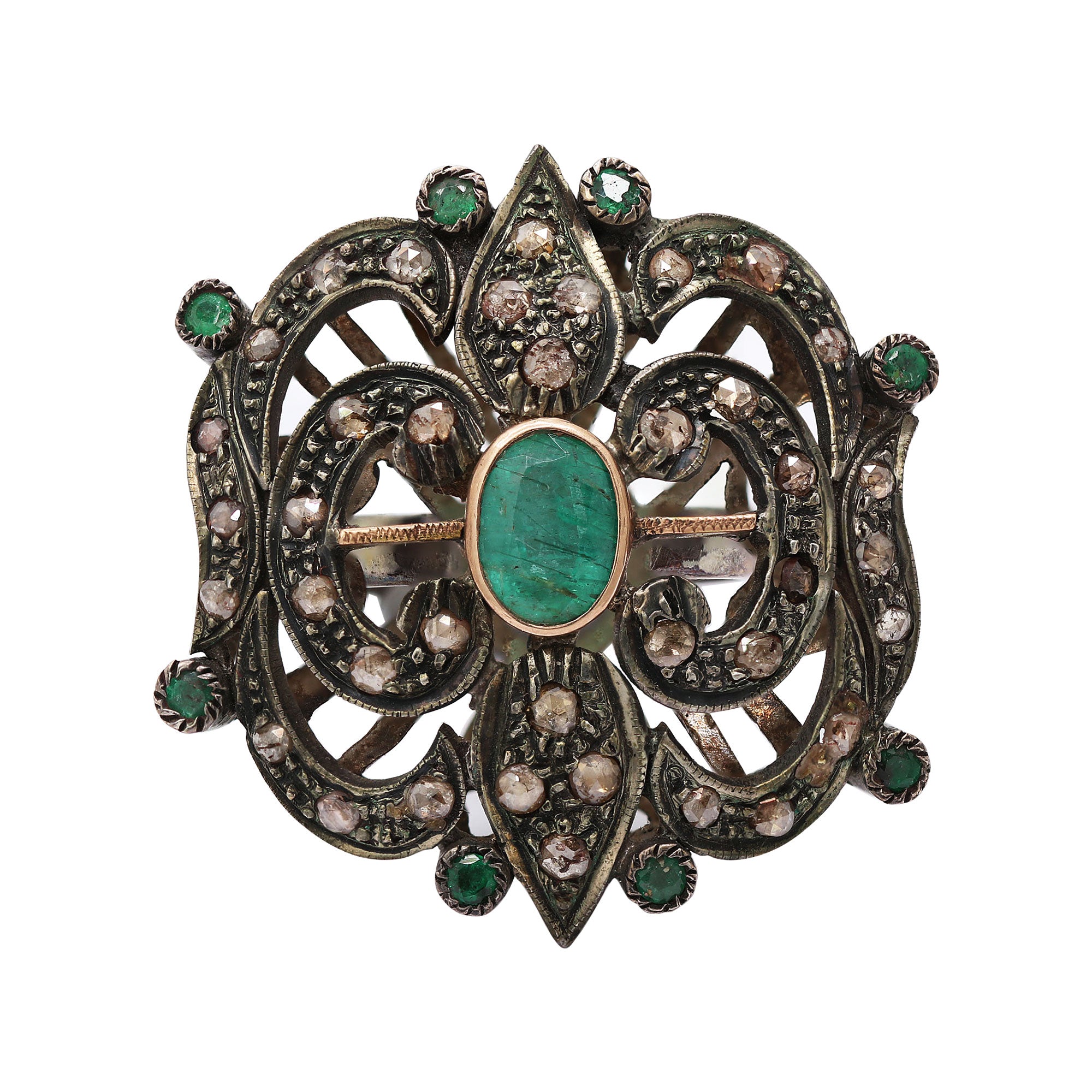 Item Type: Emerald and Diamond 925 Sterling Silver Band Ring
