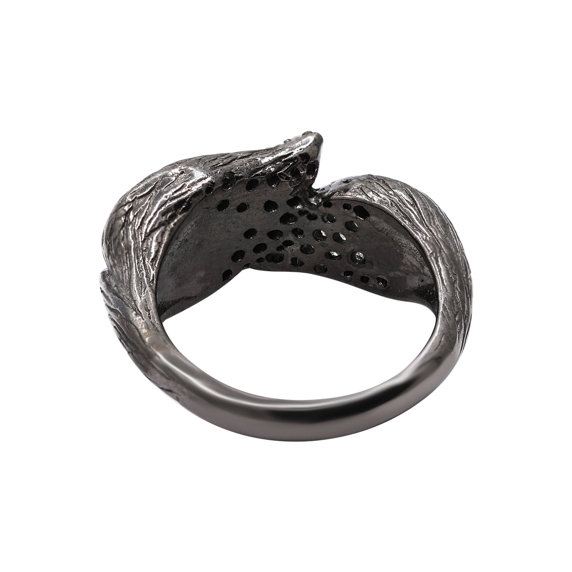 Natural Opal Gemstone and Diamond 925 Sterling Silver Black Rhodium Plated Bypass Ring