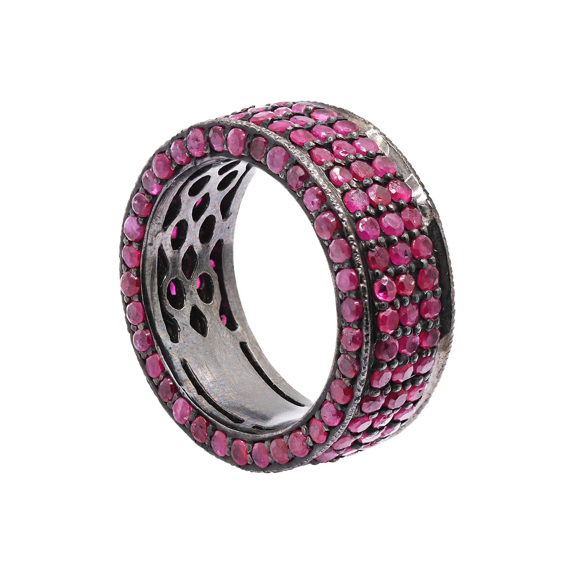 Natural Ruby Gemstone 925 Sterling Silver Designer Band Ring