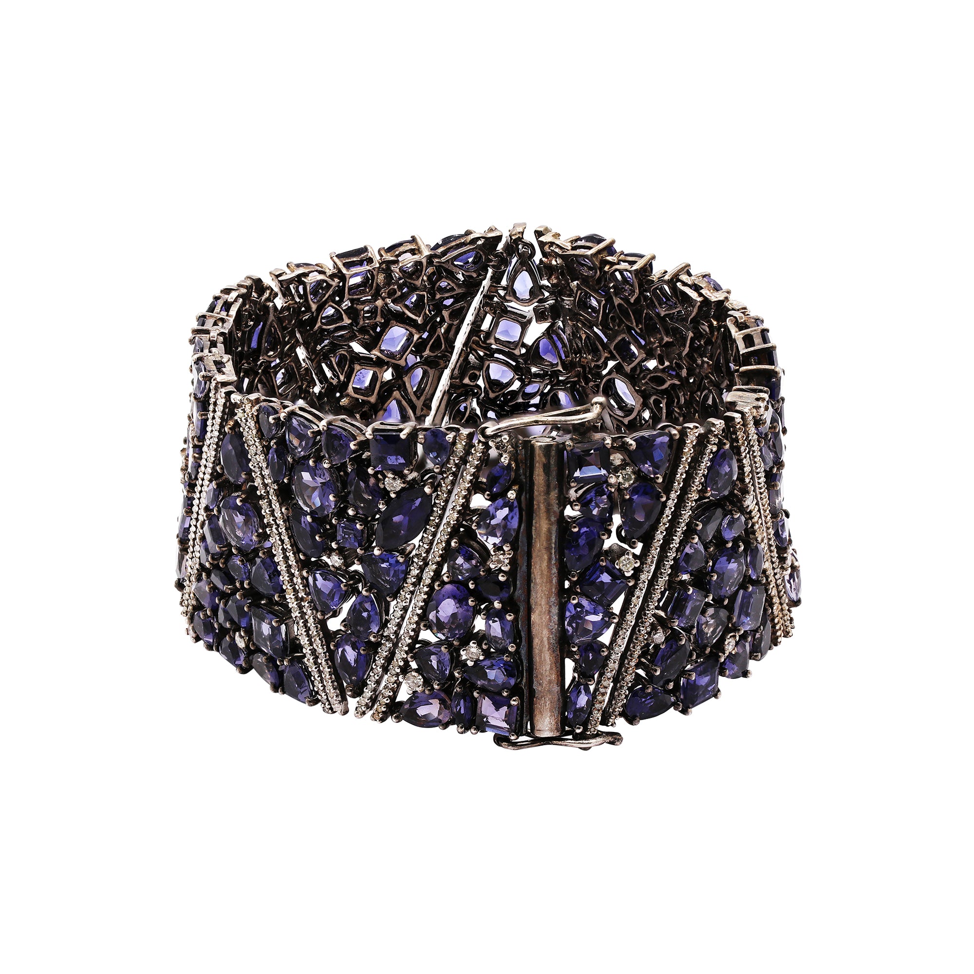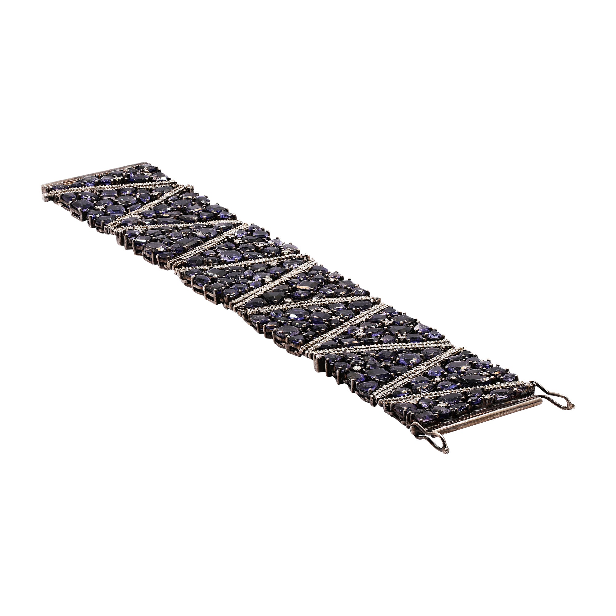 Designer Natural Iolite and Diamond 925 Silver Bracelet