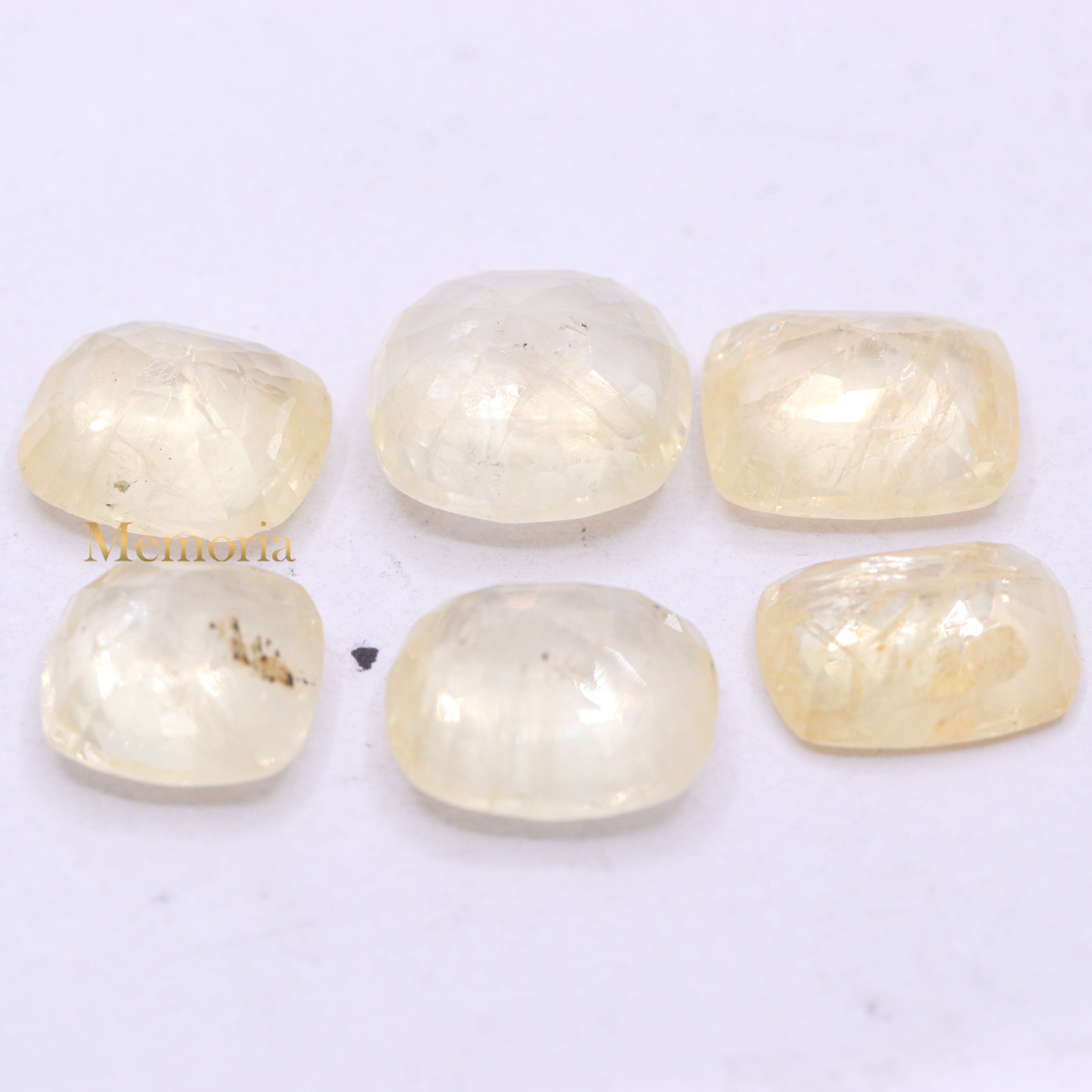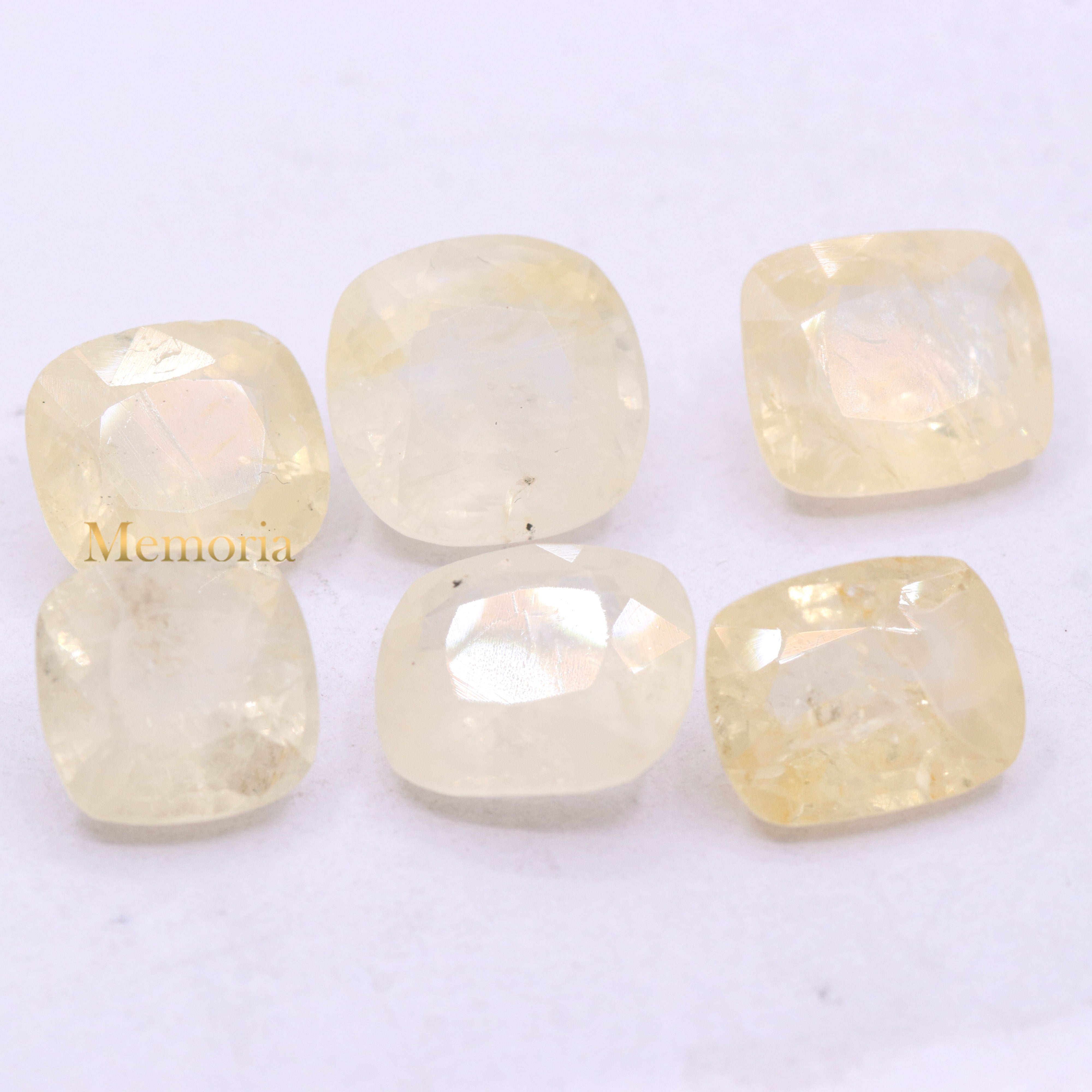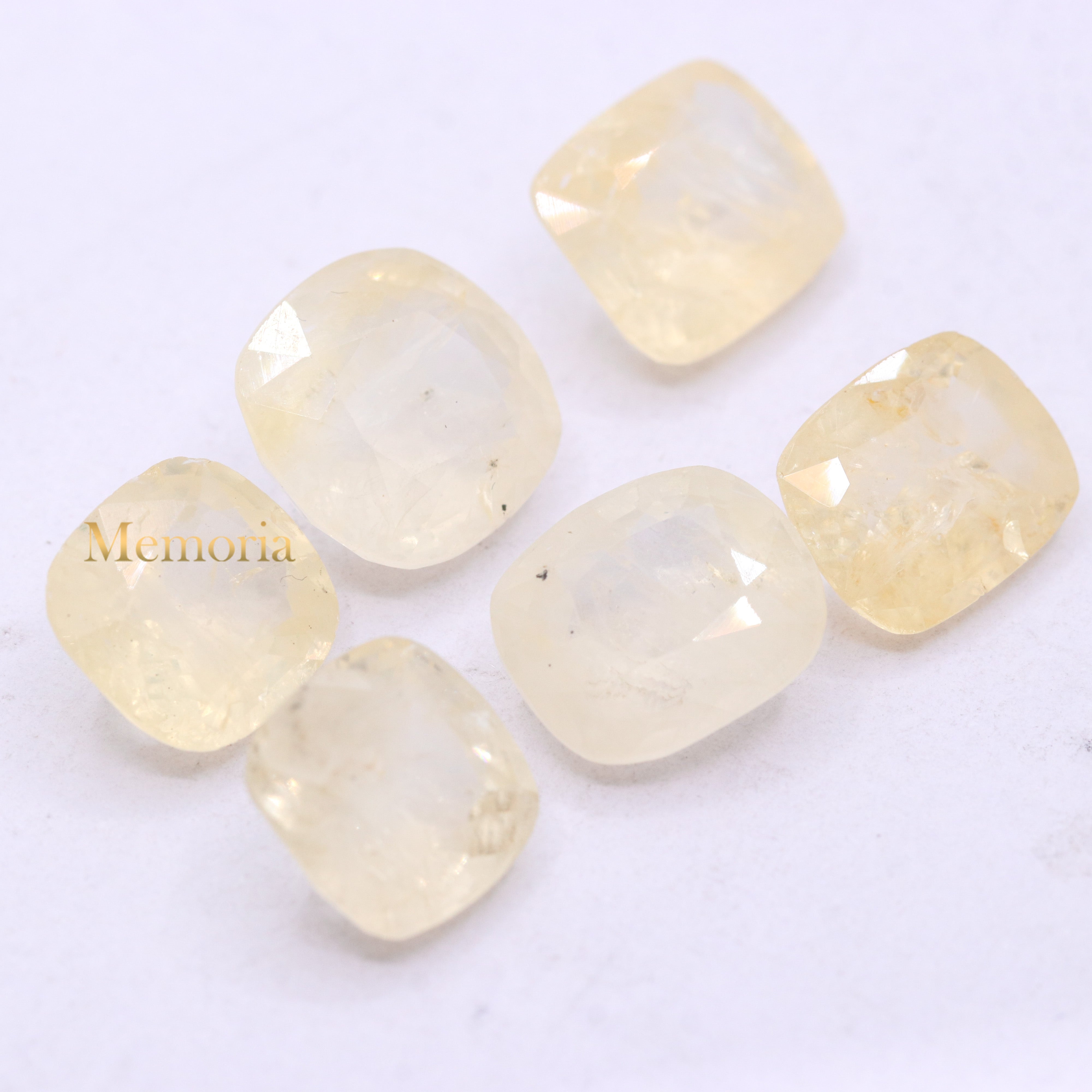 6 Pcs Natural Yellow Sapphire Cushion Shaped Faceted Gemstone Spiritual Healing Loose Gemstone For Making Jewelry