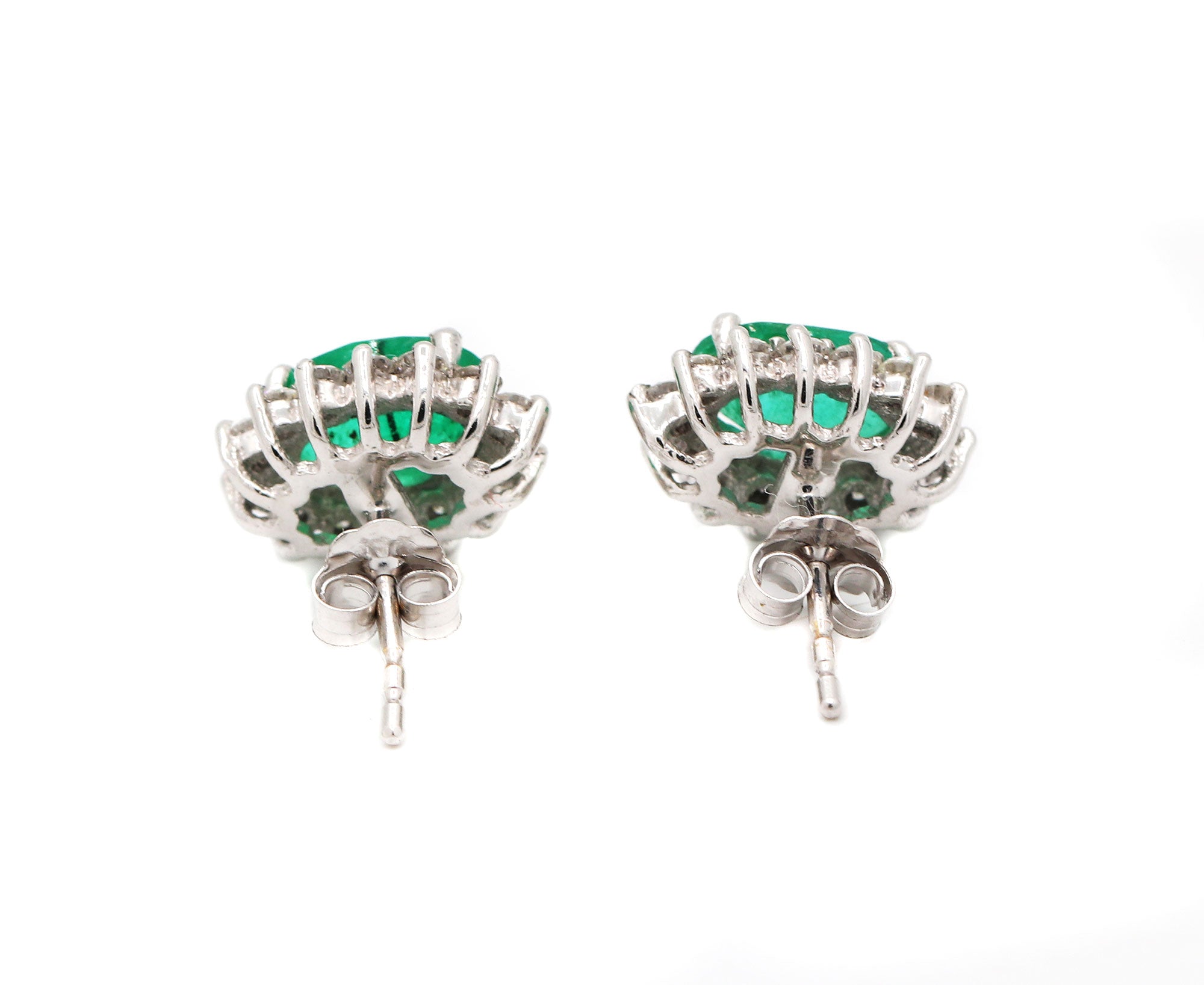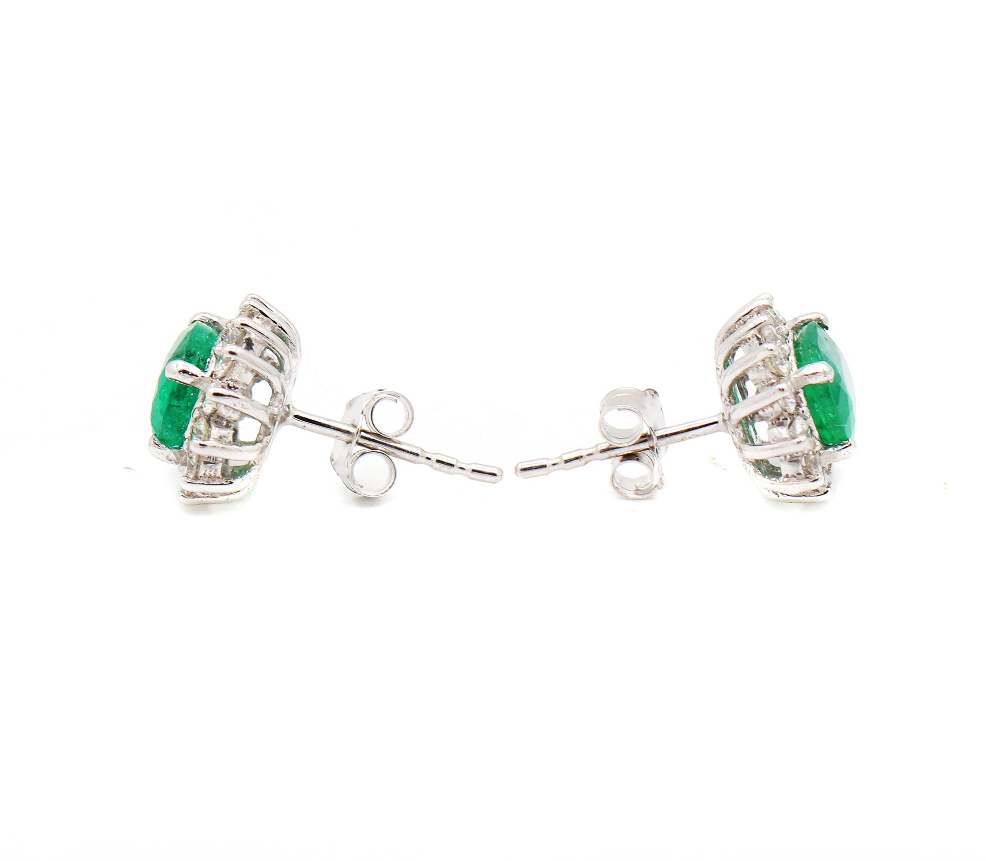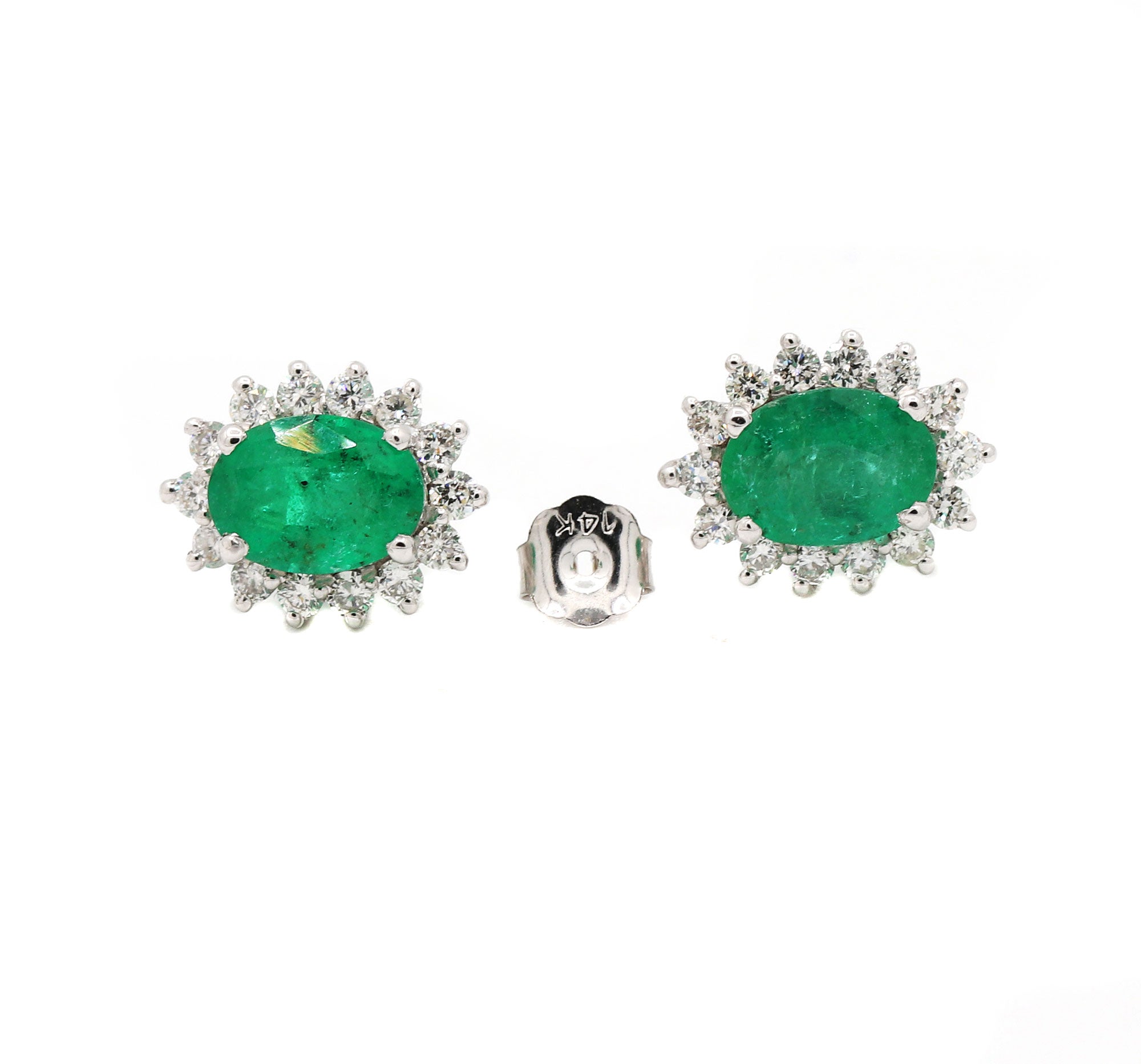 14 Carat Gold Natural Emerald Gemstone Diamond Oval Shaped Stud Earring