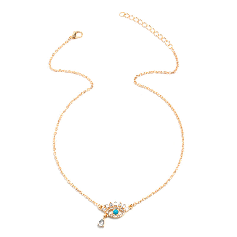 Item Name - 14k Gold Plated Turquoise Inlay Crystal Evil Eye Necklace For Girls And Women's