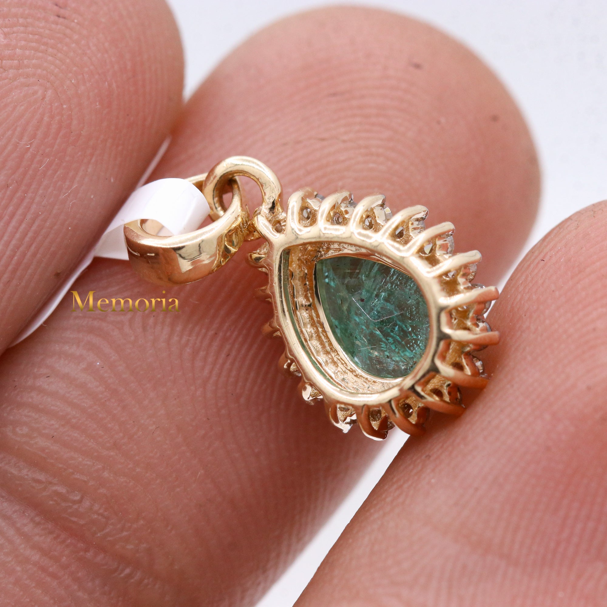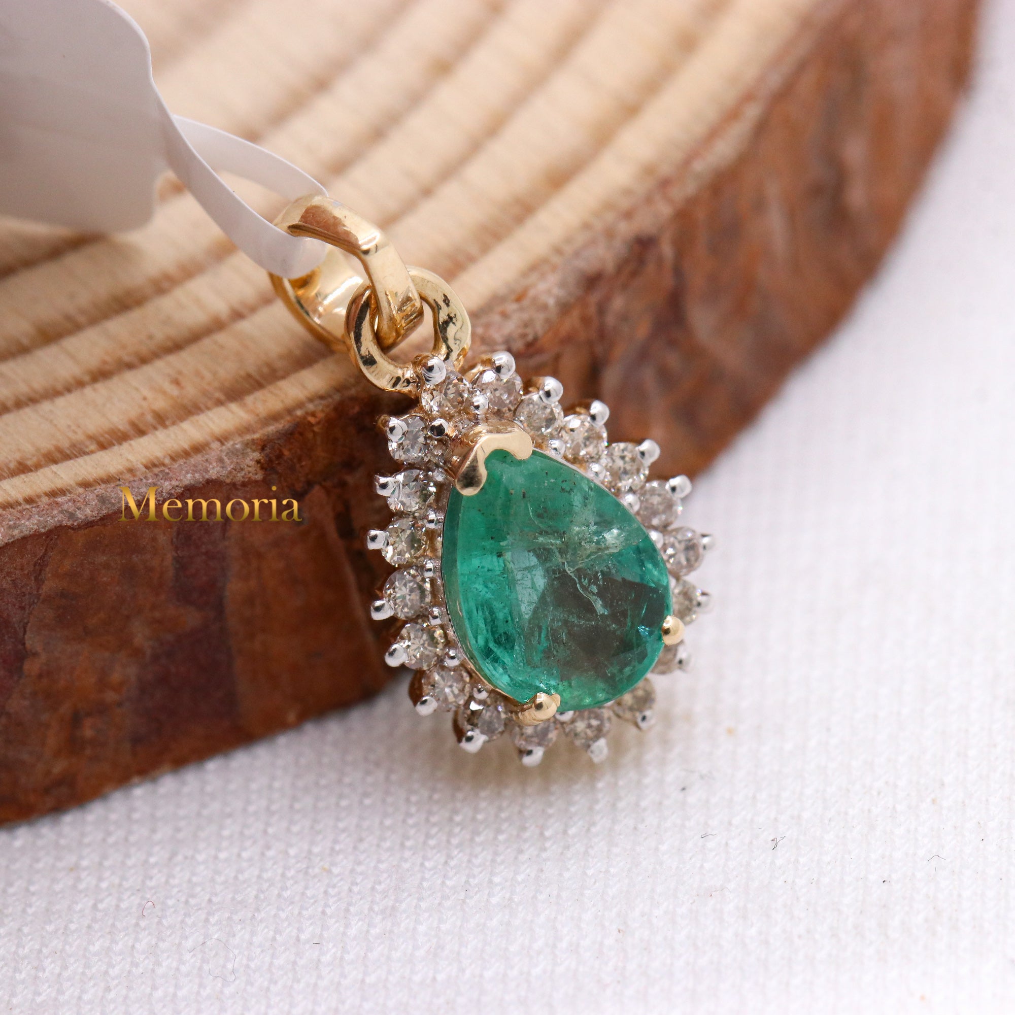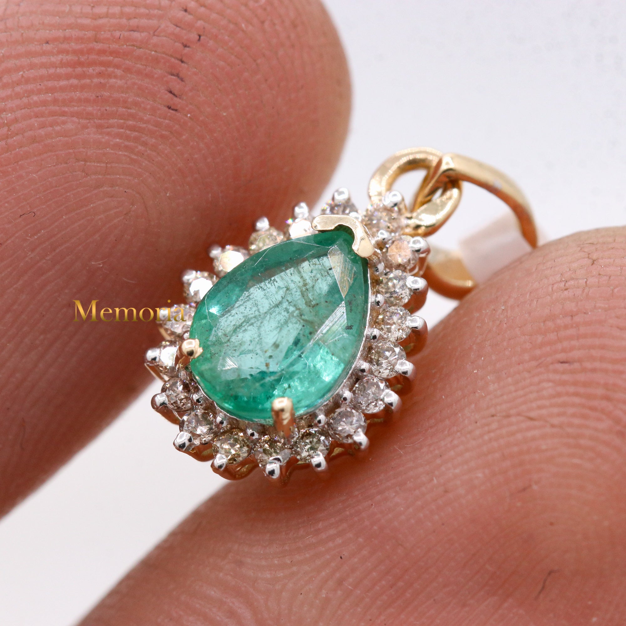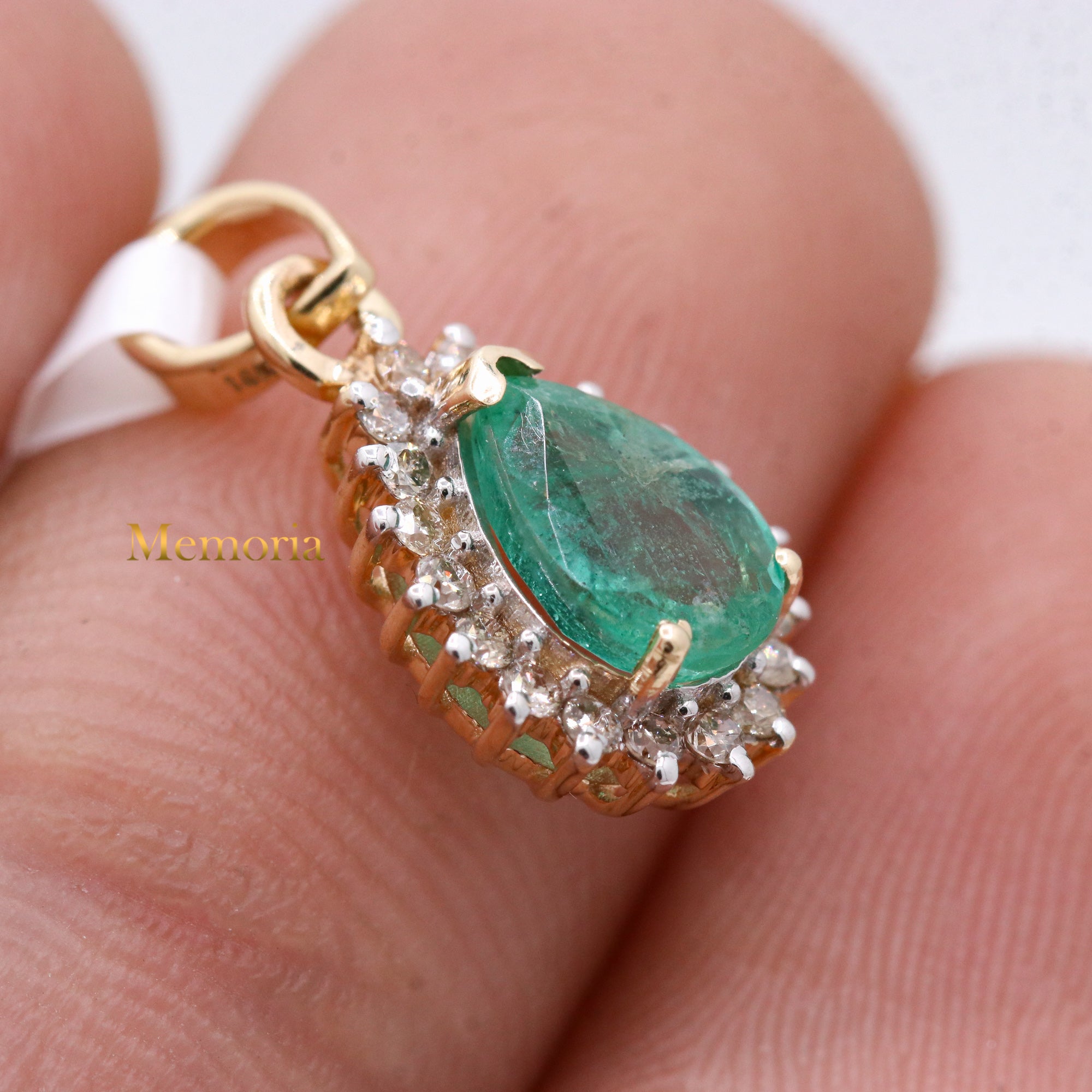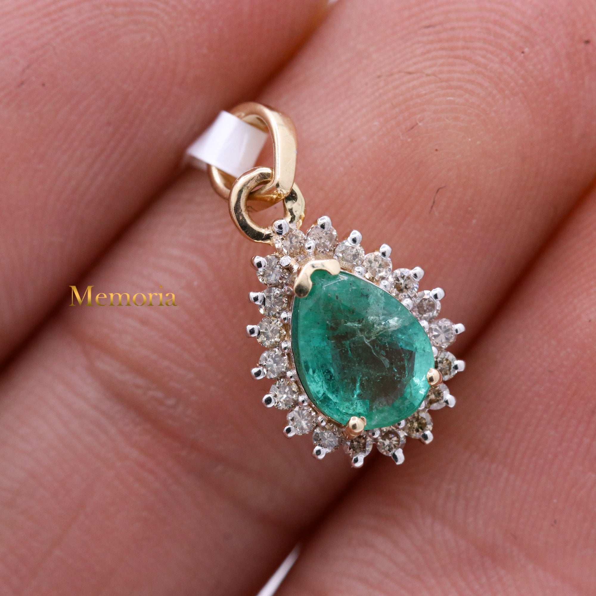Buy Best Quality Certified Birthstone Natural Emerald Pear Shaped Faceted Cut Spiritual Chakra Healing Gemstone With Diamond Pendant In 14k Yellow Gold