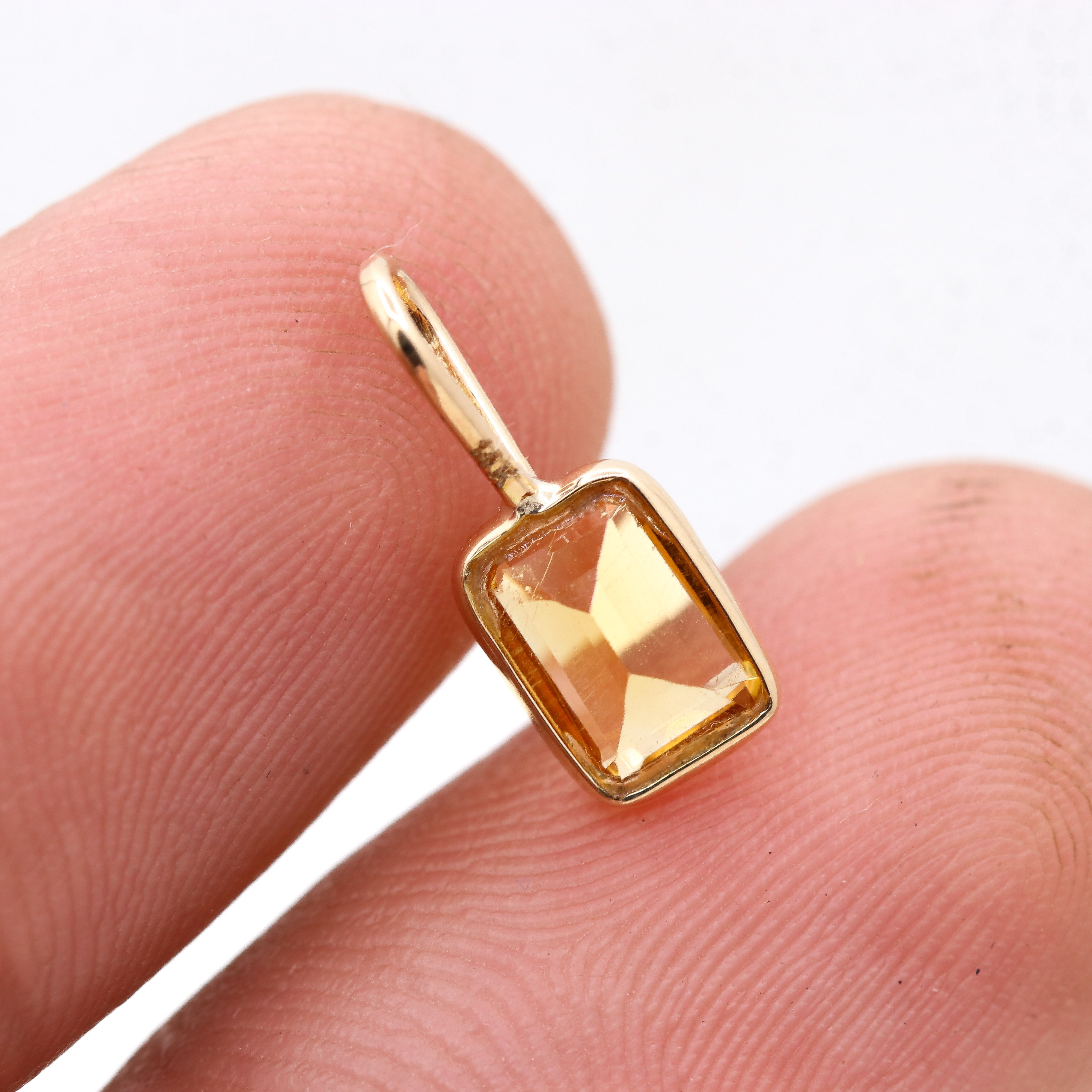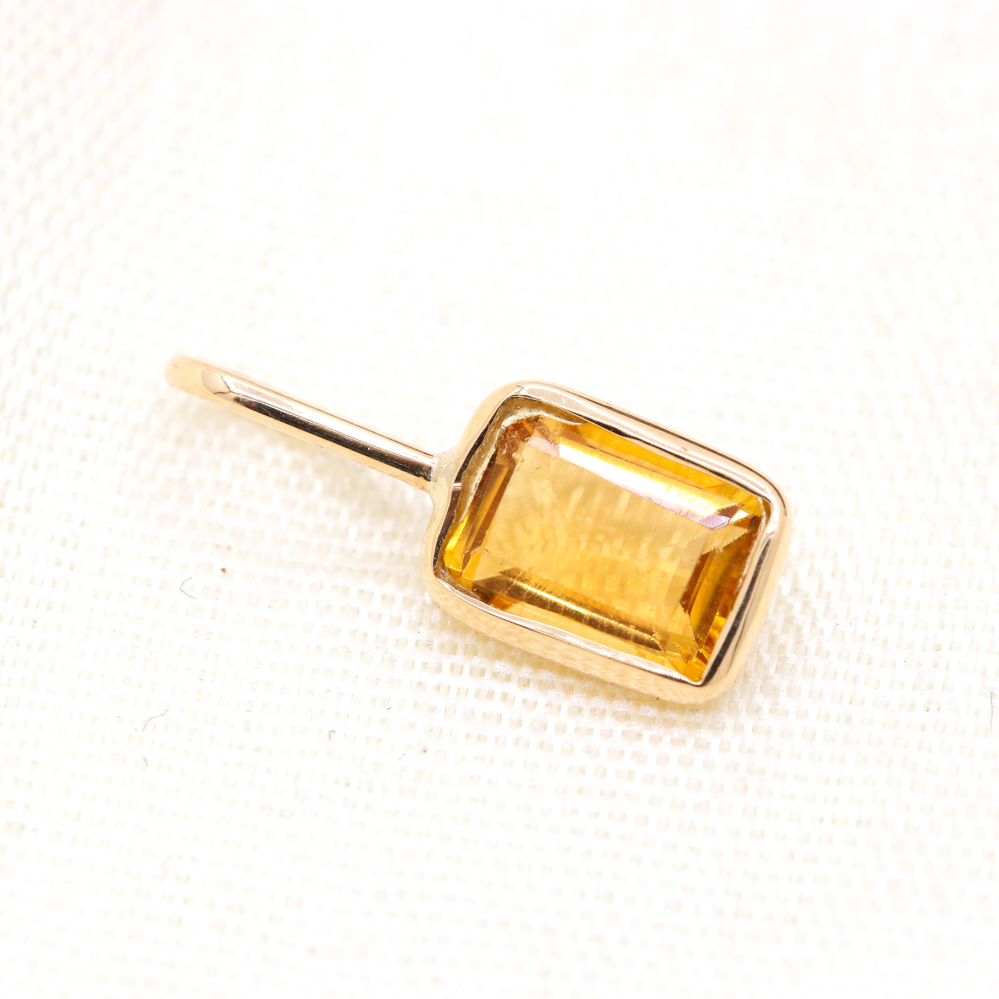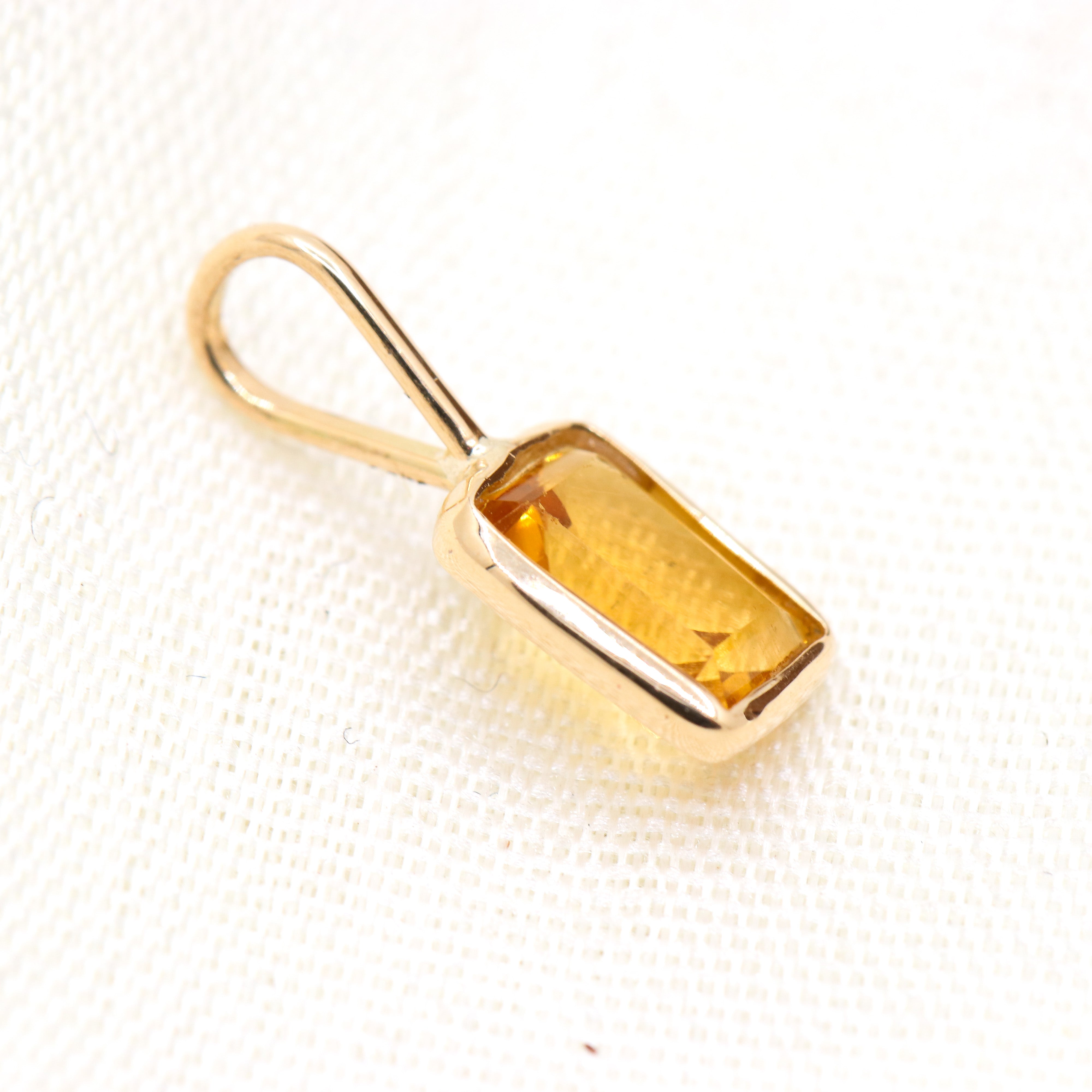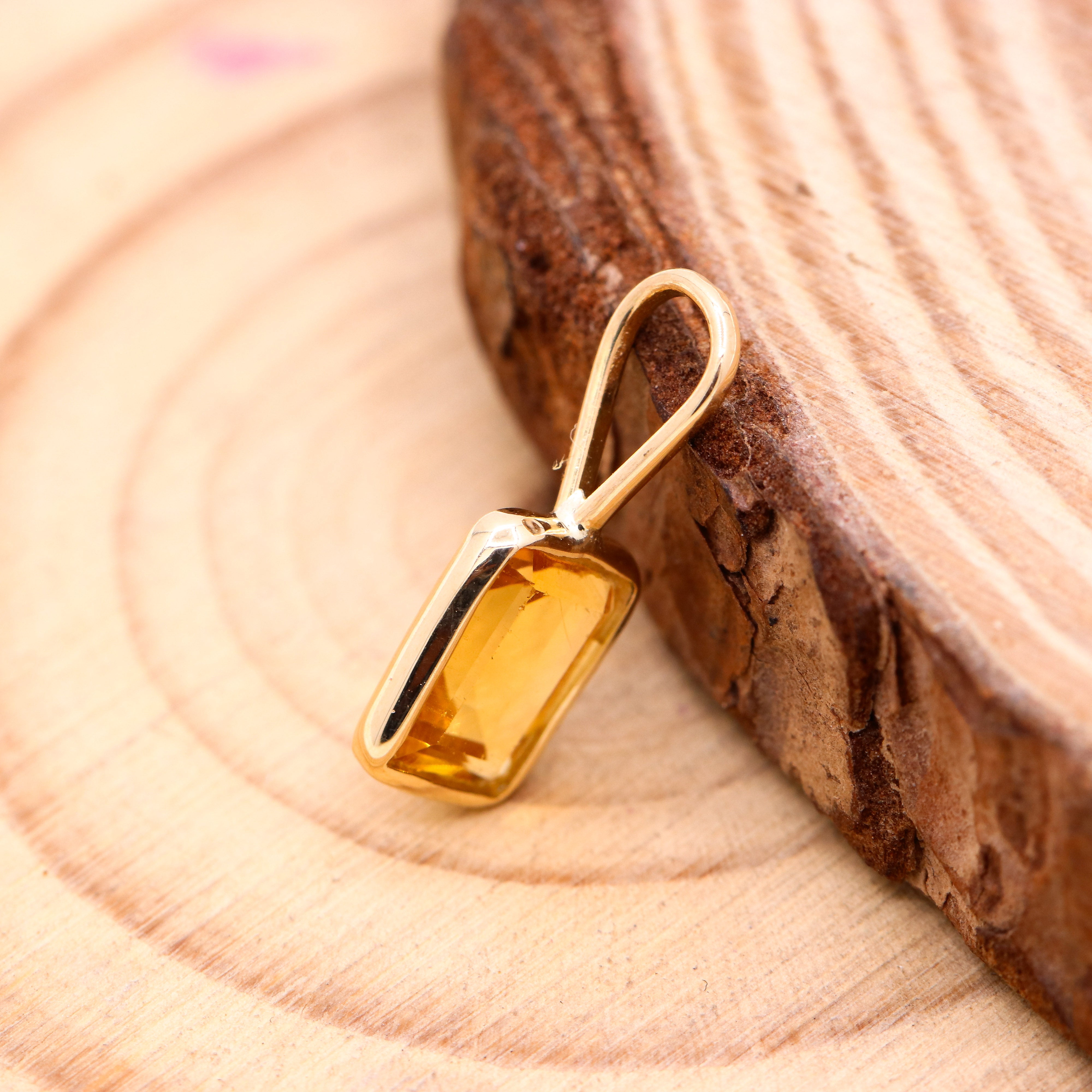Buy Best Quality Certified Beautiful Natural Citrine Rectangle Shaped Faceted Cut Spiritual Chakra Healing Gemstone Pendant In 14k Yellow Gold
