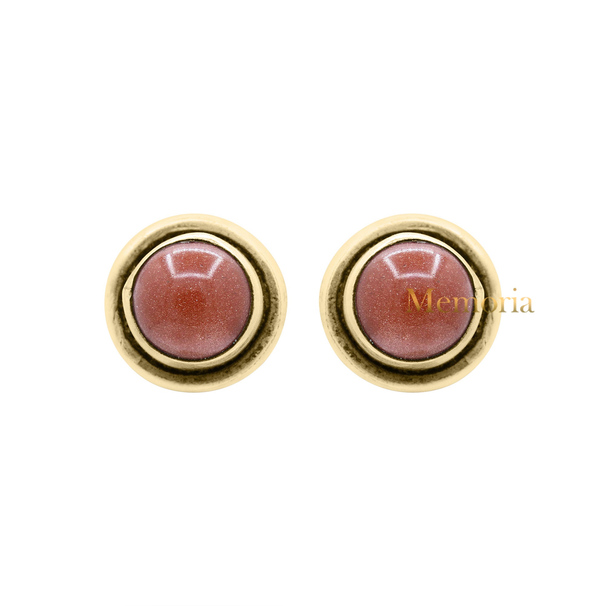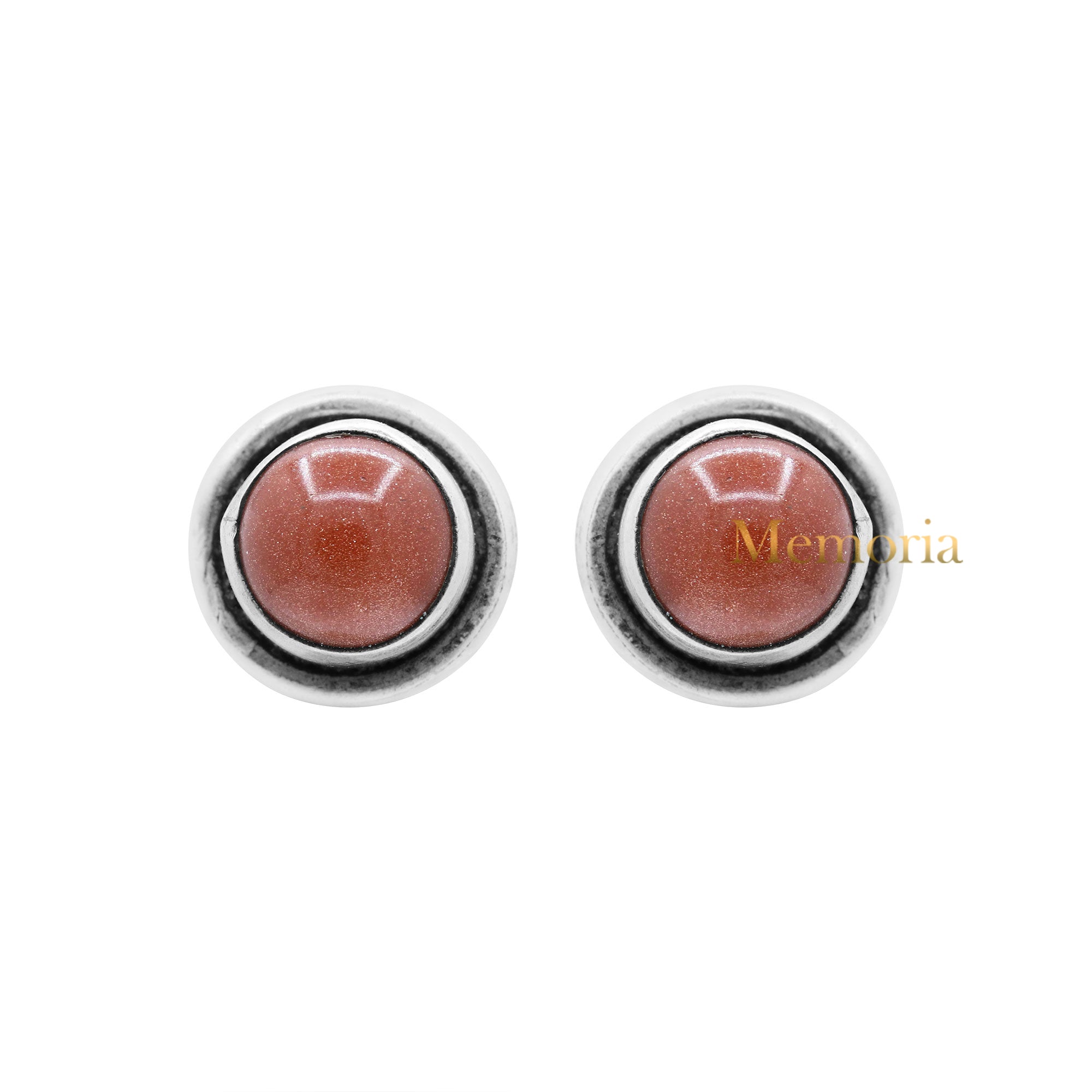 Natural Sunstone Gemstone 925 Sterling Silver Gold Plated Designer Stud Earring