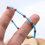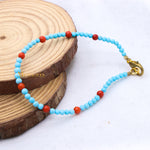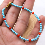 Buy Certified Handmade Natural Round Smooth Chakra Healing Turquoise & Coral Gemstone Beaded Silver Bracelet