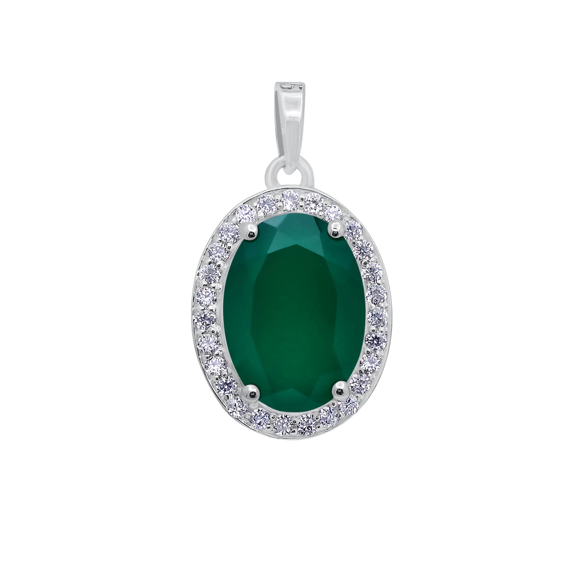 Natural Green Onyx CZ Halo Pendant 925 Sterling Silver Pendant Handmade Jewelry.