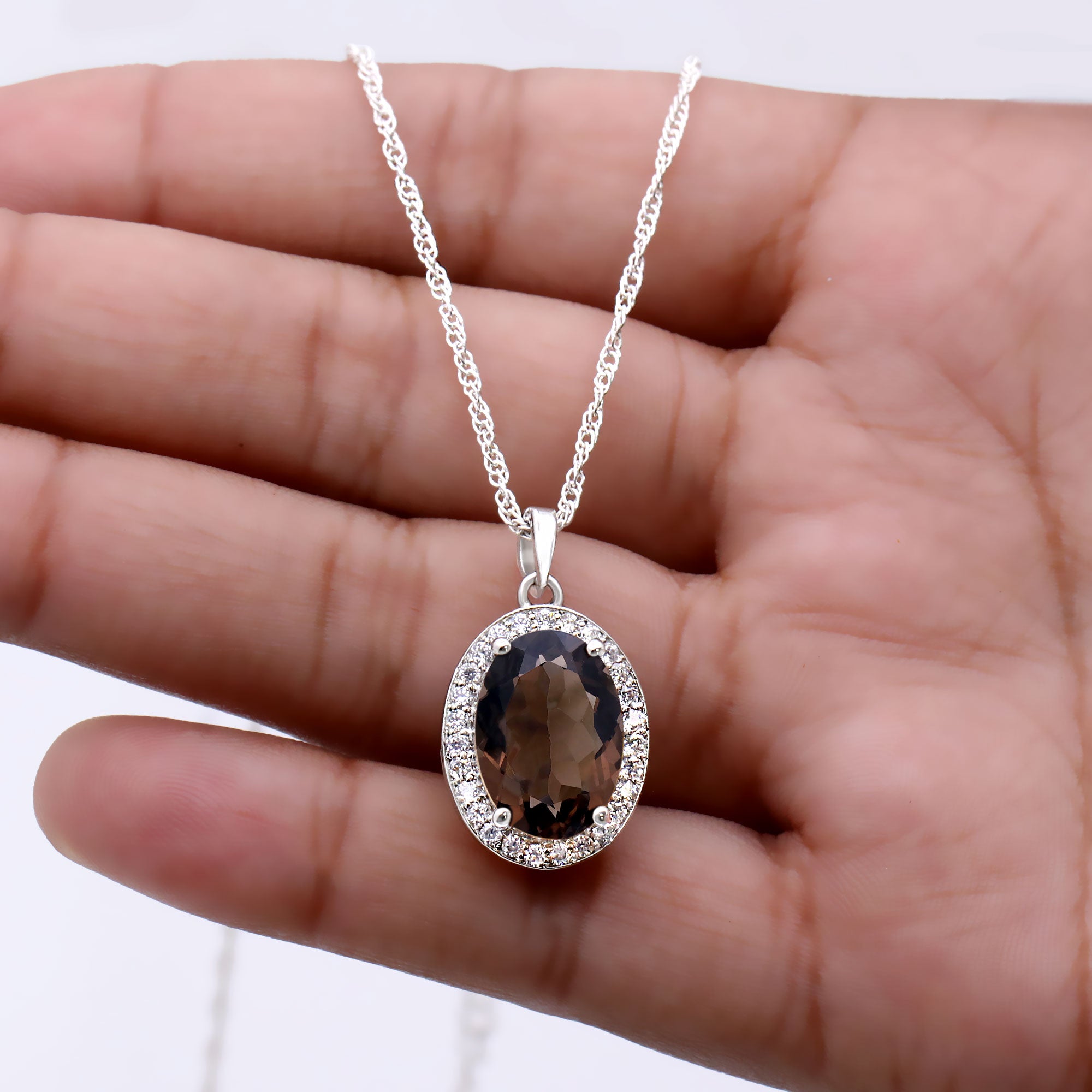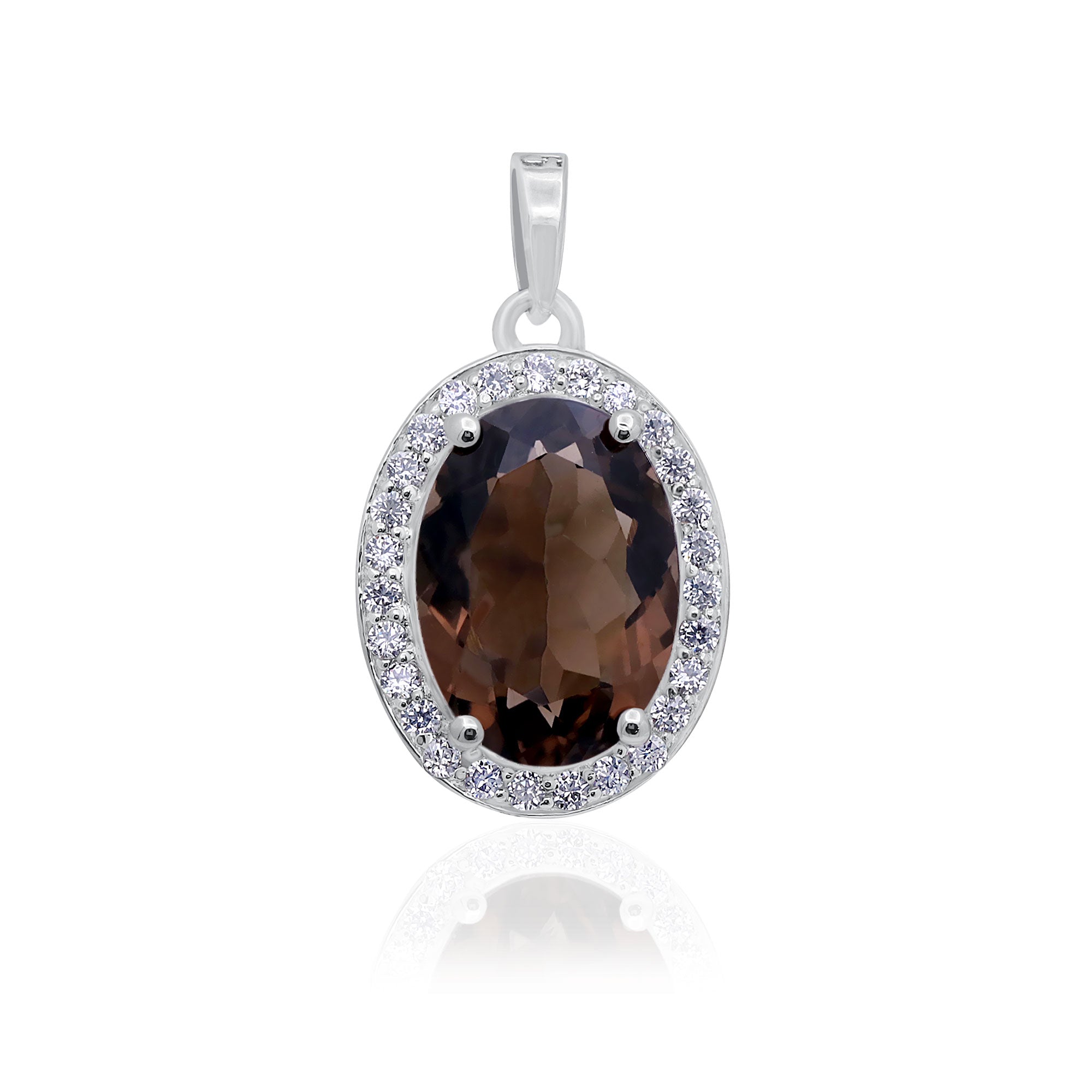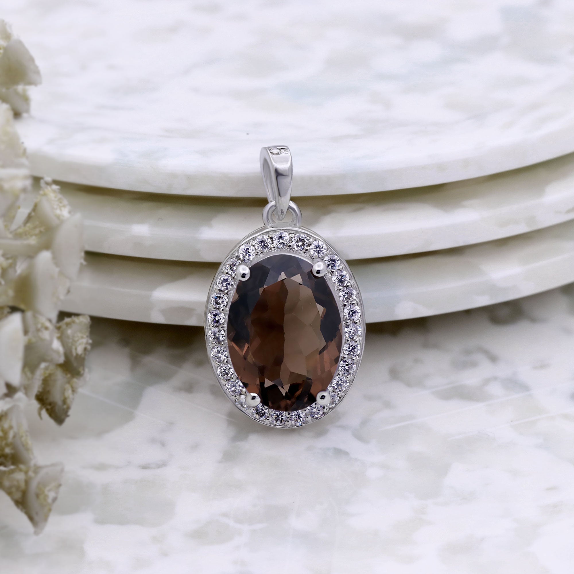 This natural oval shape Smoky Quartz pendant beautifully set in genuine 925 sterling silver for a timeless and elegant look. The CZ set in the border of the stone and give a luxury look to this pendant. Known as the November birthstone, smoky quartz symbolizes powerful, grounding, and protective