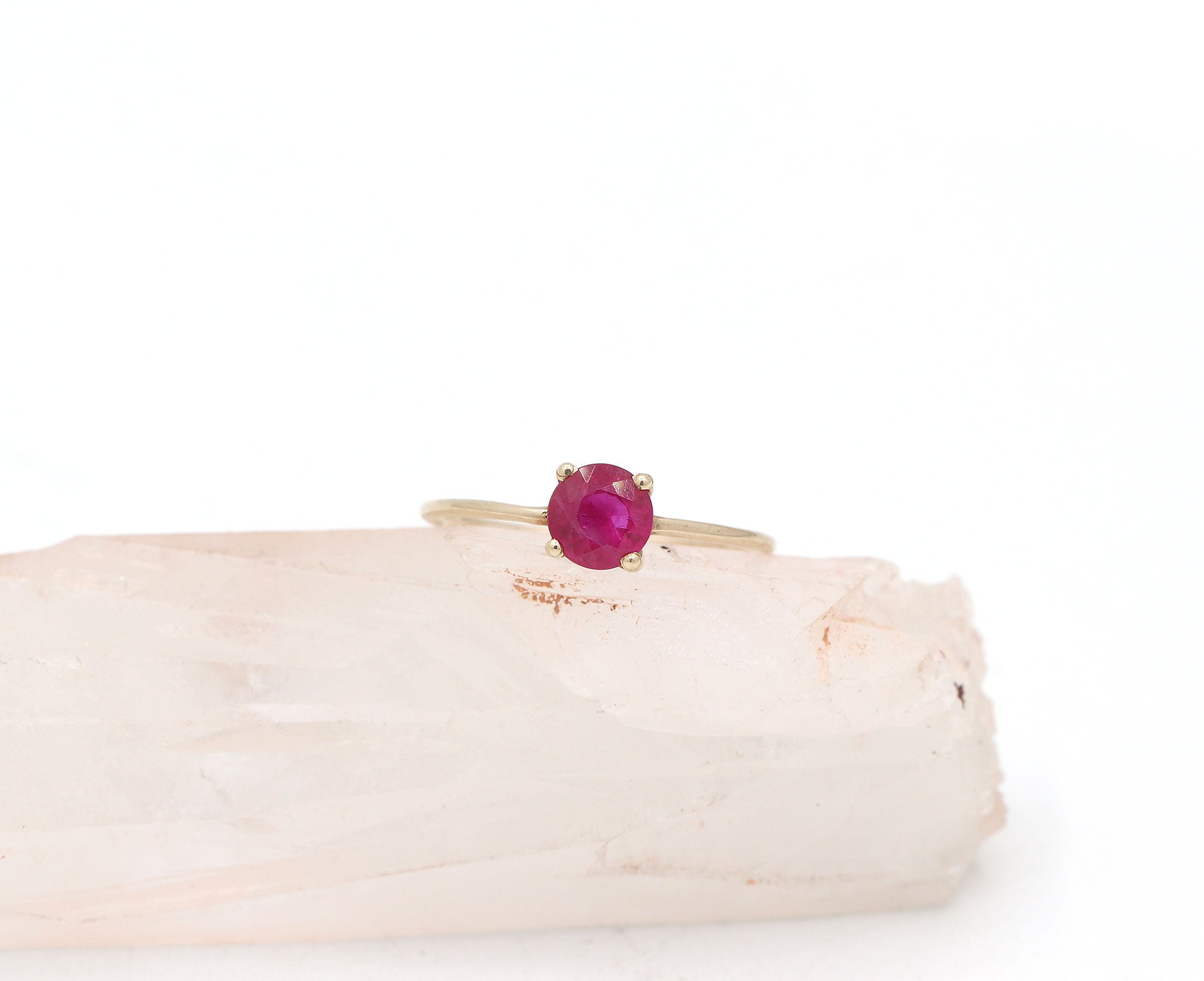 9K Gold Natural Ruby Round Gemstone Engagement Ring